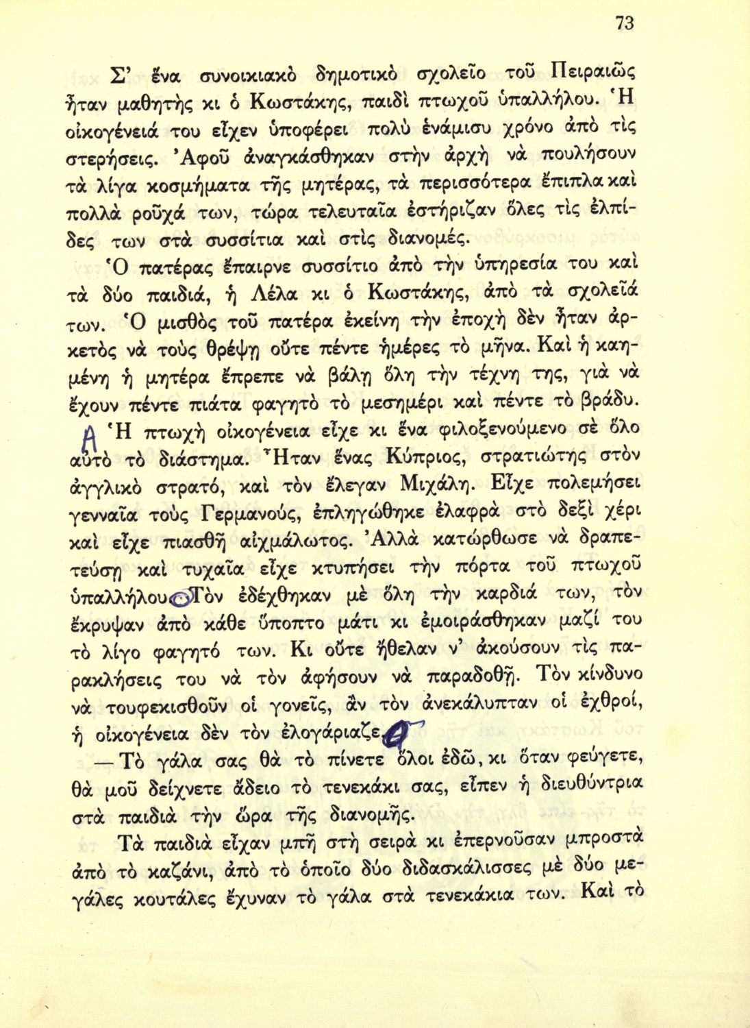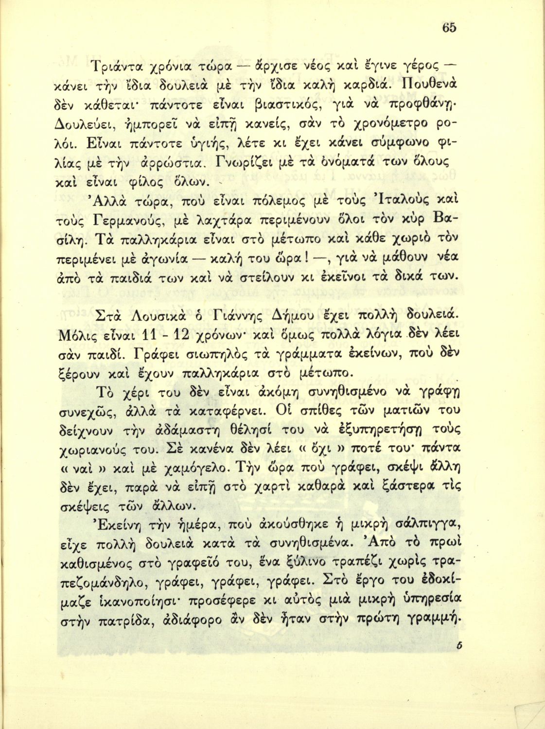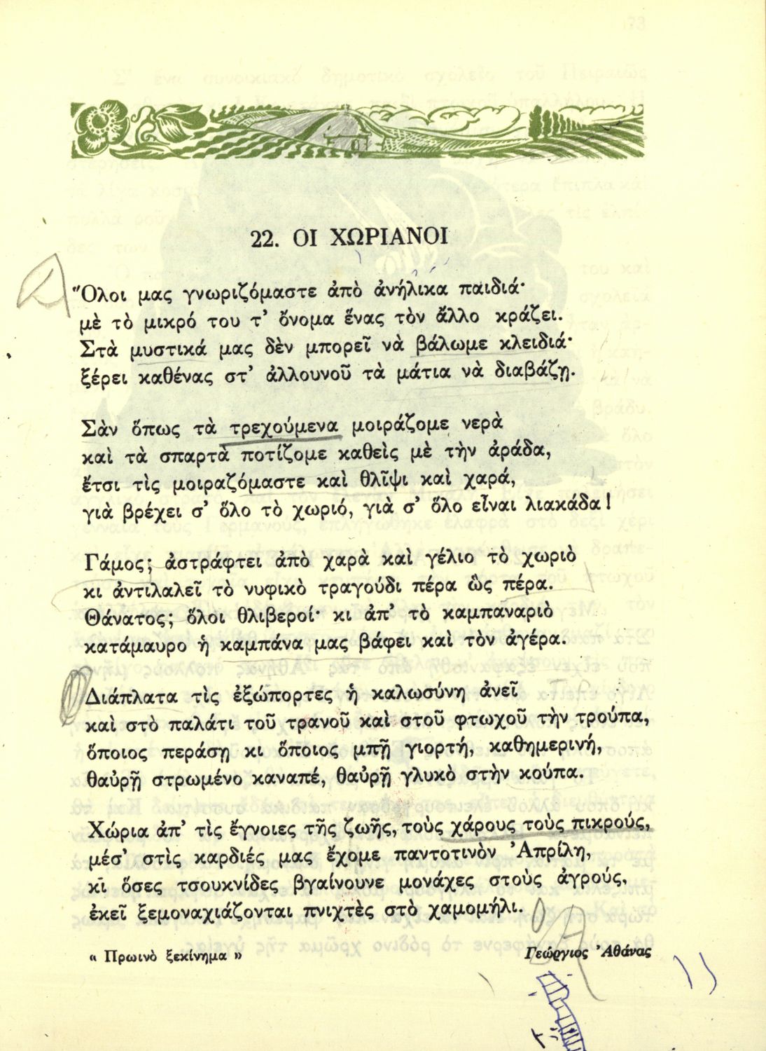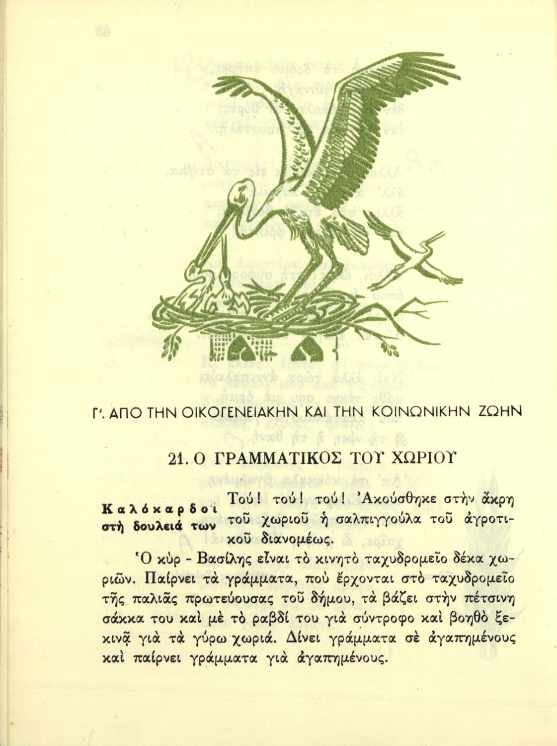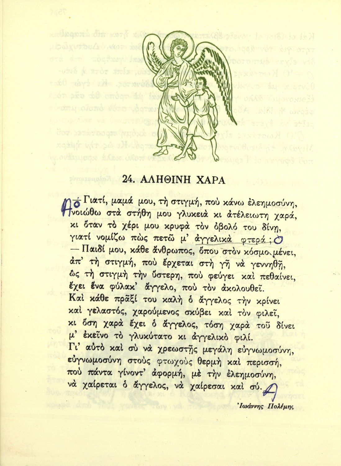 Αναγνωστικό Ε΄ Δημοτικού που περιέχει κείμενα εμπνευσμένα από την εθνική, κοινωνική και οικογενειακή ζωή και την ελληνική φύση, μυθολογία και ιστορία.