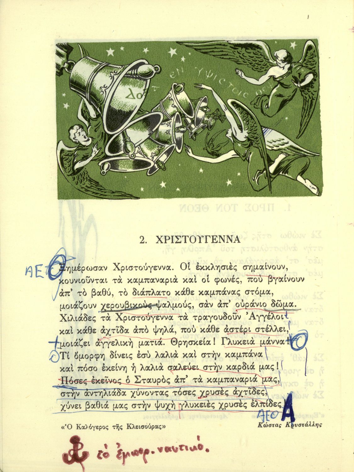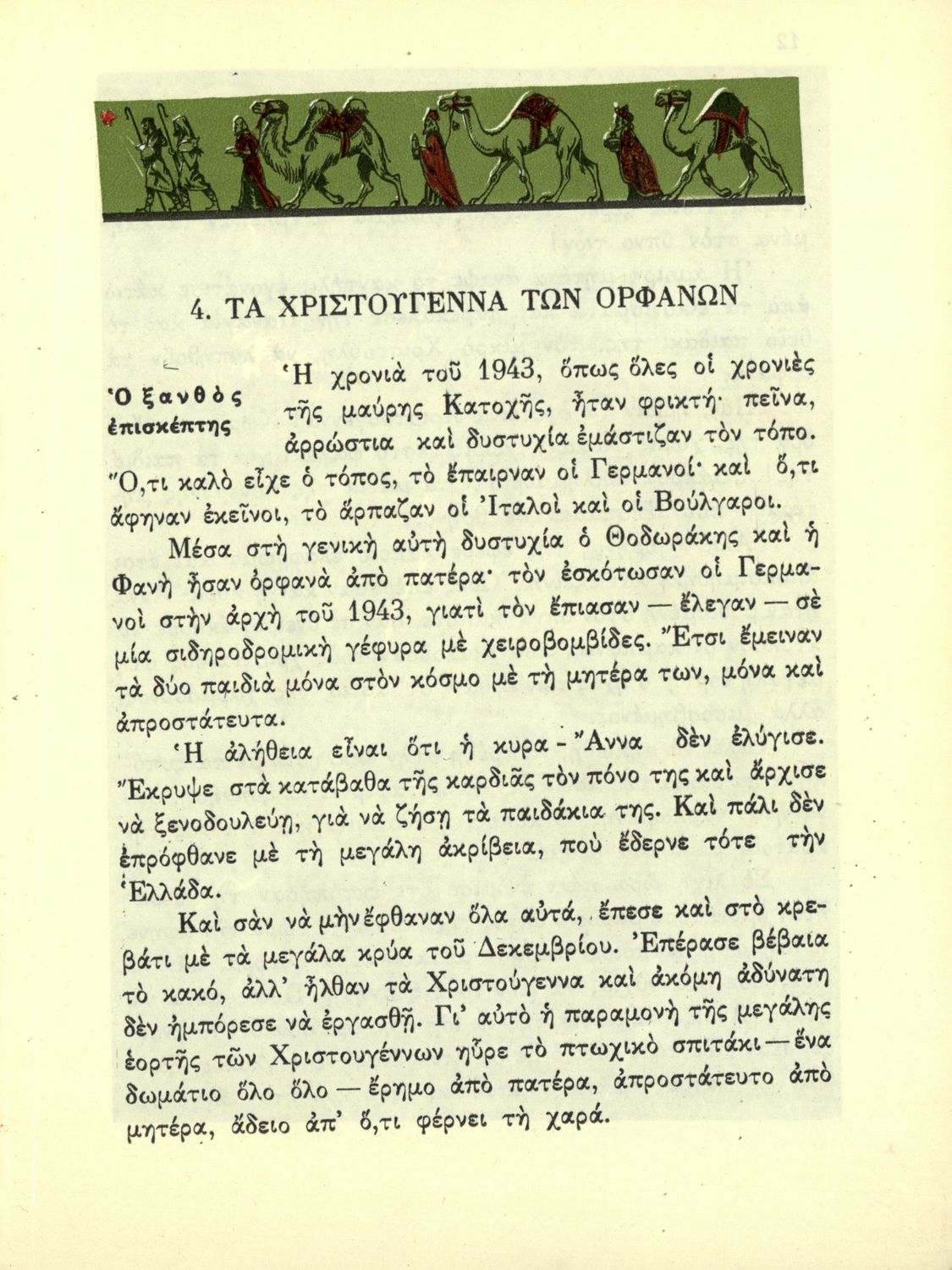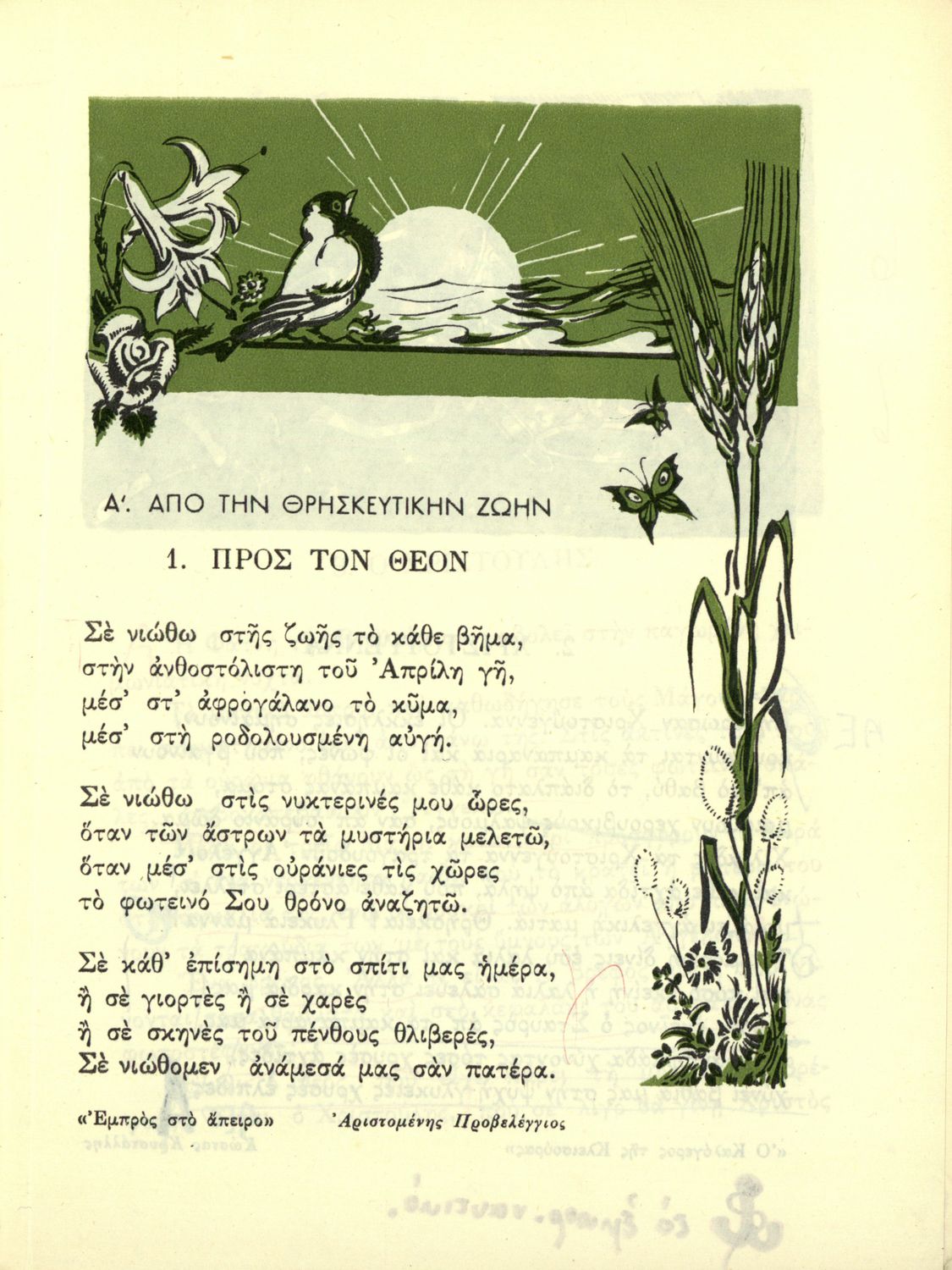 Αναγνωστικό Ε΄ Δημοτικού που περιέχει κείμενα εμπνευσμένα από την εθνική, κοινωνική και οικογενειακή ζωή και την ελληνική φύση, μυθολογία και ιστορία.