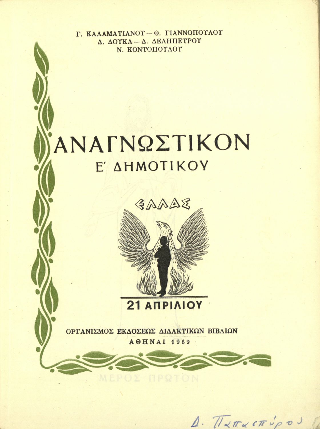 Βαθμίδα εκπαίδευσης: Πρωτοβάθμια Τάξη: Ε' Δημοτικού Μάθημα: Νέα Ελληνικά Γλώσσα: Καθαρεύουσα Παρουσίαση περιεχομένου: Αναγνωστικό Ε΄ Δημοτικού που περιέχει κείμενα εμπνευσμένα από την εθνική, κοινωνική και οικογενειακή ζωή και την ελληνική φύση, μυθολογία και ιστορία. |