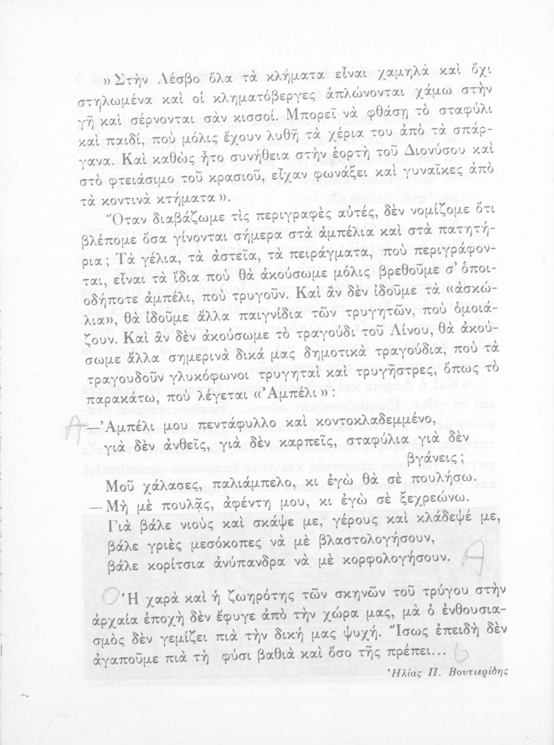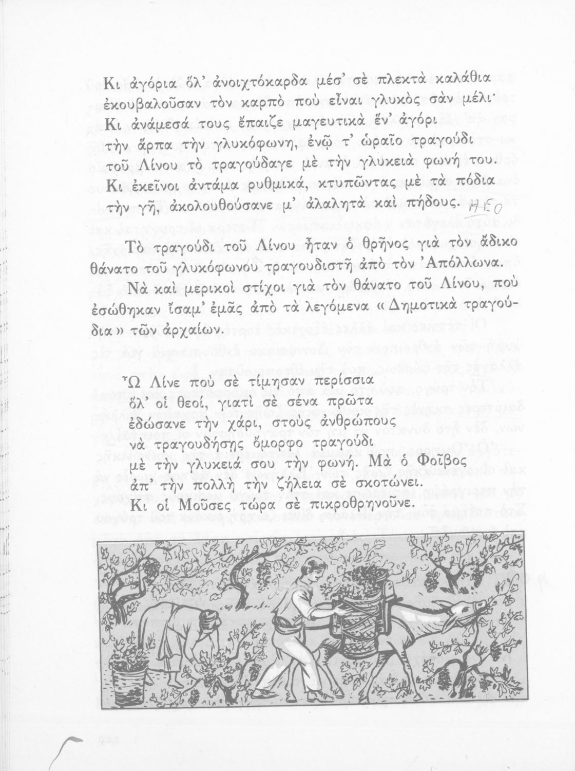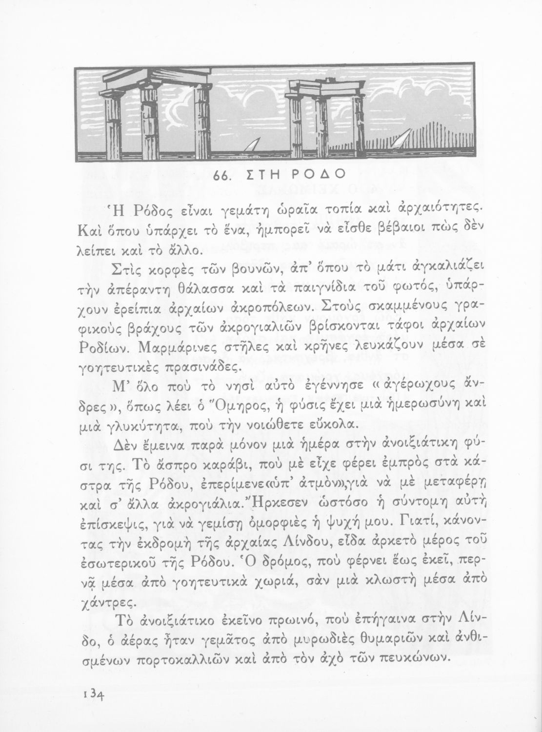 Αναγνωστικό ΣΤ΄ Δημοτικού που περιλαμβάνει θέματα από τις ελληνικές παραδόσεις και μύθους, την ελληνική φύση και θάλασσα και το τρίπτυχο "Πατρίς-θρησκεία-οικογένειαα".