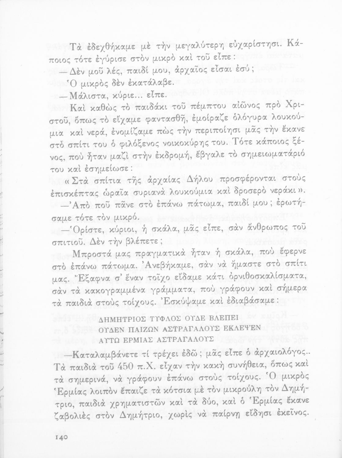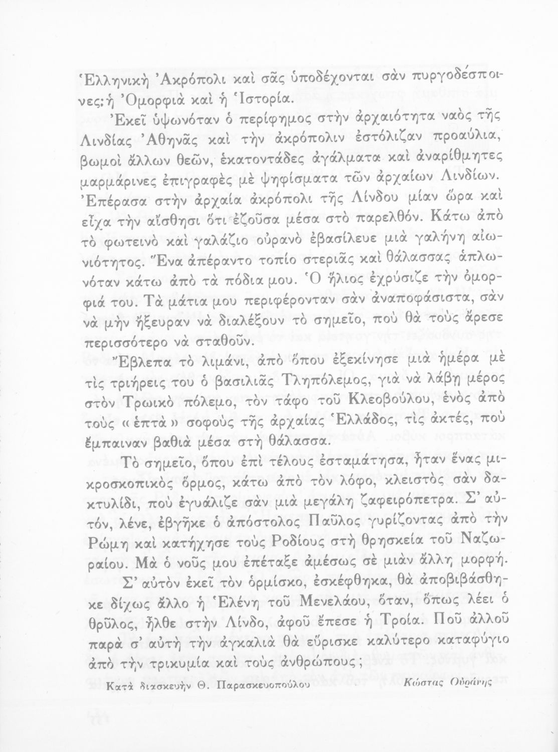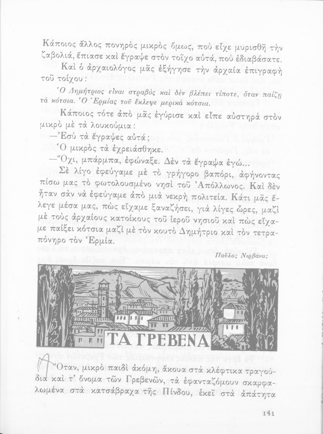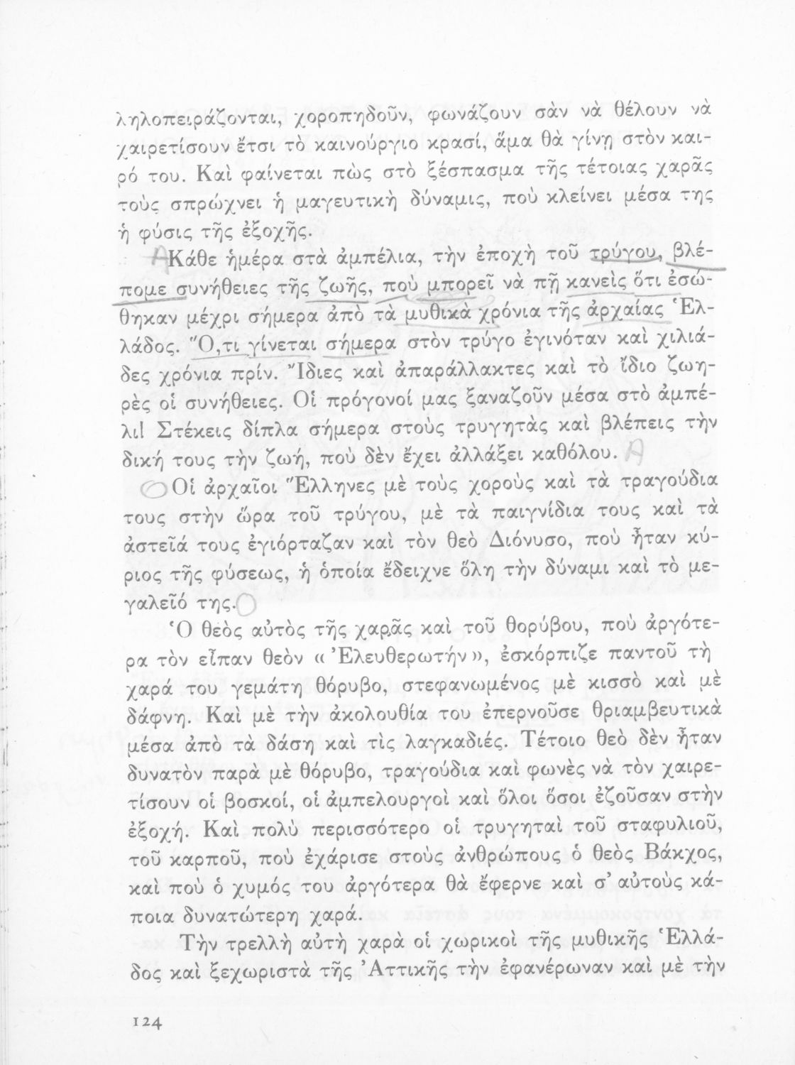 Αναγνωστικό ΣΤ΄ Δημοτικού που περιλαμβάνει θέματα από τις ελληνικές παραδόσεις και μύθους, την ελληνική φύση και θάλασσα και το τρίπτυχο "Πατρίς-θρησκεία-οικογένειαα".