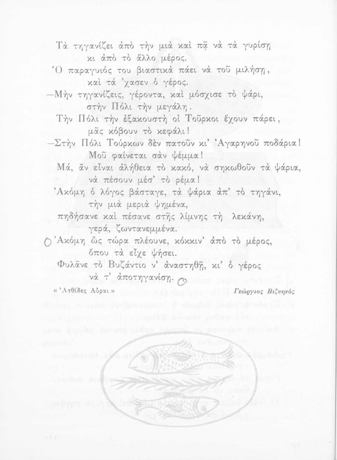 Αναγνωστικό ΣΤ΄ Δημοτικού που περιέχει πεζά και ποιήματα εμπνευσμένα από τη θρησκευτική, εθνική, κοινωνική και ατομική ζωή, την ελληνική φύση, ιστορία και μυθολογία και την υγιεινή.