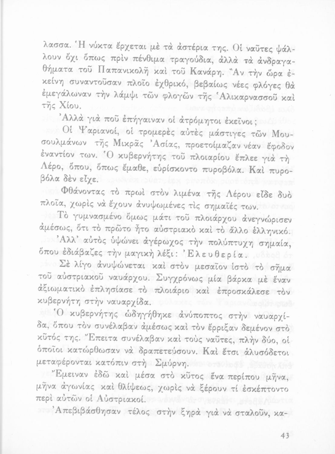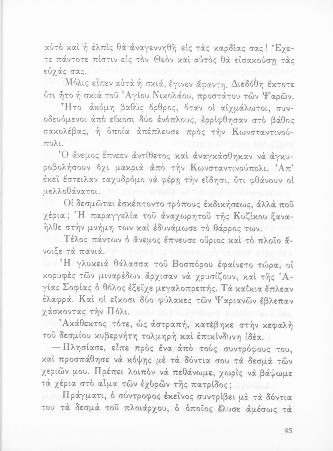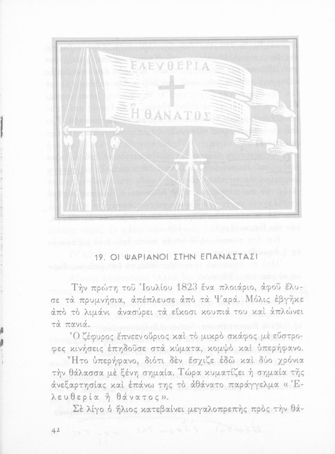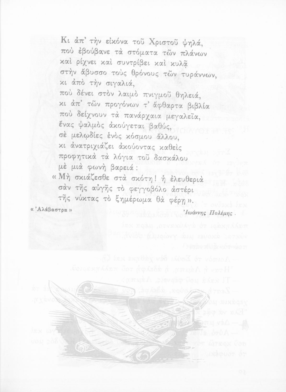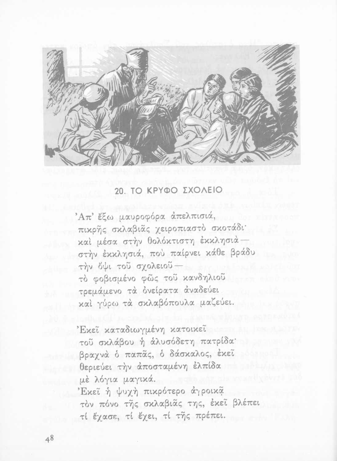 Αναγνωστικό ΣΤ΄ Δημοτικού που περιλαμβάνει θέματα από τις ελληνικές παραδόσεις και μύθους, την ελληνική φύση και θάλασσα και το τρίπτυχο "Πατρίς-θρησκεία-οικογένειαα".