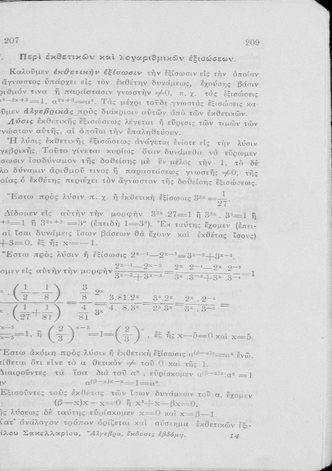 Σχολικό εγχειρίδιο Άλγεβρας για τα Γυμνάσια χωρισμένο σε θεωρία και ασκήσεις. Ο συγγραφέας ήταν καθηγητής στο Πανεπιστήμιο Αθηνών.