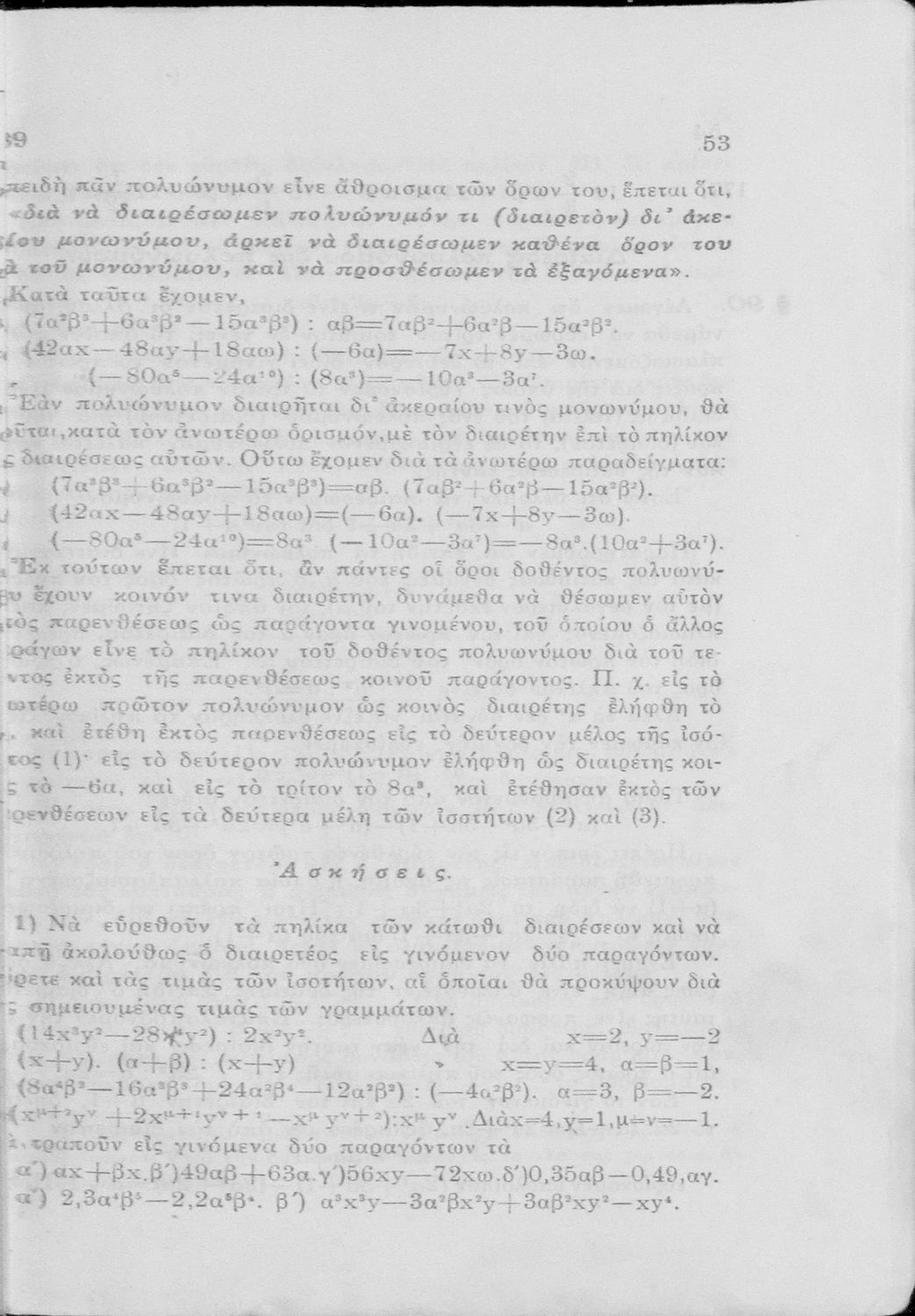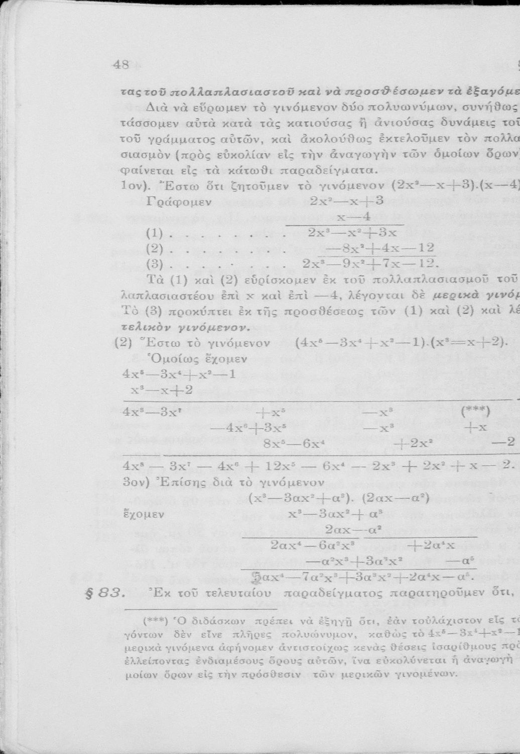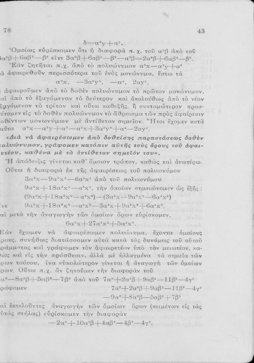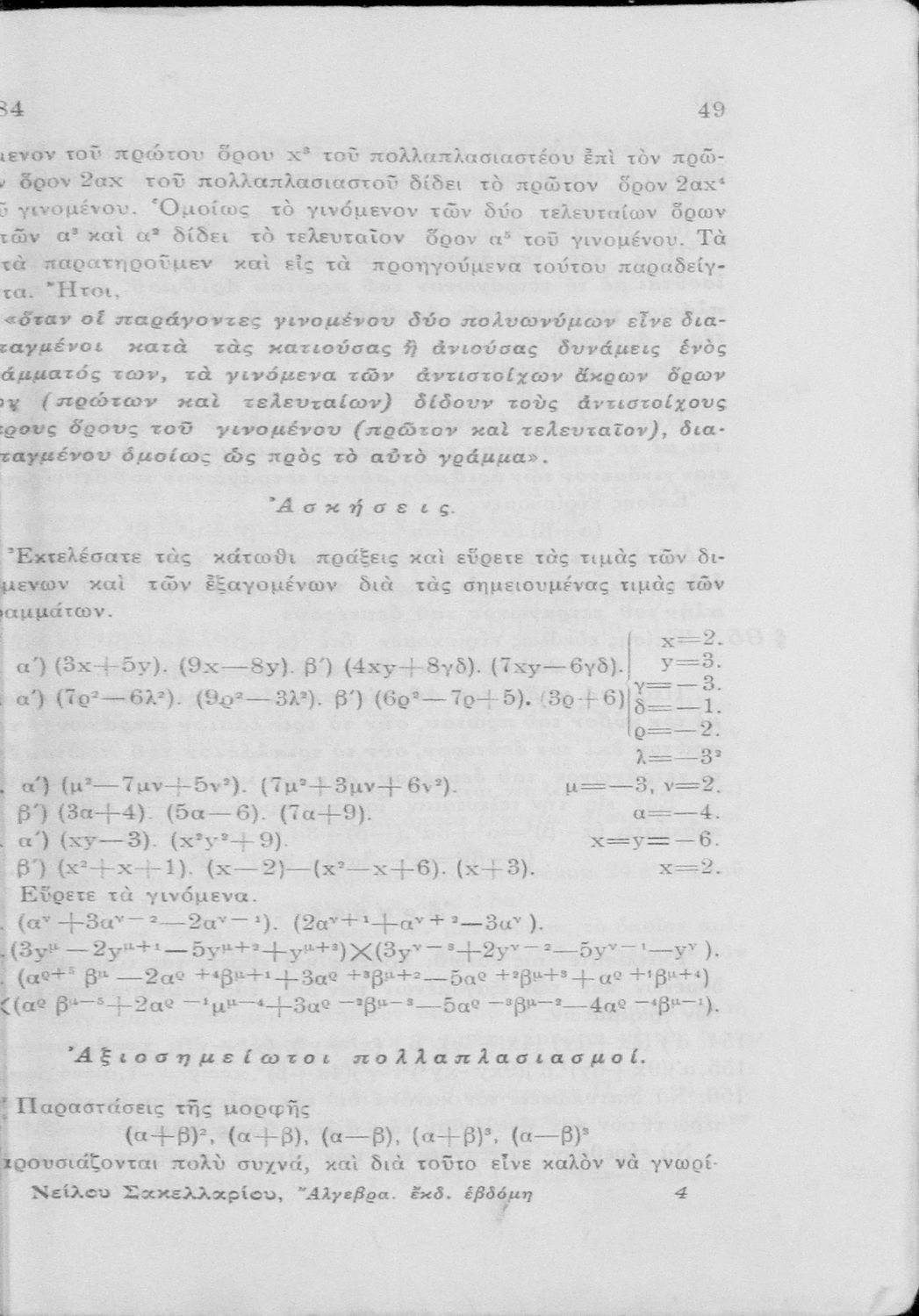 Σχολικό εγχειρίδιο Άλγεβρας για τα Γυμνάσια χωρισμένο σε θεωρία και ασκήσεις. Ο συγγραφέας ήταν καθηγητής στο Πανεπιστήμιο Αθηνών.