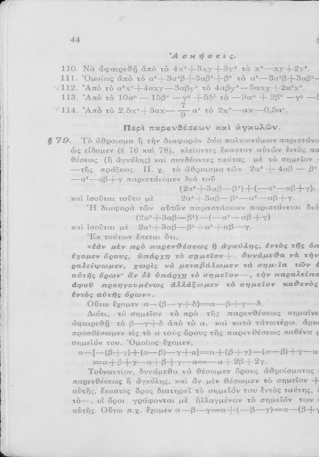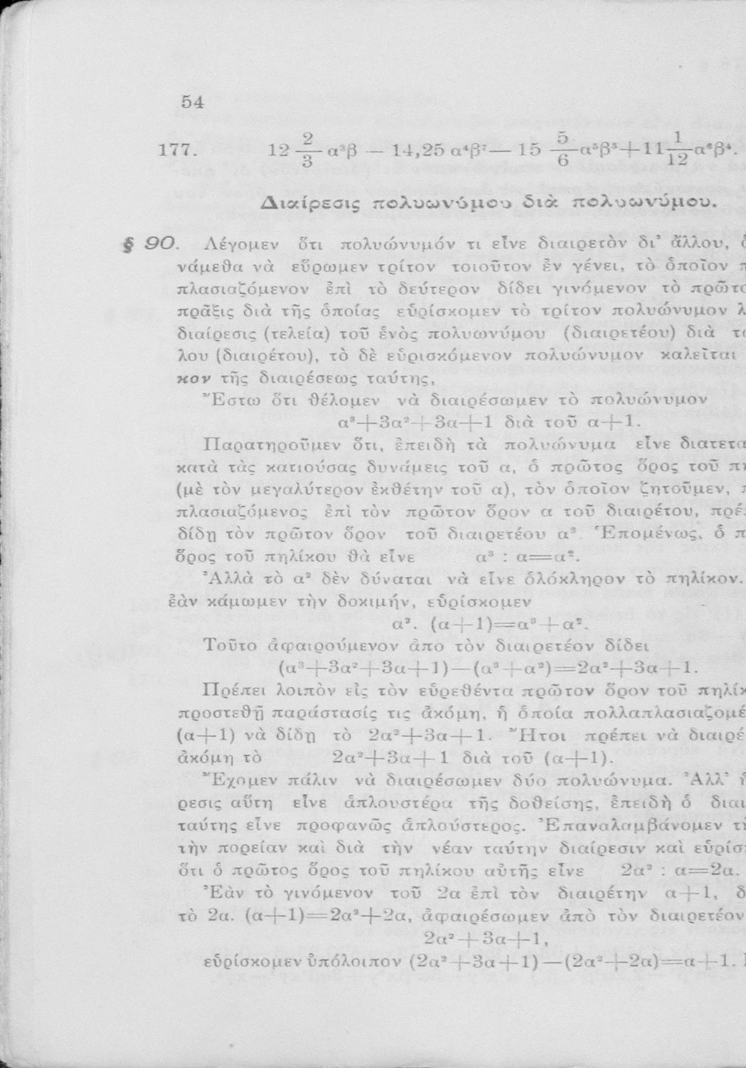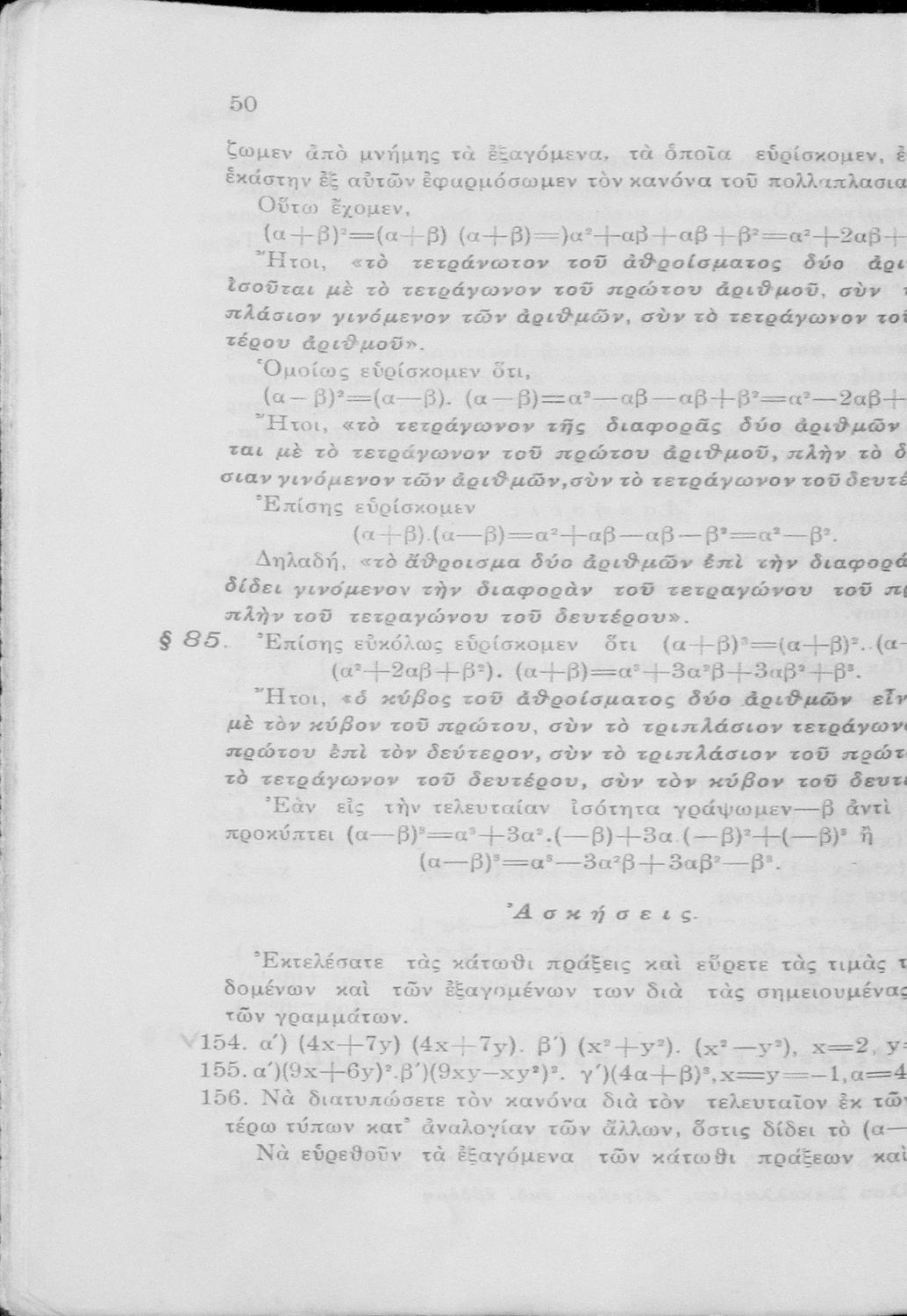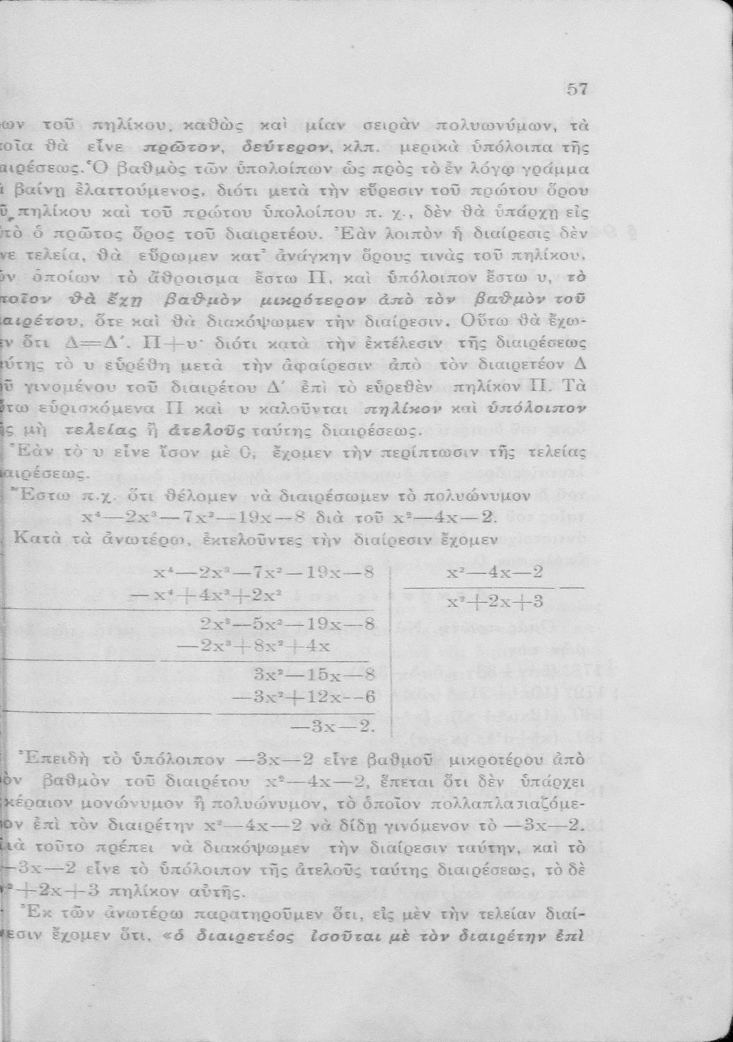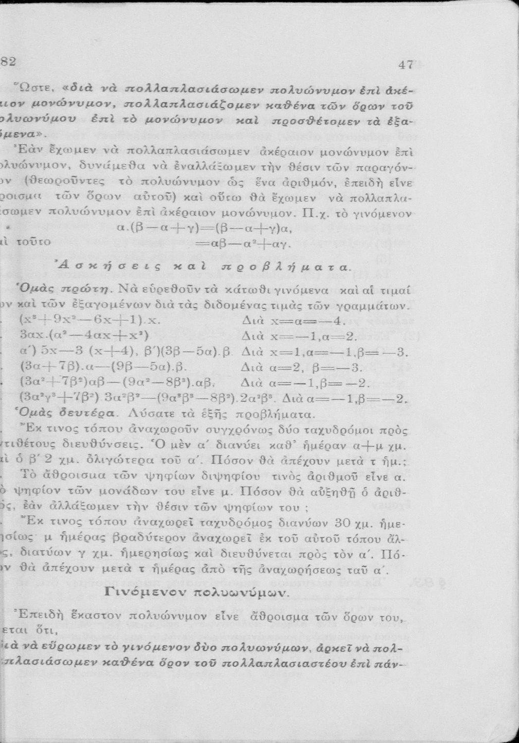 Σχολικό εγχειρίδιο Άλγεβρας για τα Γυμνάσια χωρισμένο σε θεωρία και ασκήσεις. Ο συγγραφέας ήταν καθηγητής στο Πανεπιστήμιο Αθηνών.