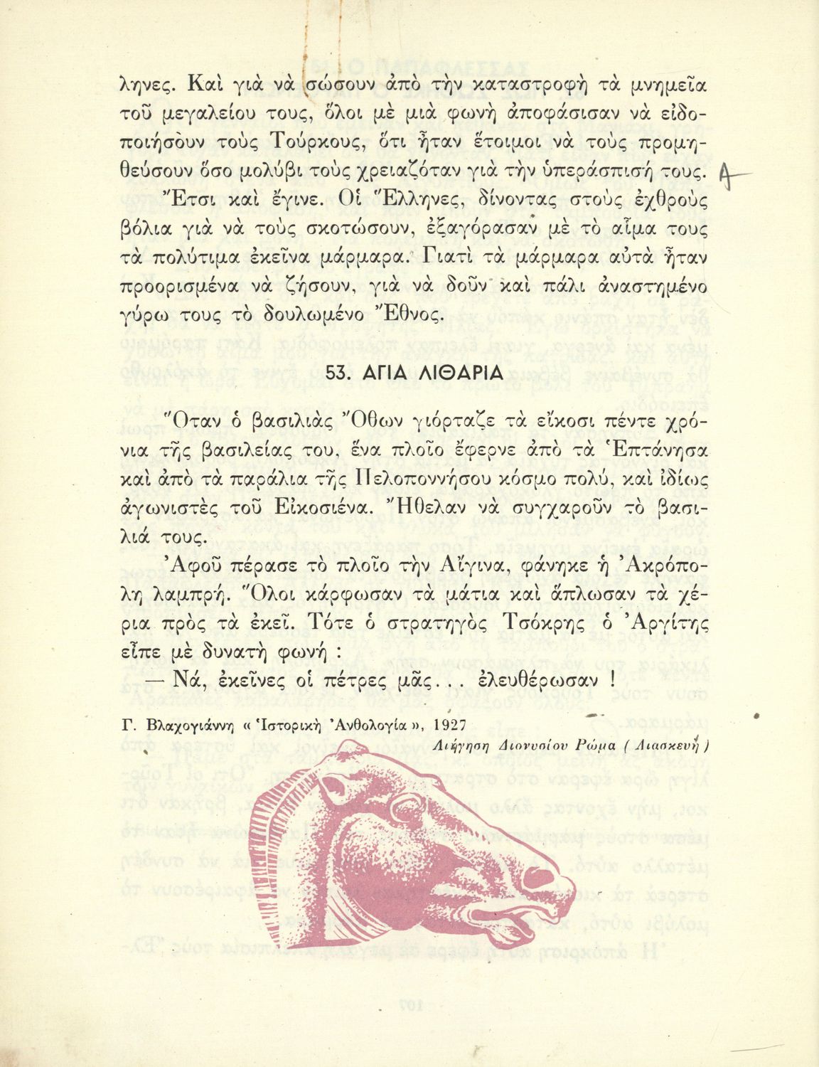Αναγνωστικό της ΣΤ΄ Δημοτικού που κυκλοφόρησε σε 7.000 αντίτυπα 25 ημέρες πριν την 4η Αυγούστου 1936, οπότε κατά την επόμενη σχολική χρονιά διδάχτηκε ελάχιστα και η έκδοσή του με αυτή την μορφή σταμάτησε.
