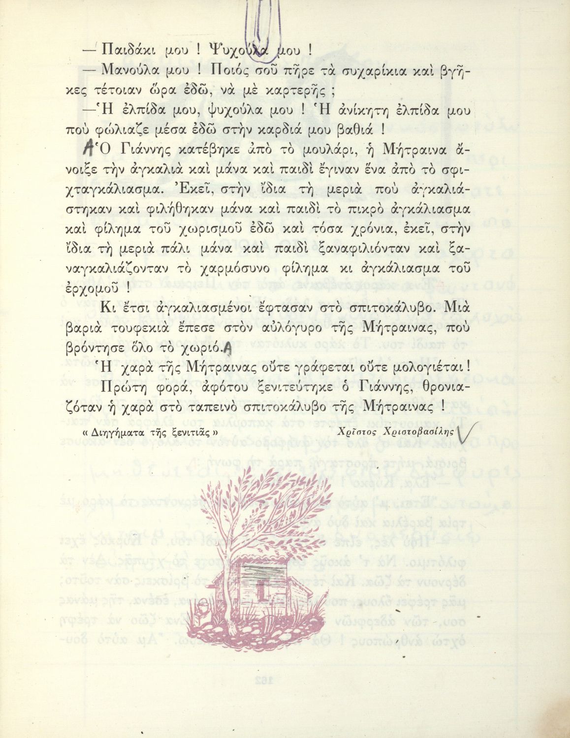 Αναγνωστικό ΣΤ΄ Δημοτικού που αντλεί τα θέματά του από τη θρησκευτική, εθνική, οικογενειακή, κοινωνική και επαγγελματική ζωή και την σύγχρονη ελληνική ιστορία. Περιέχει και λεξιλόγιο.