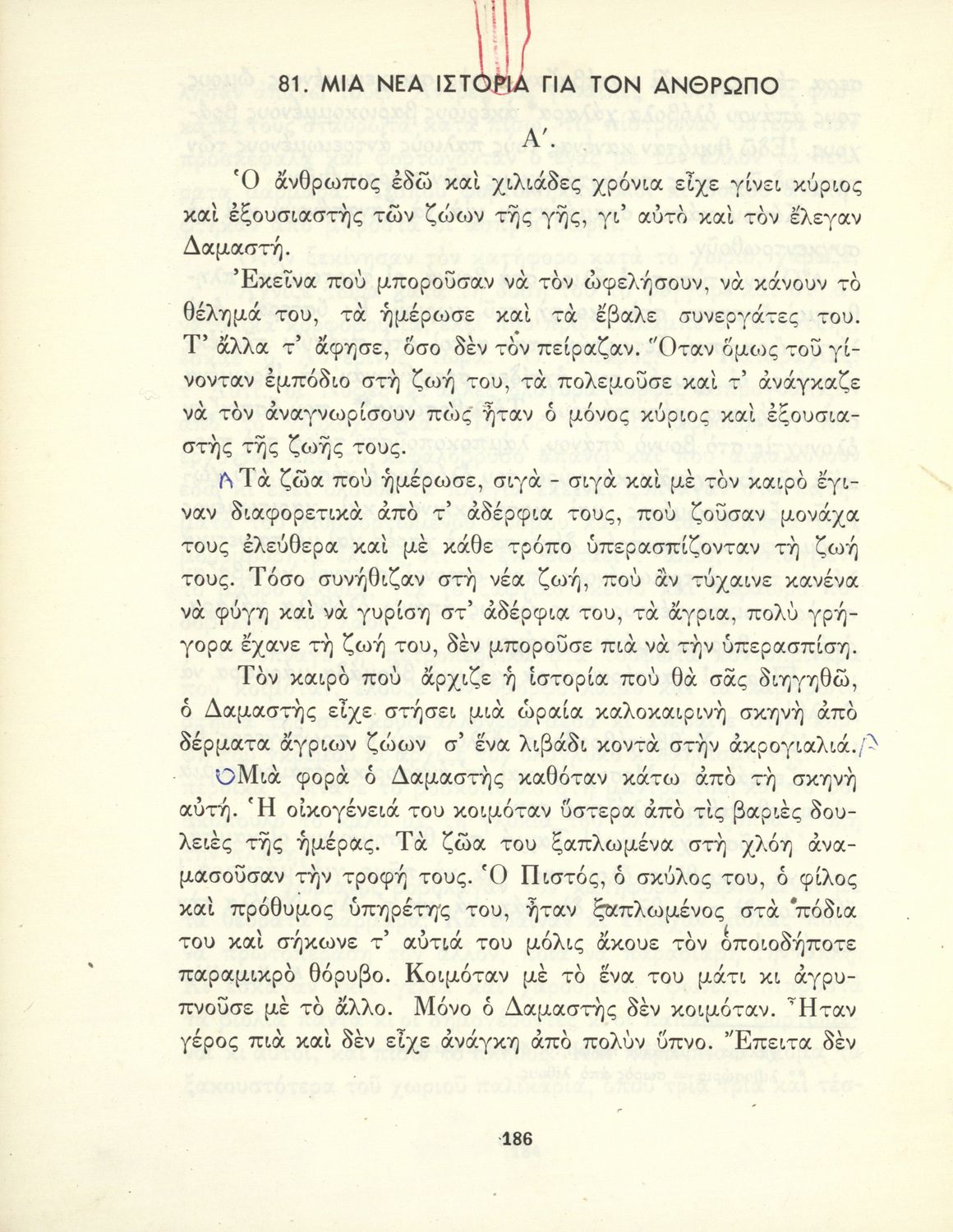 Αναγνωστικό της ΣΤ΄ Δημοτικού που κυκλοφόρησε σε 7.000 αντίτυπα 25 ημέρες πριν την 4η Αυγούστου 1936, οπότε κατά την επόμενη σχολική χρονιά διδάχτηκε ελάχιστα και η έκδοσή του με αυτή την μορφή σταμάτησε.