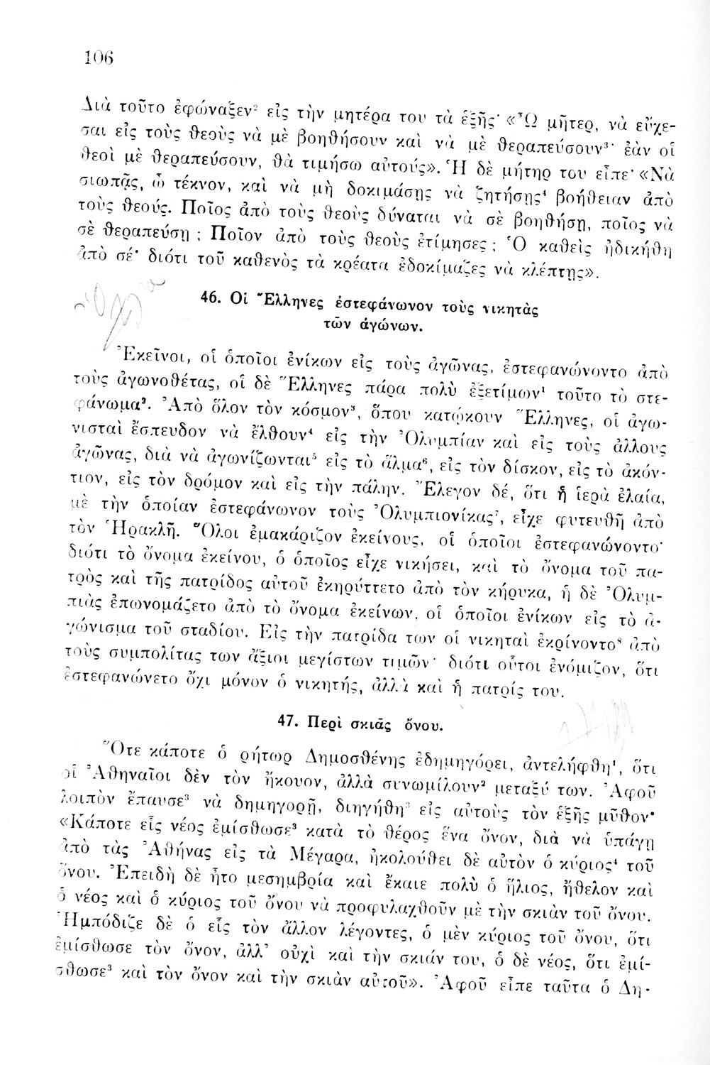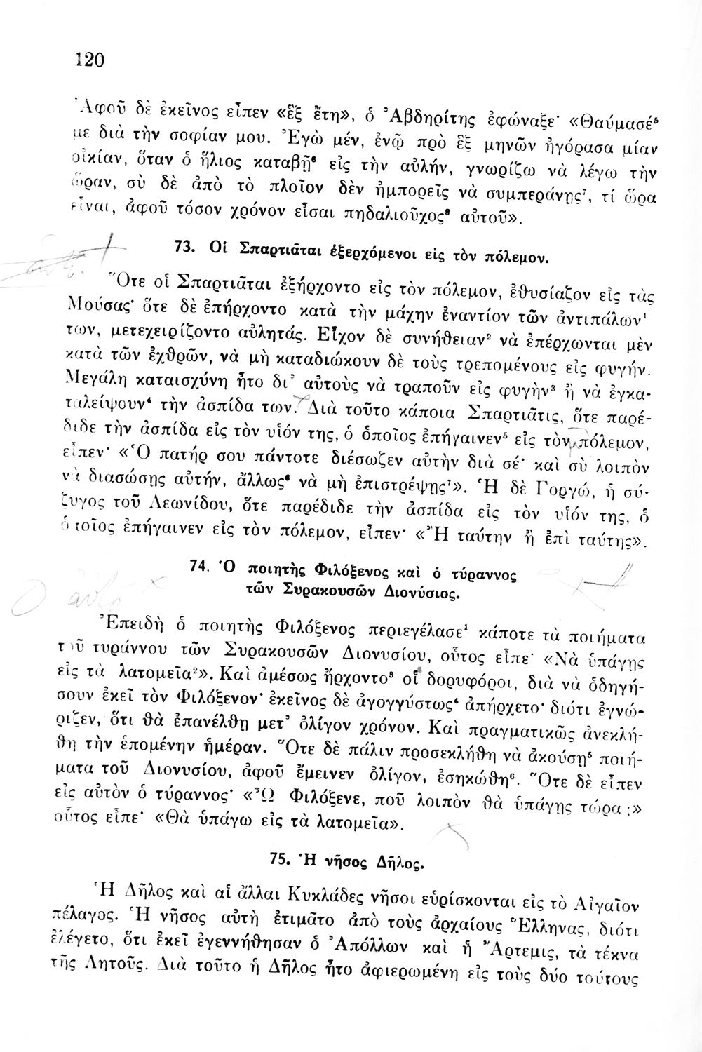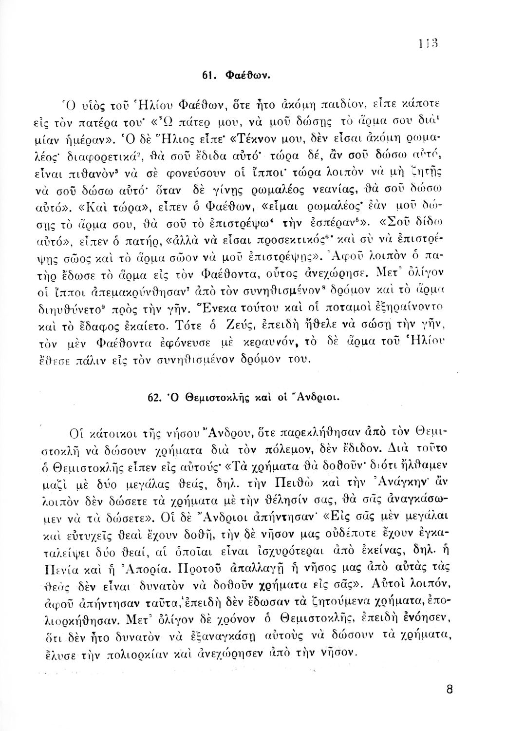 Σχολικό εγχειρίδιο Αρχαίων Ελληνικών Γυμνασίου που περιέχει κείμενα βασισμένα στην αρχαία ελληνική ιστορία και μυθολογία και γραμματικές, συντακτικές και ετυμολογικές παρατηρήσεις.