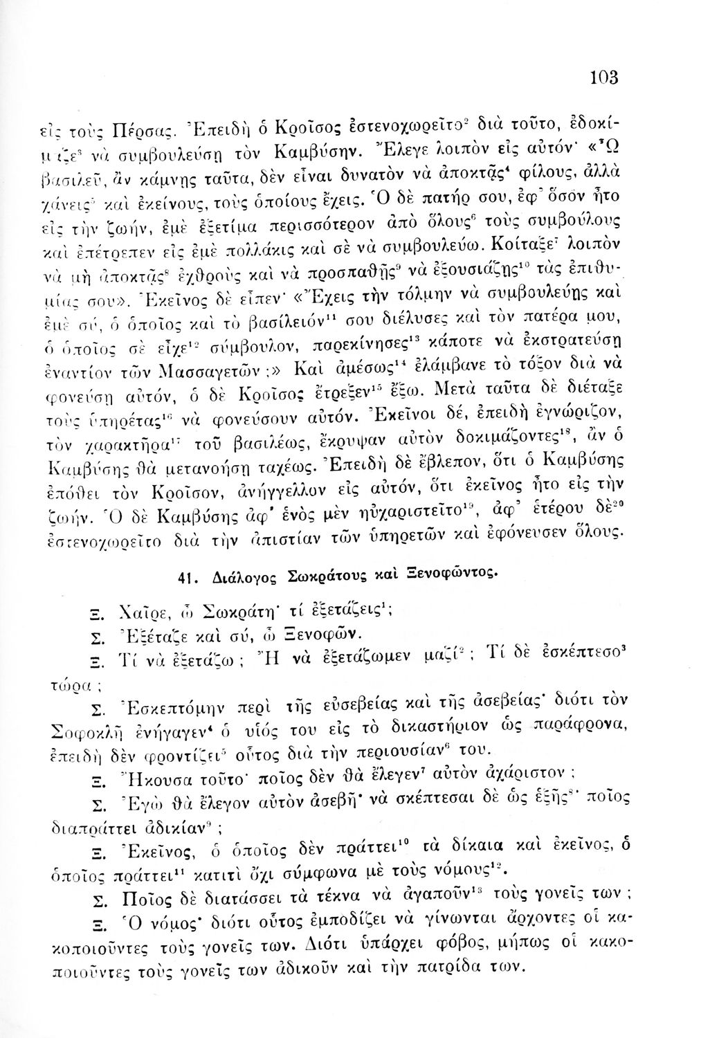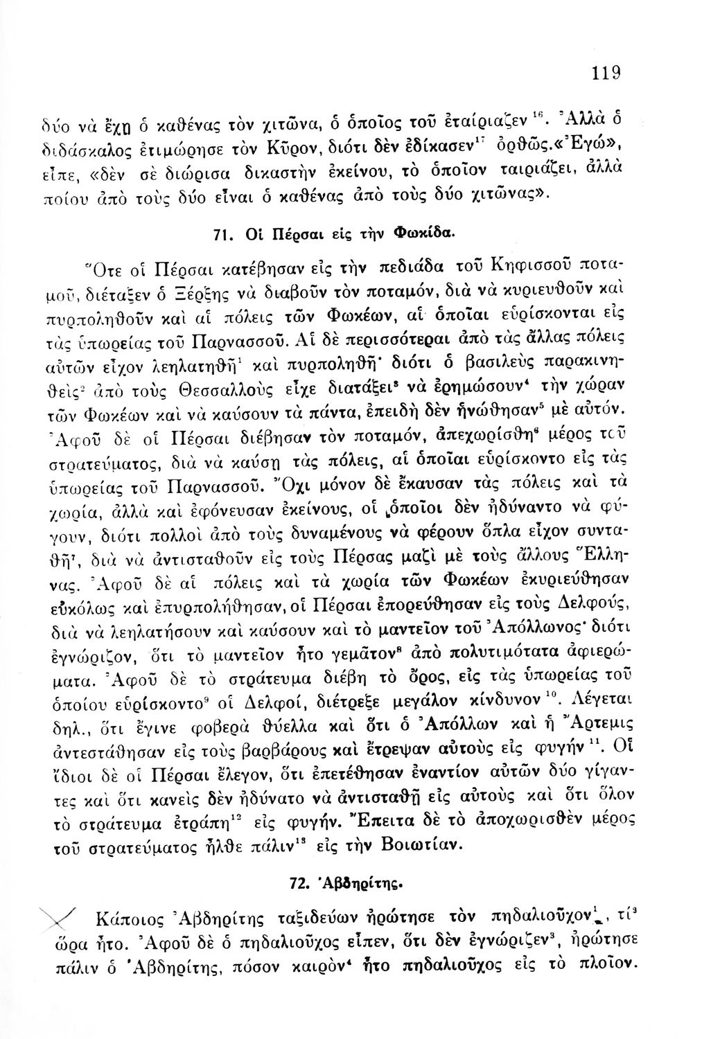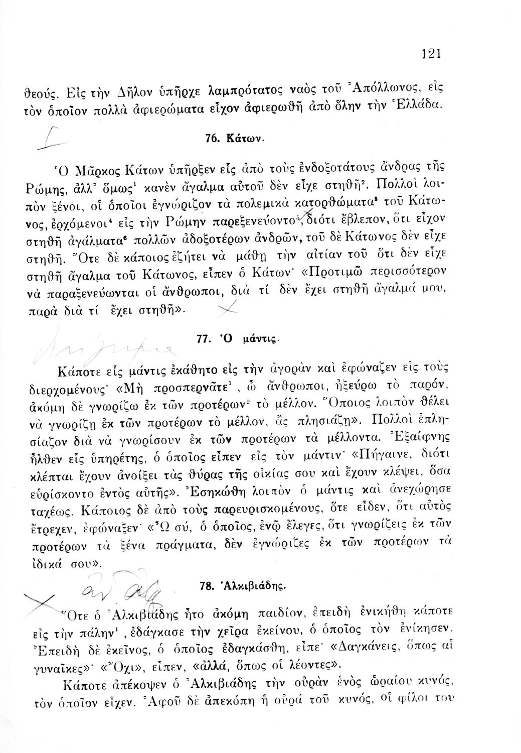 Σχολικό εγχειρίδιο Αρχαίων Ελληνικών Γυμνασίου που περιέχει κείμενα βασισμένα στην αρχαία ελληνική ιστορία και μυθολογία και γραμματικές, συντακτικές και ετυμολογικές παρατηρήσεις.