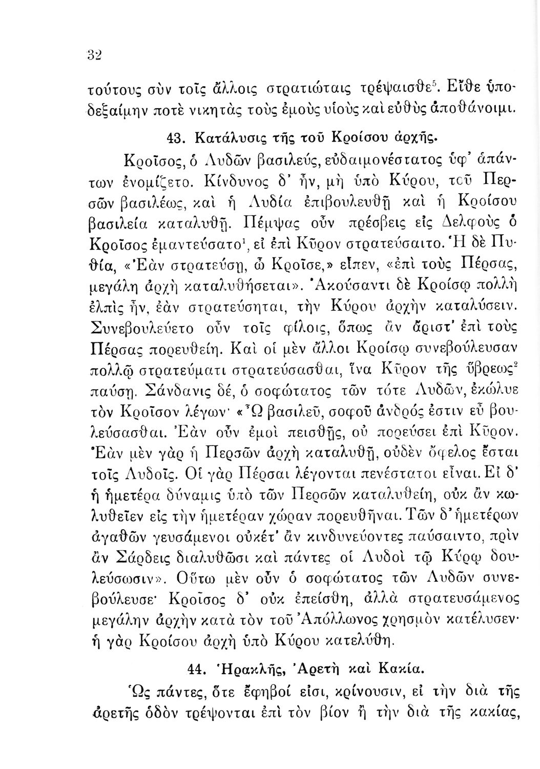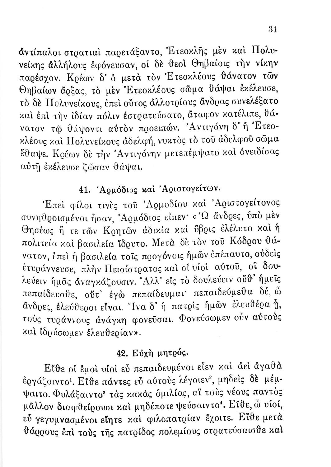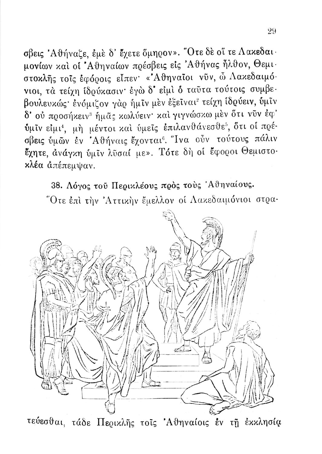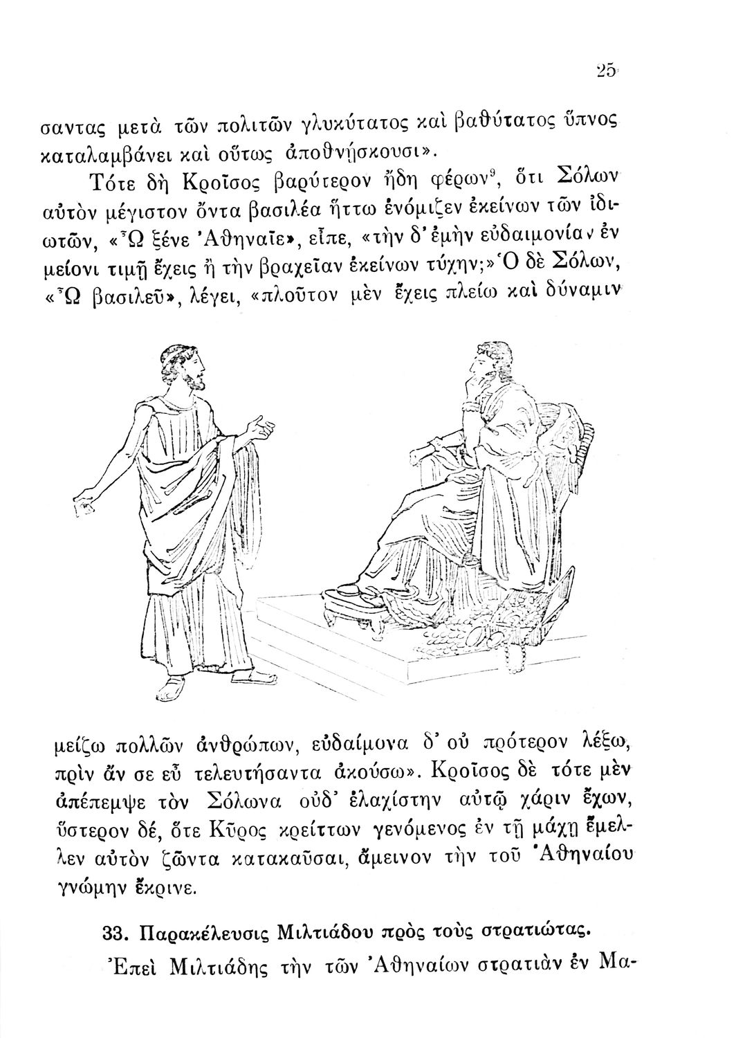 Σχολικό εγχειρίδιο Αρχαίων Ελληνικών Γυμνασίου που περιέχει κείμενα βασισμένα στην αρχαία ελληνική ιστορία και μυθολογία και γραμματικές, συντακτικές και ετυμολογικές παρατηρήσεις.