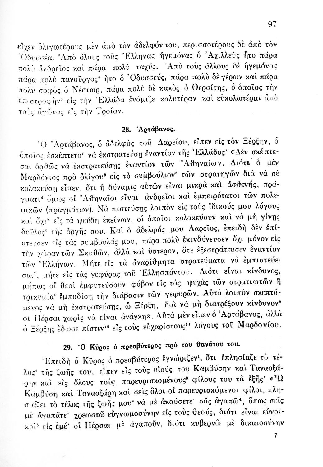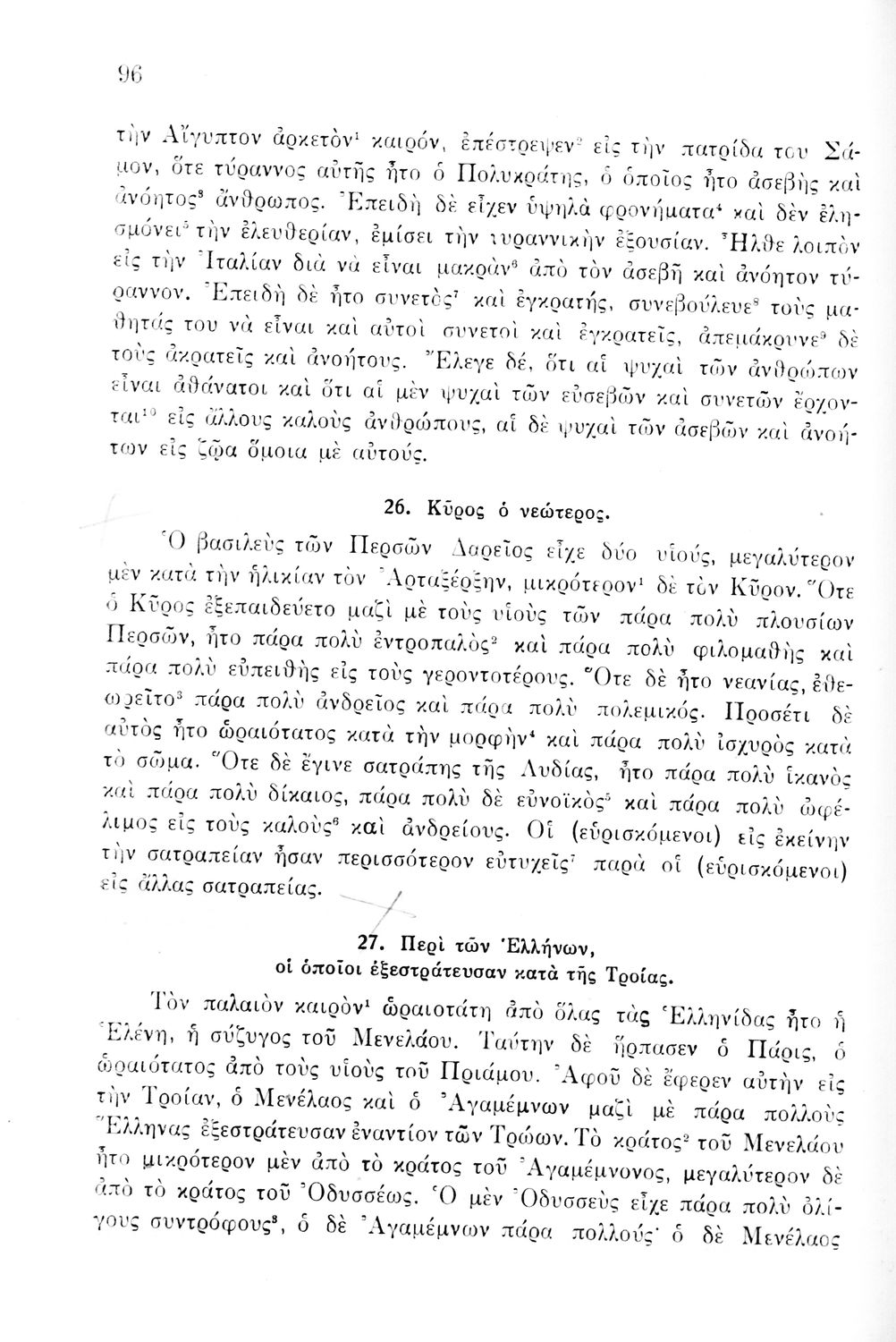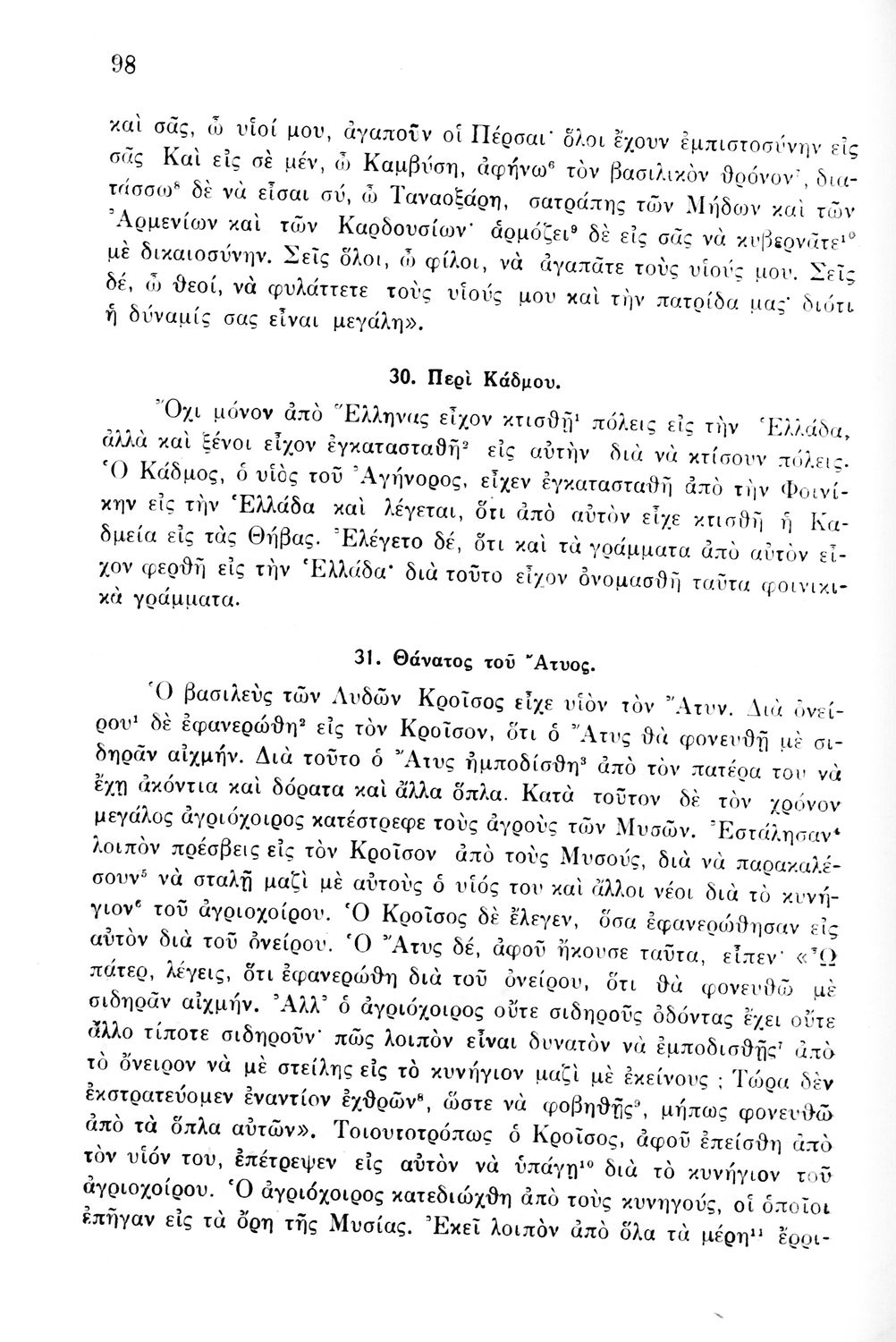 Σχολικό εγχειρίδιο Αρχαίων Ελληνικών Γυμνασίου που περιέχει κείμενα βασισμένα στην αρχαία ελληνική ιστορία και μυθολογία και γραμματικές, συντακτικές και ετυμολογικές παρατηρήσεις.