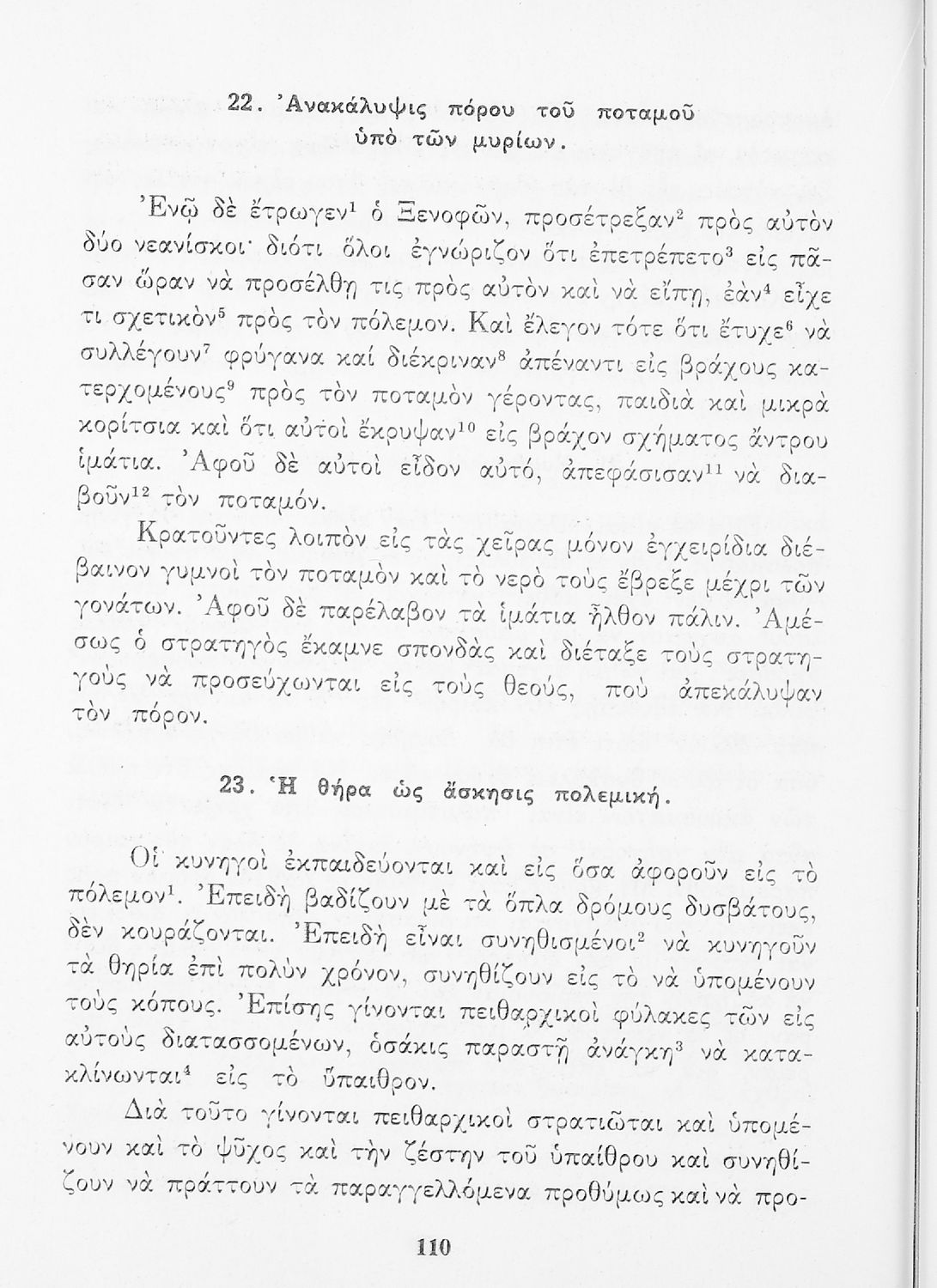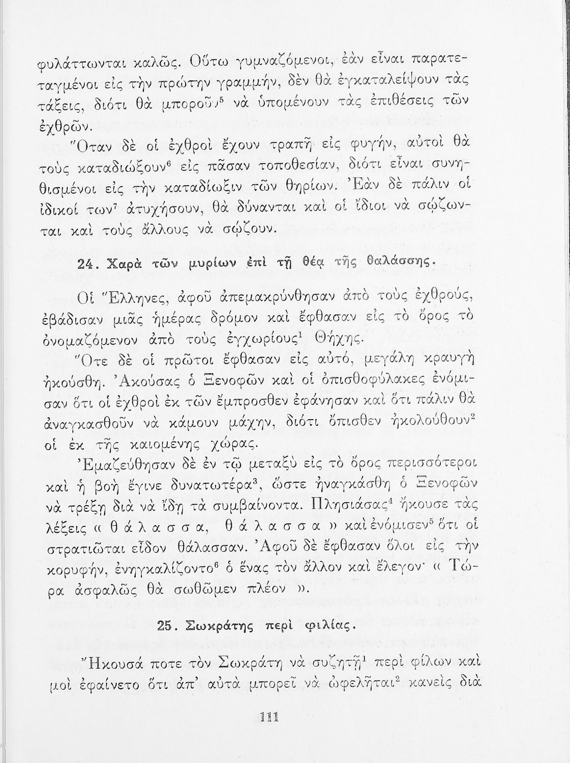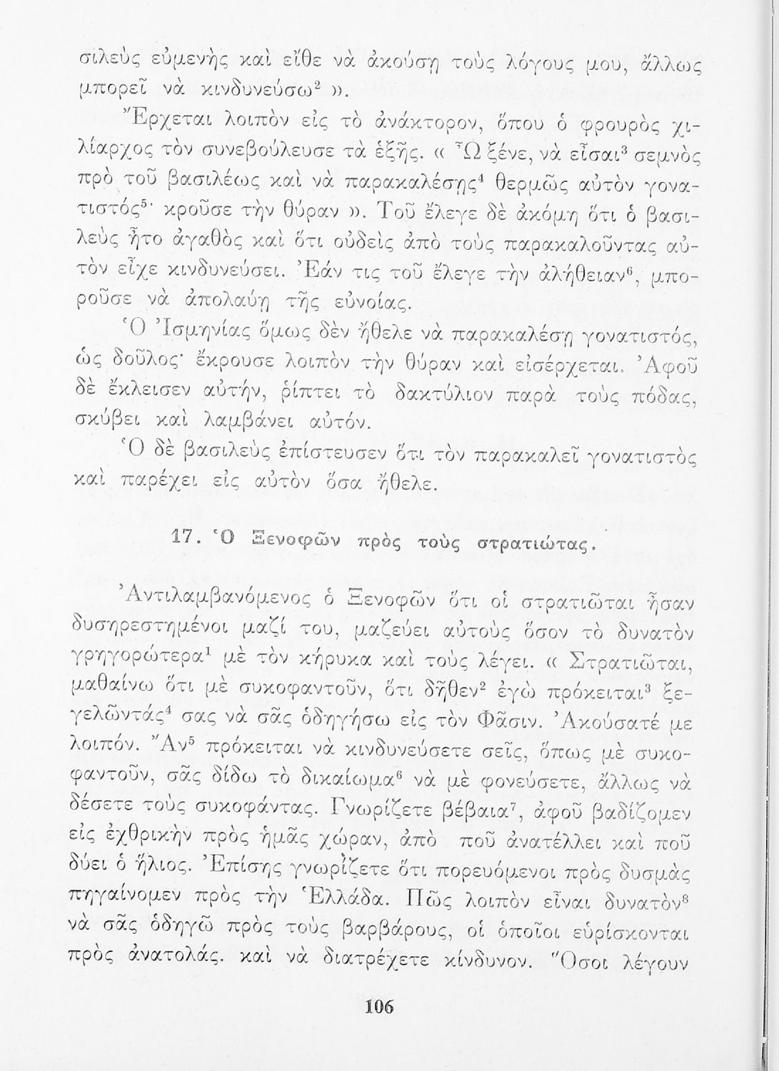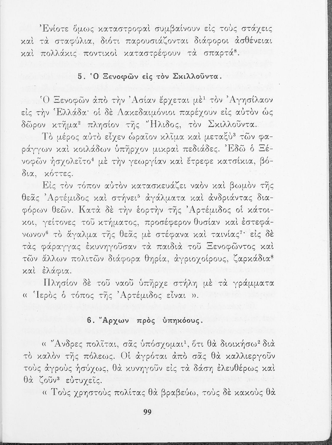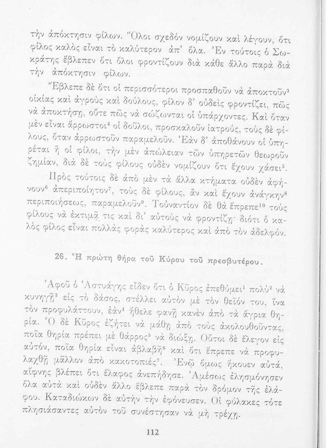 Σχολικό Εγχειρίδιο Αρχαίων Ελληνικών που περιλαμβάνει κείμενα προσαρμοσμένα στη διδασκαλία των γραμματικών και συντακτικών φαινομένων, και ερμηνευτικές και λεξιλογικές σημειώσεις.