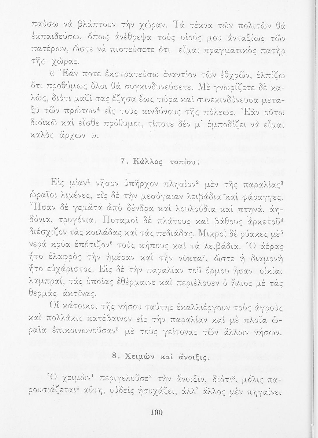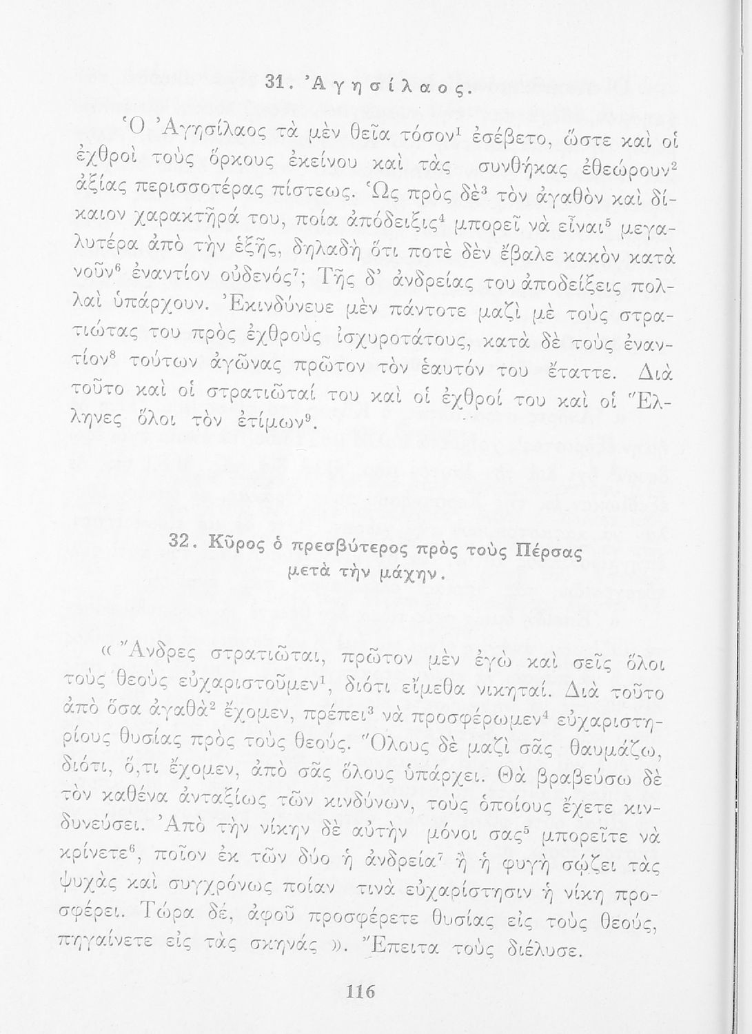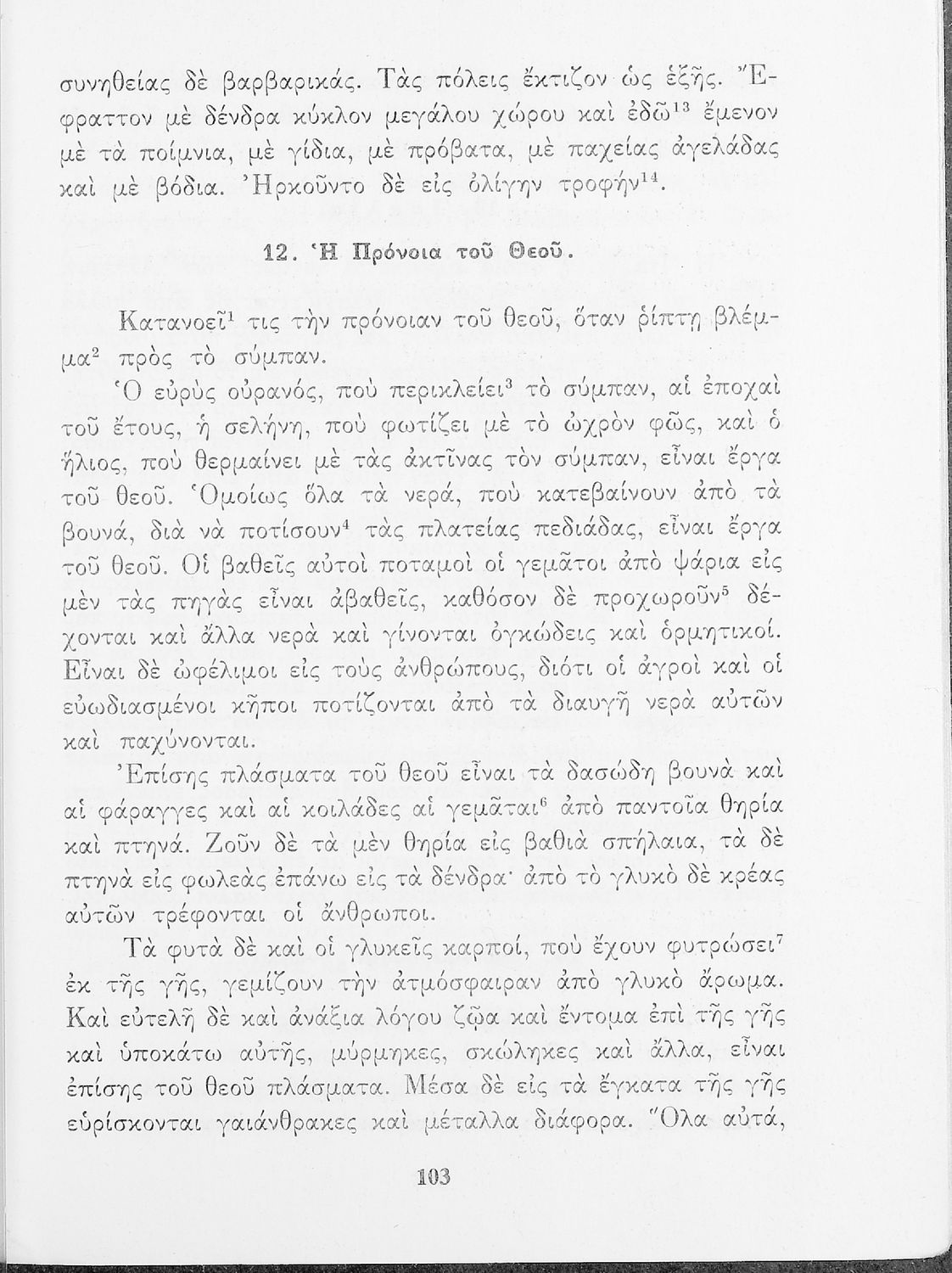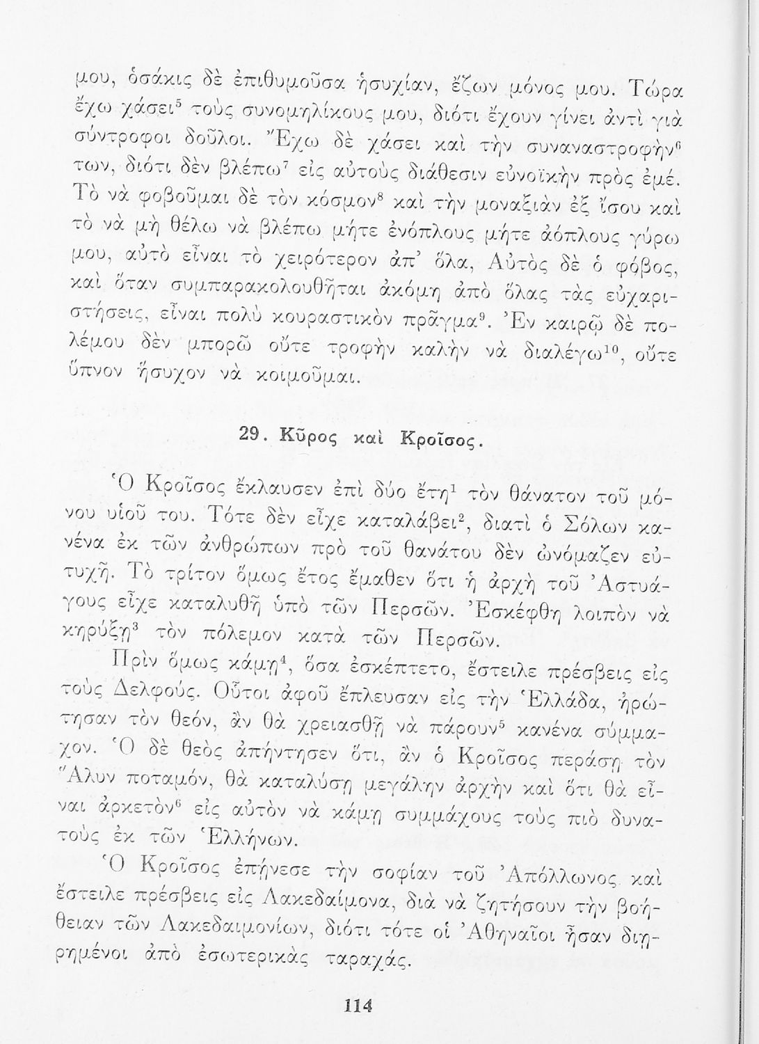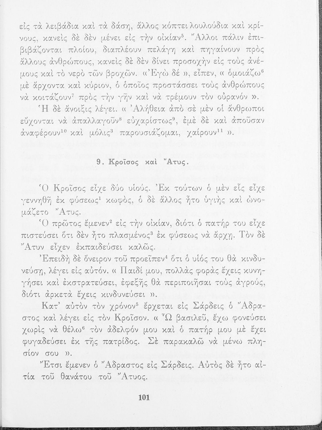 Σχολικό Εγχειρίδιο Αρχαίων Ελληνικών που περιλαμβάνει κείμενα προσαρμοσμένα στη διδασκαλία των γραμματικών και συντακτικών φαινομένων, και ερμηνευτικές και λεξιλογικές σημειώσεις.
