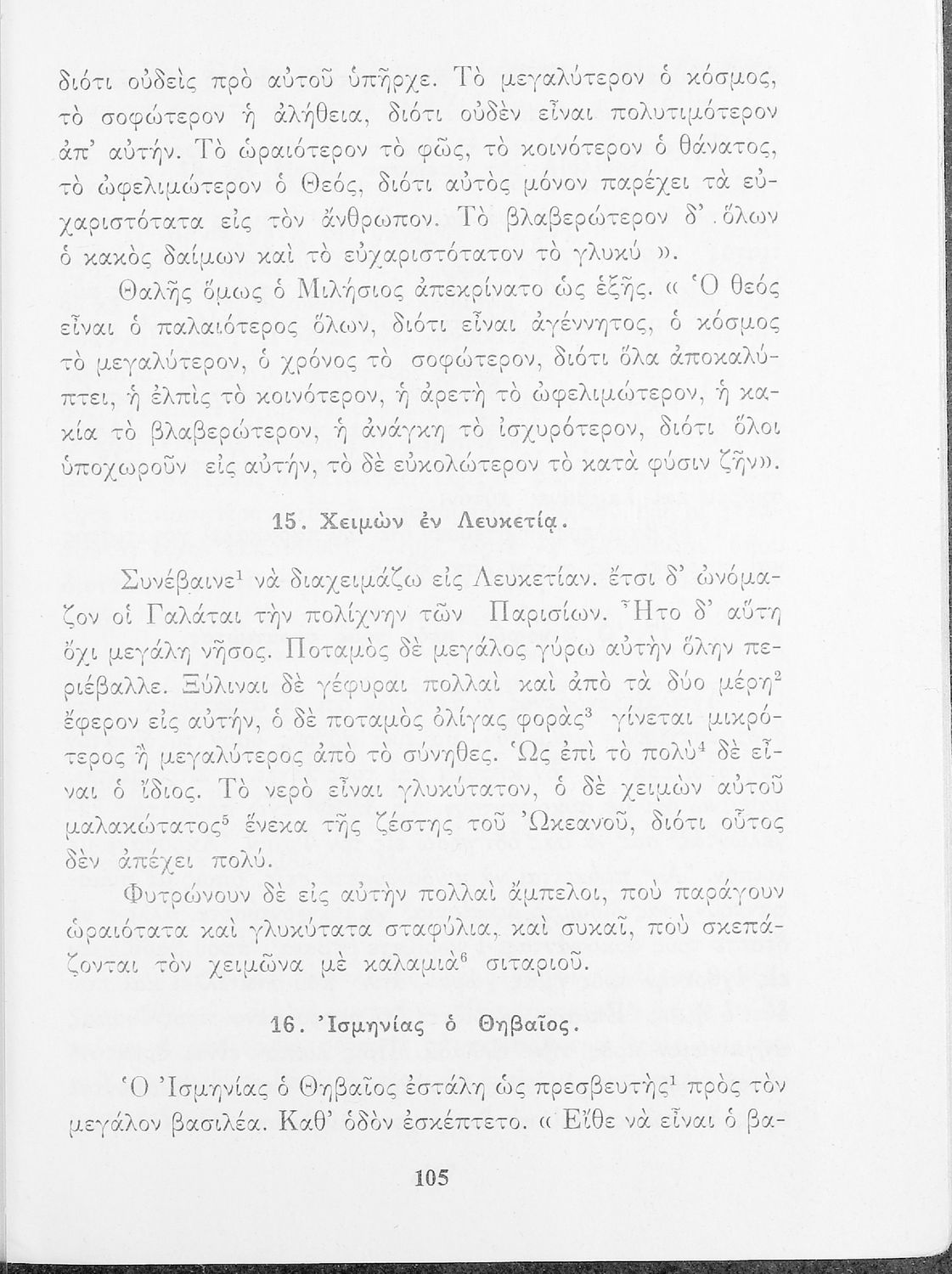 Σχολικό εγχειρίδιο Αρχαίων Ελληνικών Γυμνασίου που περιέχει κείμενα βασισμένα στην αρχαία ελληνική ιστορία και μυθολογία και γραμματικές, συντακτικές και ετυμολογικές παρατηρήσεις.