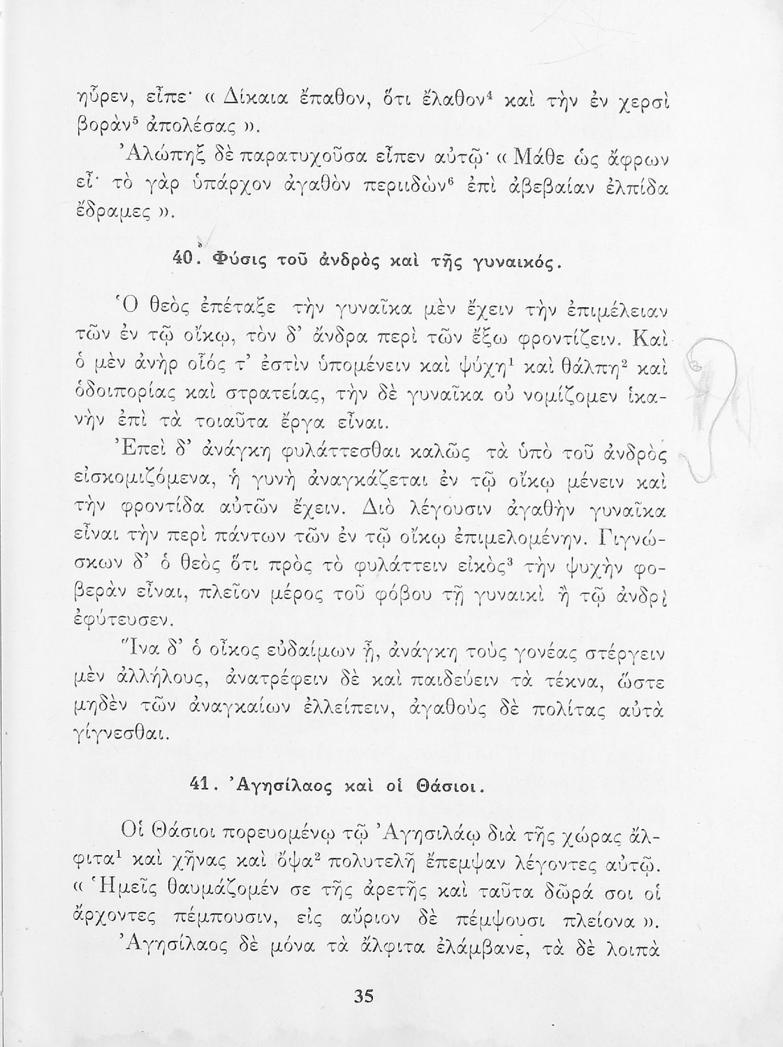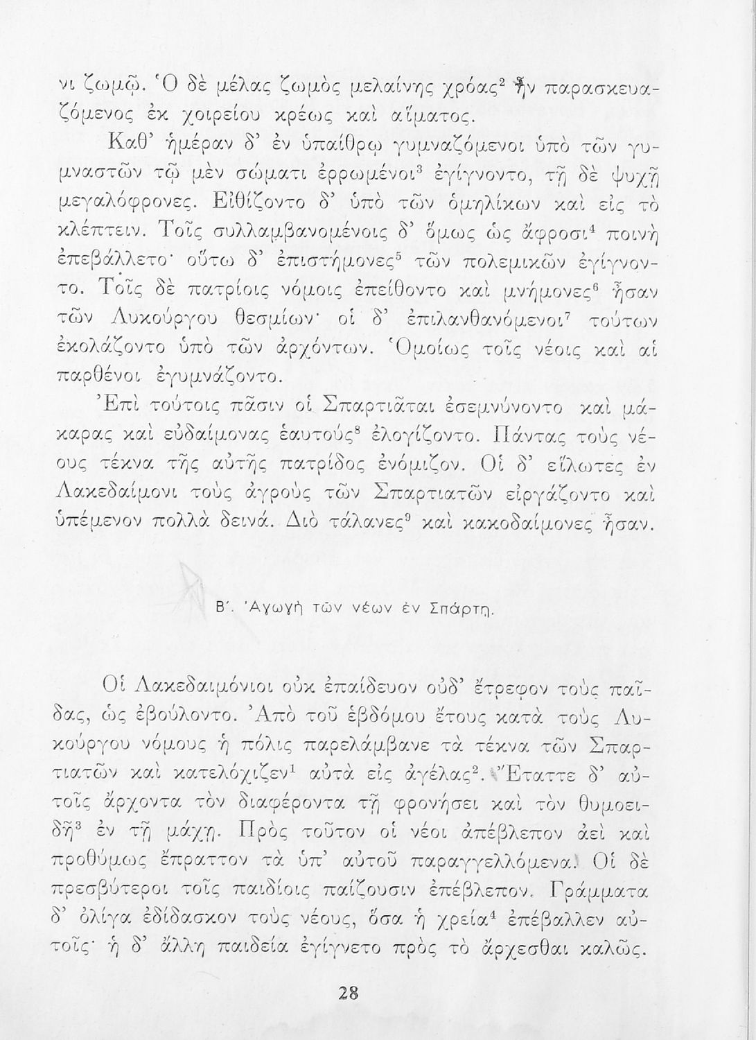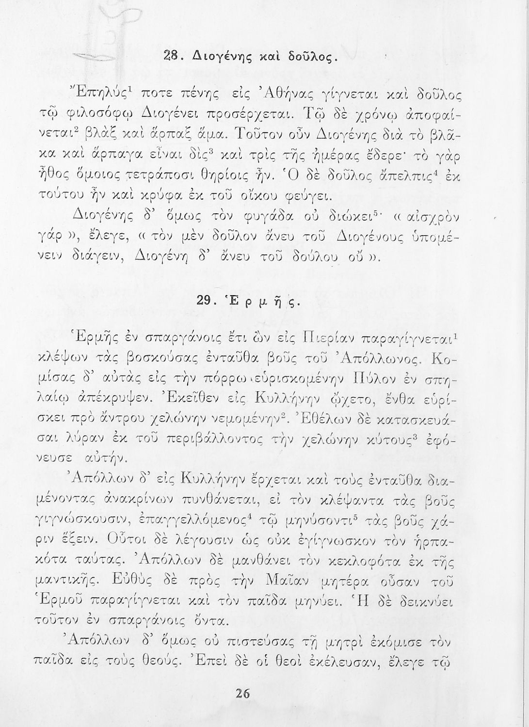 Σχολικό Εγχειρίδιο Αρχαίων Ελληνικών που περιλαμβάνει κείμενα προσαρμοσμένα στη διδασκαλία των γραμματικών και συντακτικών φαινομένων, και ερμηνευτικές και λεξιλογικές σημειώσεις.