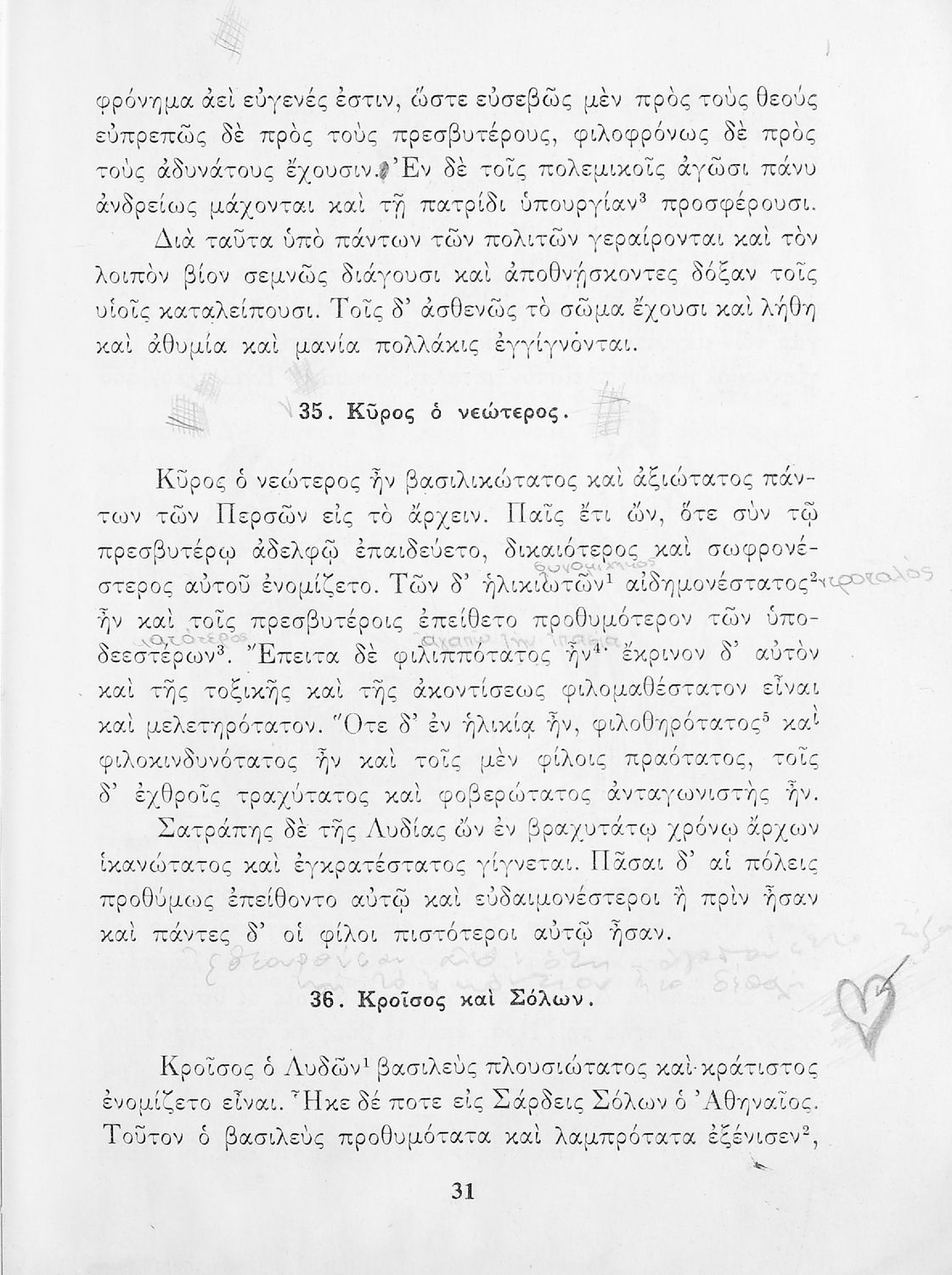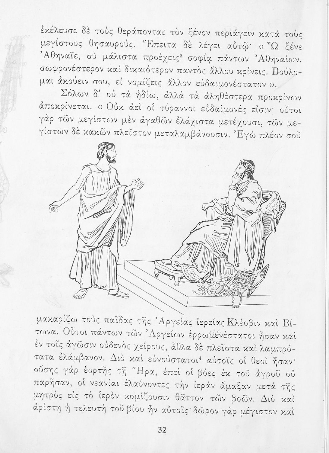 Σχολικό εγχειρίδιο Αρχαίων Ελληνικών Γυμνασίου που περιέχει κείμενα βασισμένα στην αρχαία ελληνική ιστορία και μυθολογία και γραμματικές, συντακτικές και ετυμολογικές παρατηρήσεις.