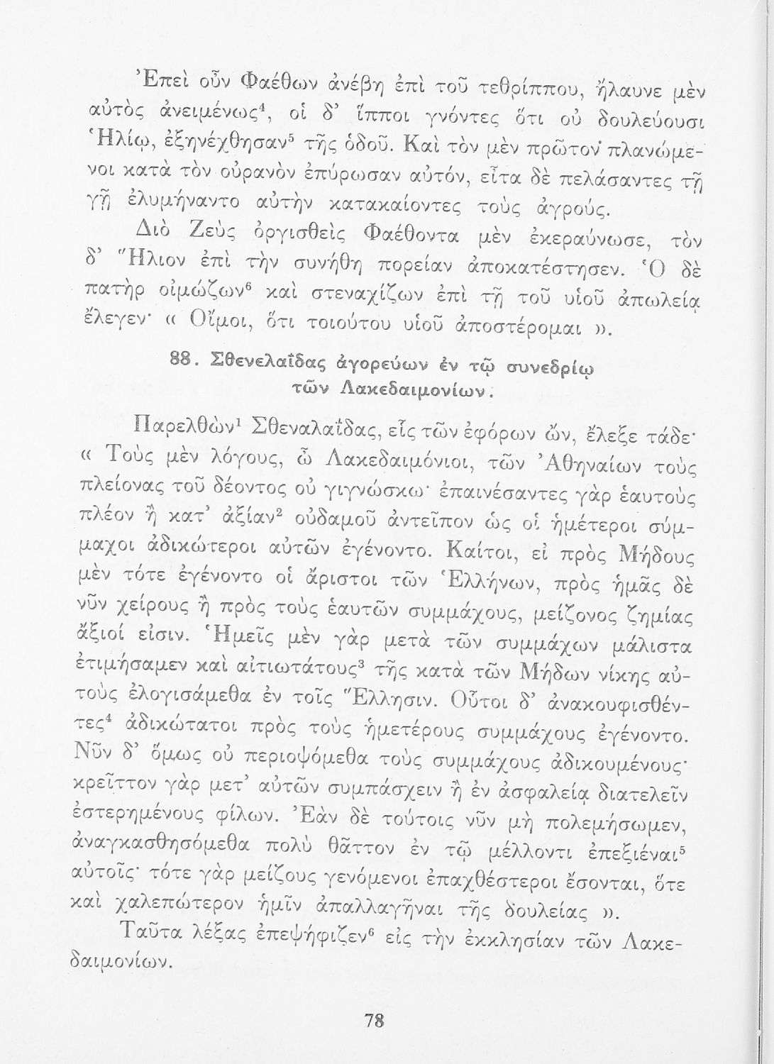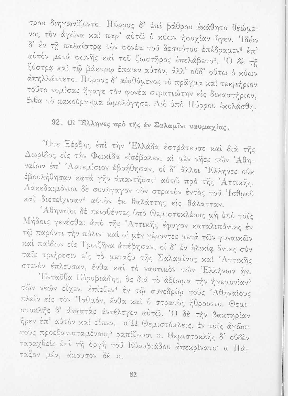 Σχολικό εγχειρίδιο Αρχαίων Ελληνικών Γυμνασίου που περιέχει κείμενα βασισμένα στην αρχαία ελληνική ιστορία και μυθολογία και γραμματικές, συντακτικές και ετυμολογικές παρατηρήσεις.