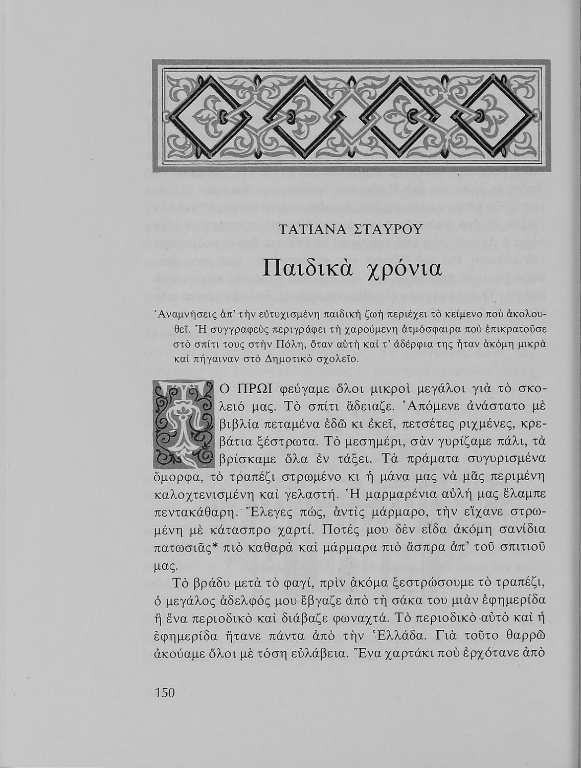 Αναγνωστικό για τους μαθητές της Γ' και Δ΄ Δημοτικού που περιλαμβάνει με πεζά και ποιήματα της νέας ελληνικής λογοτεχνίας εμπνευσμένα από την καθημερινότητα των παιδιών και των οικογενειών τους, την ελληνική ...