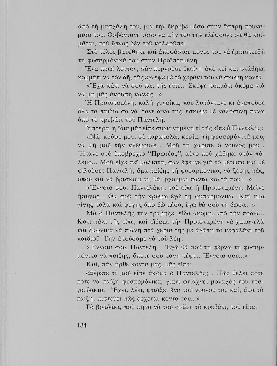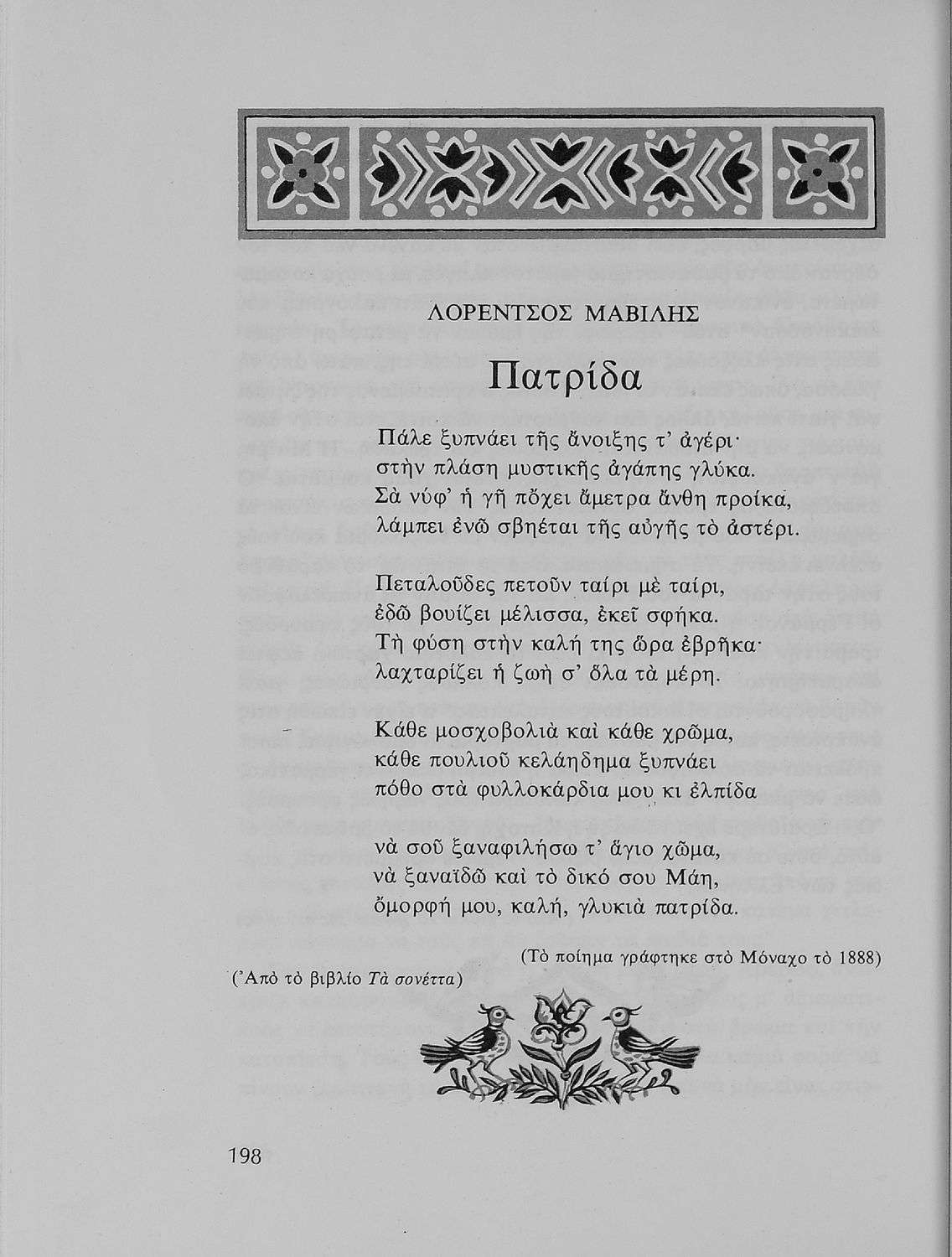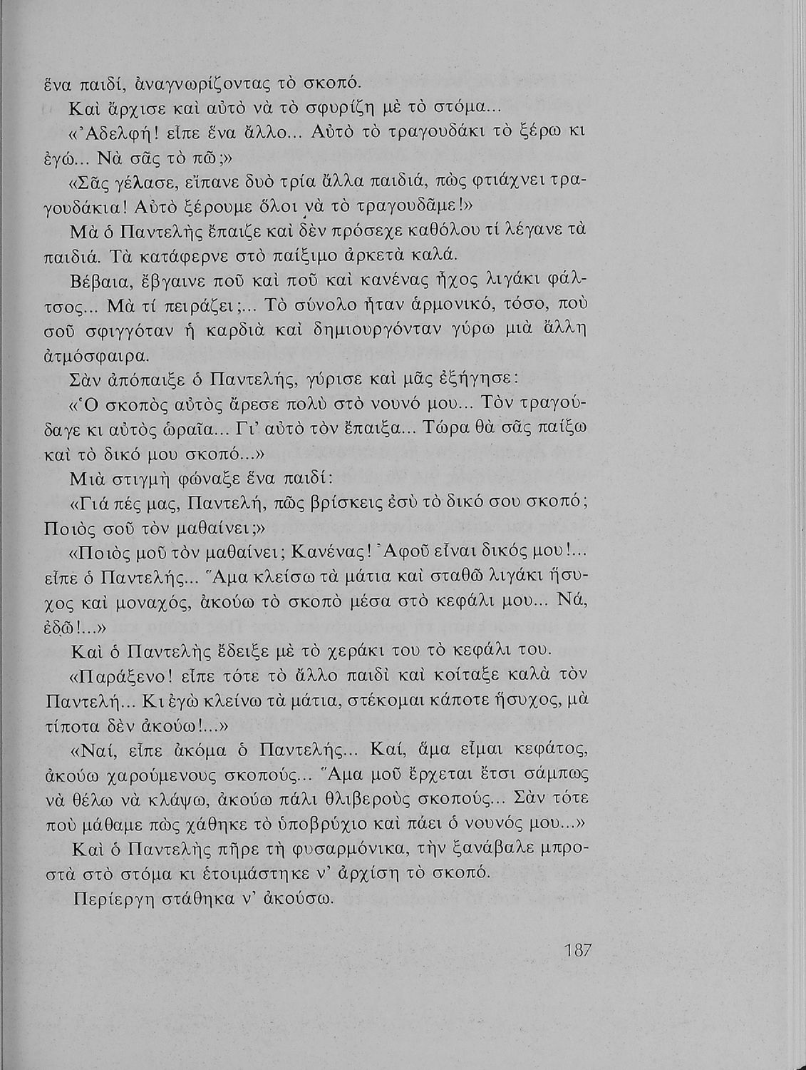 Αναγνωστικό για τις Ε' και ΣΤ΄ Δημοτικού που περιλαμβάνει πεζά και ποιήματα της Νέας Ελληνικής Λογοτεχνίας εμπνευσμένα από την καθημερινότητα των παιδιών και των οικογενειών τους, την ελληνική ιστορία, τις οικογενειακές στιγμές και εορτές, το παιχνίδι και την εθνική παράδοση, και τα δημοτικά και ακριτικά τραγούδια. Περιέχει και 5 κείμενα γραμμένα στην καθαρεύουσα με θέματα από τον κοινωνικό και εθνικό βίο, και ερμηνευτικό λεξιλόγιο.. Το βιβλίο είναι αφιερωμένο στη μνήμη της Πηνελόπης Δέλτα.