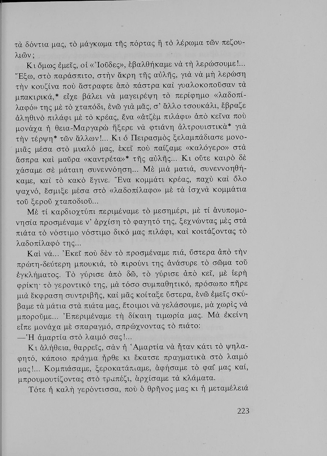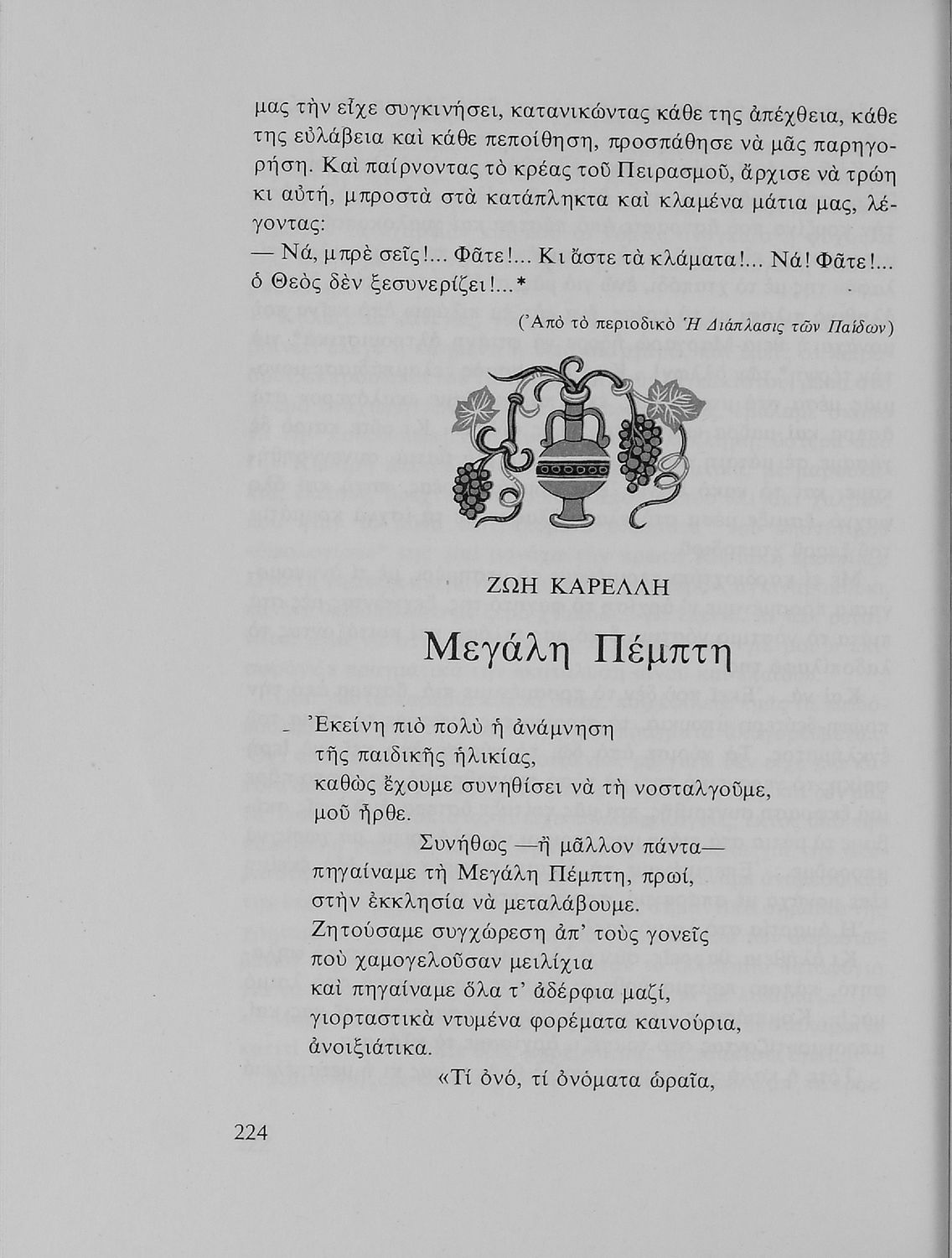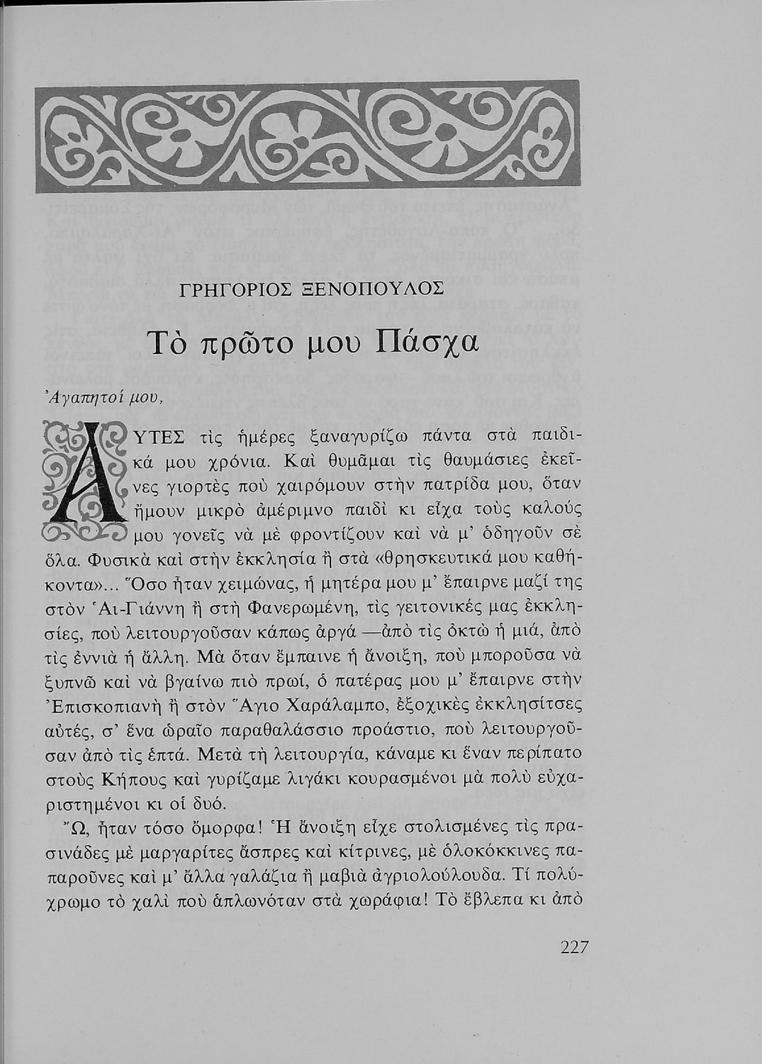 Αναγνωστικό για τις Ε' και ΣΤ΄ Δημοτικού που περιλαμβάνει πεζά και ποιήματα της Νέας Ελληνικής Λογοτεχνίας εμπνευσμένα από την καθημερινότητα των παιδιών και των οικογενειών τους, την ελληνική ιστορία, τις οικογενειακές στιγμές και εορτές, το παιχνίδι και την εθνική παράδοση, και τα δημοτικά και ακριτικά τραγούδια. Περιέχει και 5 κείμενα γραμμένα στην καθαρεύουσα με θέματα από τον κοινωνικό και εθνικό βίο, και ερμηνευτικό λεξιλόγιο.. Το βιβλίο είναι αφιερωμένο στη μνήμη της Πηνελόπης Δέλτα.