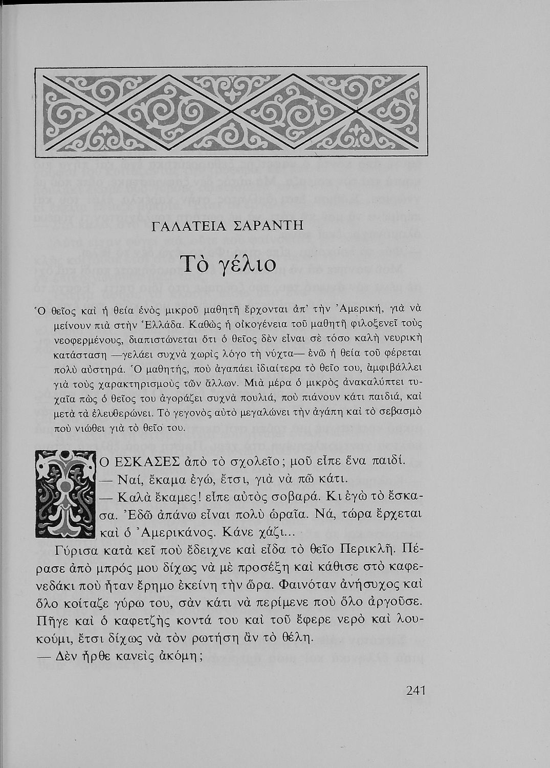 Αναγνωστικό για τους μαθητές της Γ' και Δ΄ Δημοτικού που περιλαμβάνει με πεζά και ποιήματα της νέας ελληνικής λογοτεχνίας εμπνευσμένα από την καθημερινότητα των παιδιών και των οικογενειών τους, την ελληνική ...