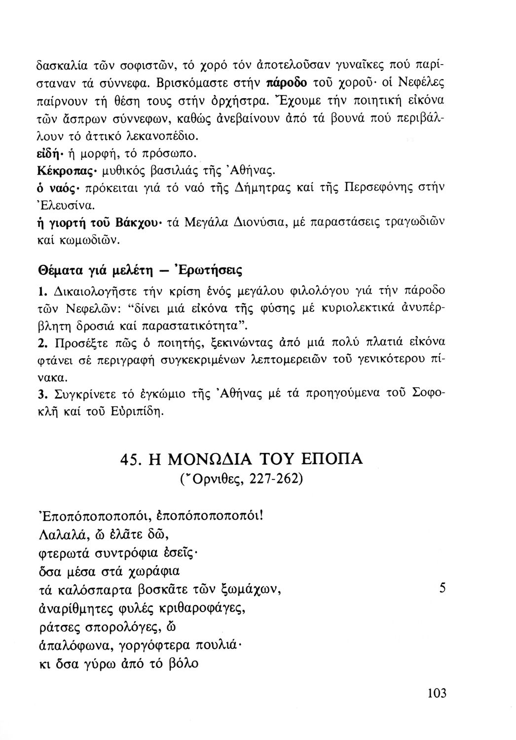 Σχολικό εγχειρίδιο Αρχαίων Ελληνικών Ε΄ Γυμνασίου που περιλαμβάνει αποσπάσματα από έργα αρχαίων Ελλήνων και χριστιανών ποιητών, και λεξιλόγιο