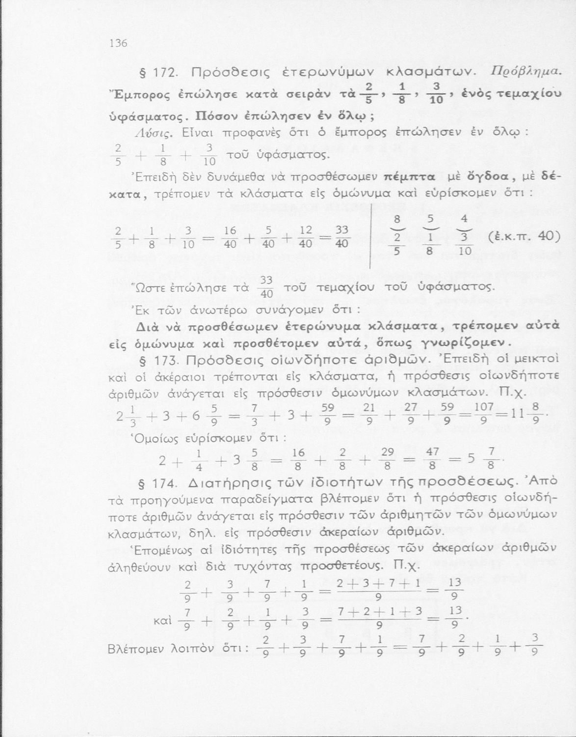 Σχολικό εγχειρίδιο Αριθμητικής για τα Γυμνάσια και Αστικά Σχολεία που είναι χωρισμένο σε θεωρία και ασκήσεις με έντονο επιχειρηματικό προσανατολισμό. Περιλαμβάνει στοιχεία Θεωρητικής Αριθμητικής.