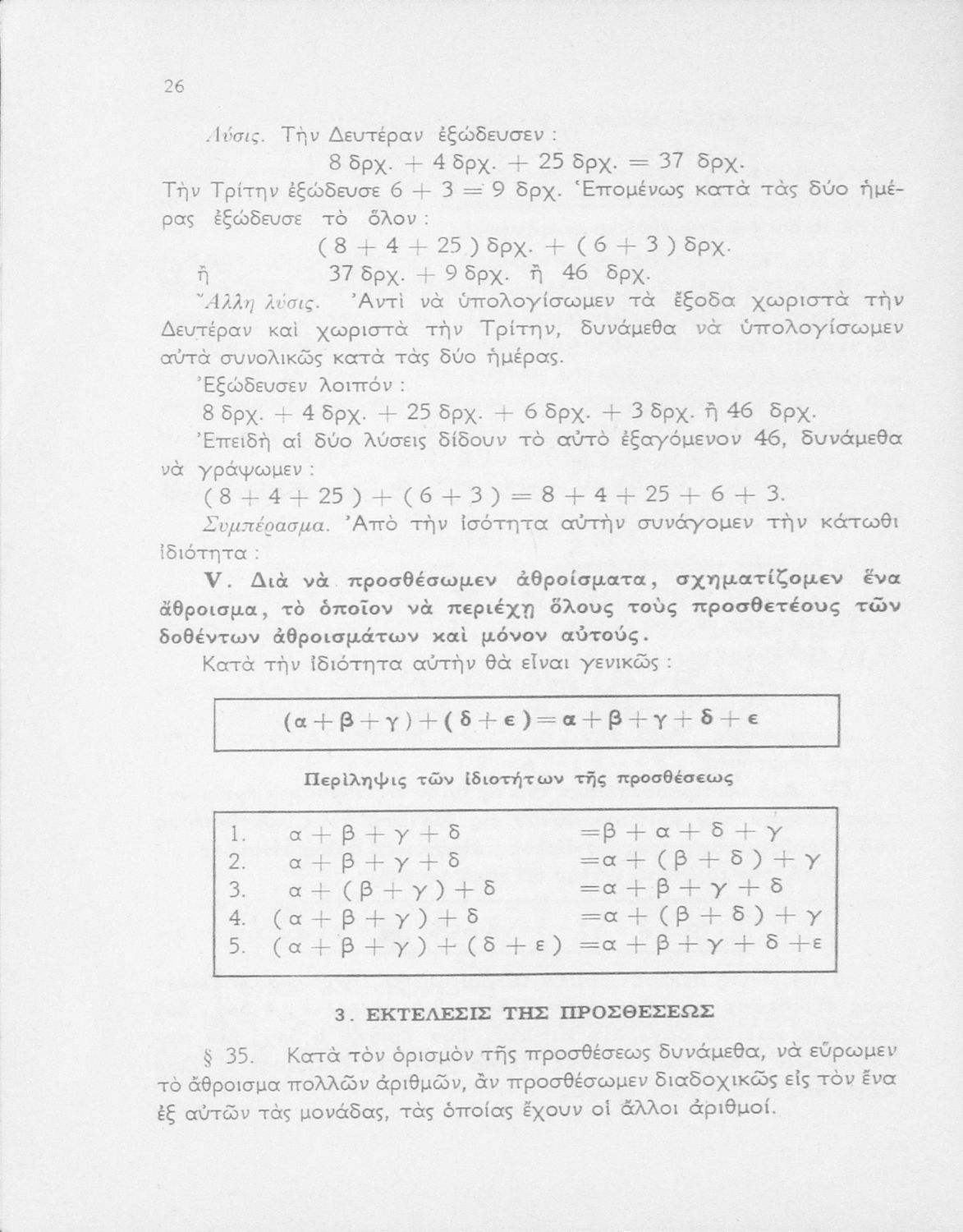Σχολικό εγχειρίδιο Αριθμητικής για τα Γυμνάσια και τα Αστικά σχολεία που είναι χωρισμένο σε θεωρία και ασκήσεις με έντονο επιχειρηματικό προσανατολισμό. Περιλαμβάνει στοιχεία Θεωρητικής Αριθμητικής.