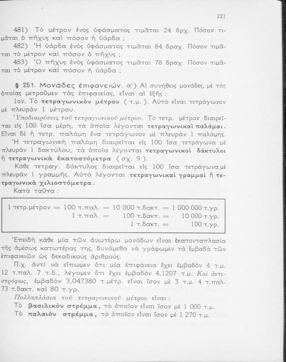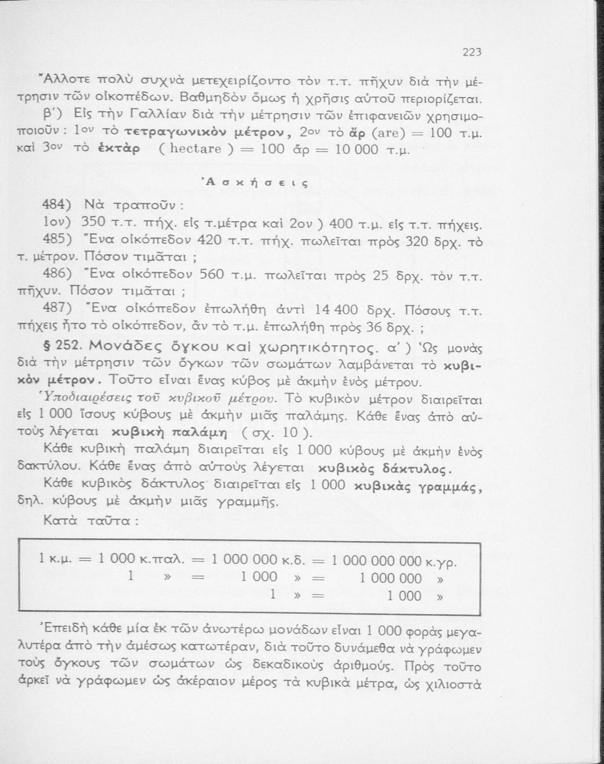 Σχολικό εγχειρίδιο Γεωμετρίας Γυμνασίων και Αστικών Σχολείων χωρισμένο σε Επιπεδομετρία και Στερεομετρία. Περιλαμβάνει και στοιχεία Χωρομετρίας.