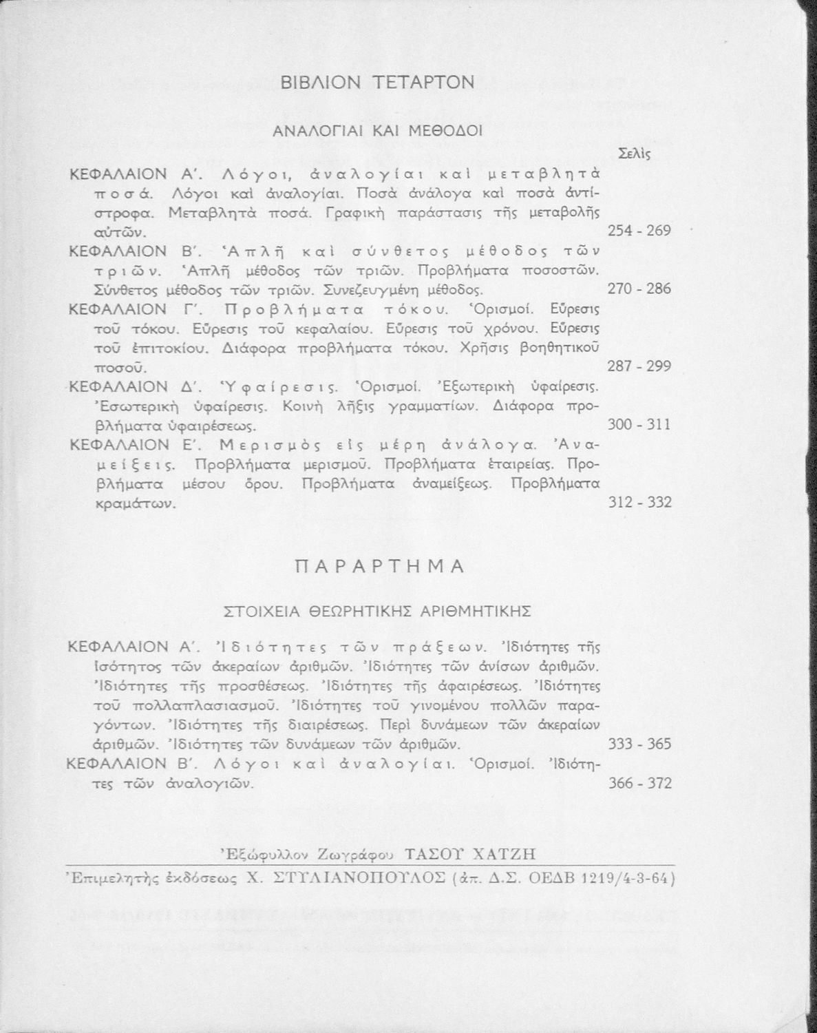 Σχολικό εγχειρίδιο Αριθμητικής για τα Γυμνάσια και τα Αστικά σχολεία που είναι χωρισμένο σε θεωρία και ασκήσεις με έντονο επιχειρηματικό προσανατολισμό. Περιλαμβάνει στοιχεία Θεωρητικής Αριθμητικής.