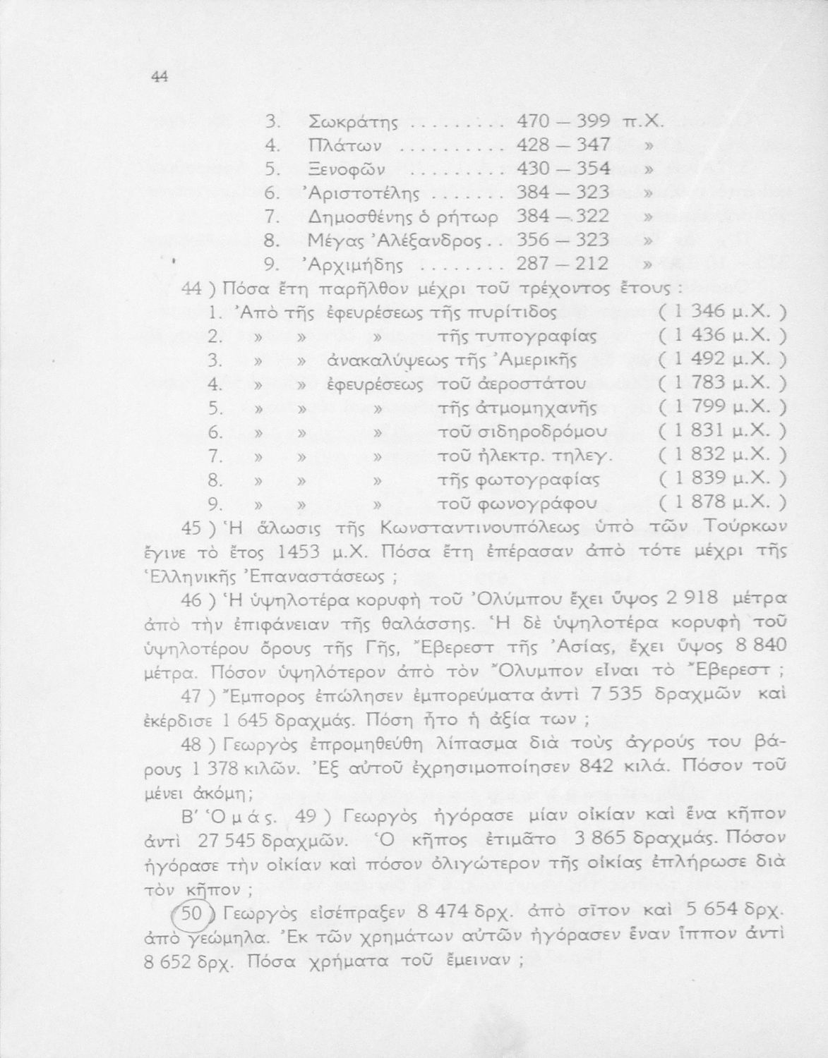 Τάξη:  Οκτατάξιο Γυμνάσιο / Πεντατάξιο Προγυμνάσιο / Αστικό Σχολείο
