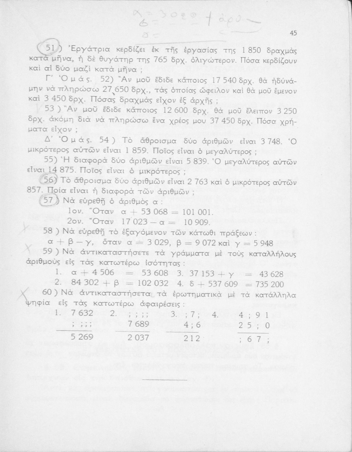 Σχολικό εγχειρίδιο Αριθμητικής Γυμνασίου που εστιάζει στις αριθμητικές πράξεις, τα κλάσματα και τις μεθόδους και είναι χωρισμένο σε θεωρία και ασκήσεις με έντονο επιχειρηματικό προσανατολισμό. Περιλαμβάνει στοιχεία Θεωρητικής Αριθμητικής.