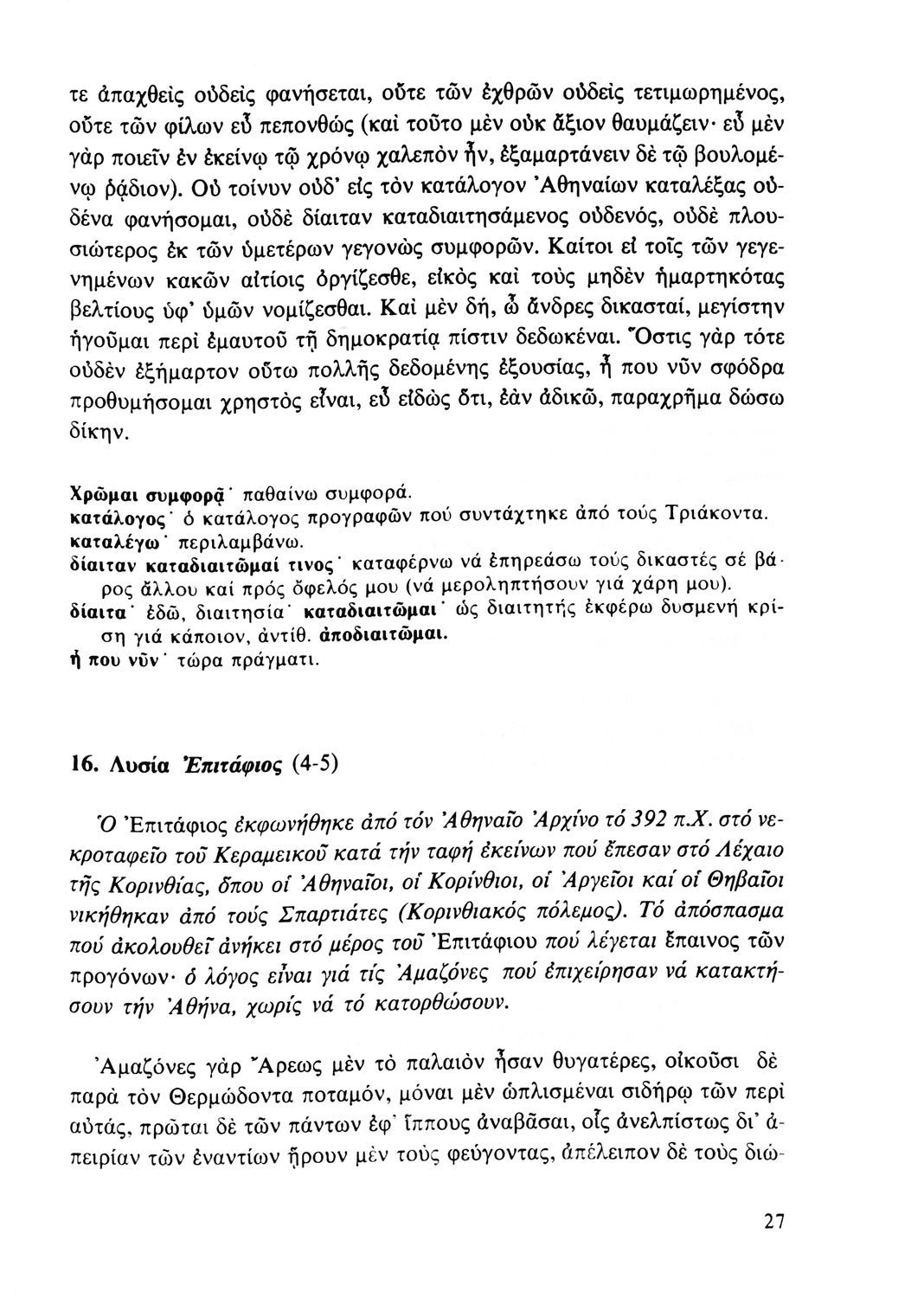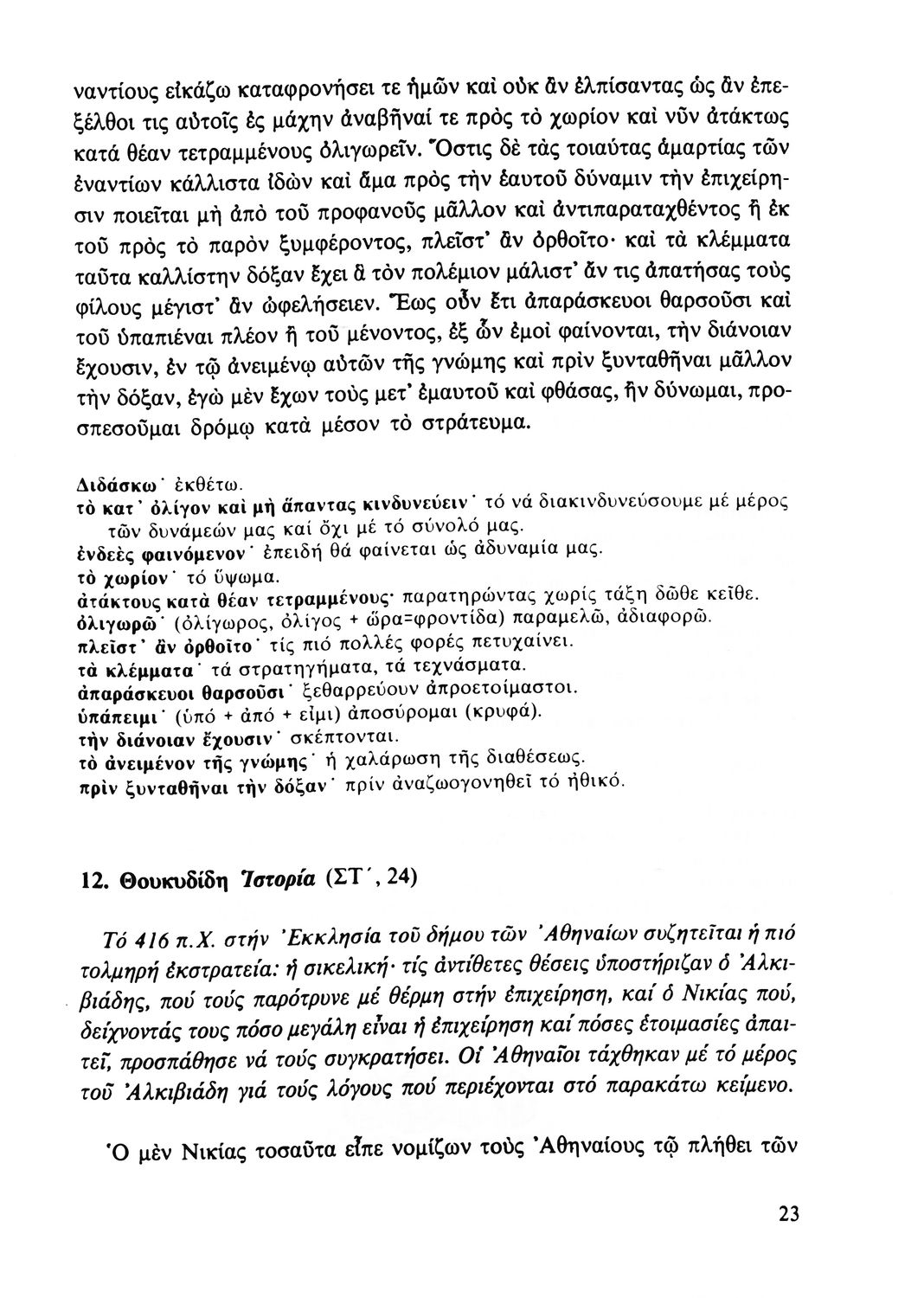 Παιδαγωγικό βοήθημα Αρχαίων Ελληνικών Β΄ Λυκείου που είχε ως στόχο να βοηθήσει τους φιλολόγους στην κατάρτιση της διδακτέας ύλης και την επιλογή των κατάλληλων θεμάτων.