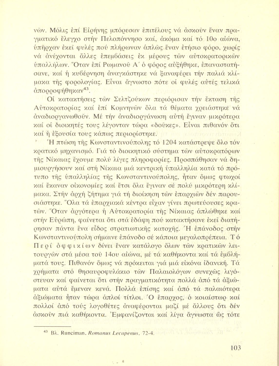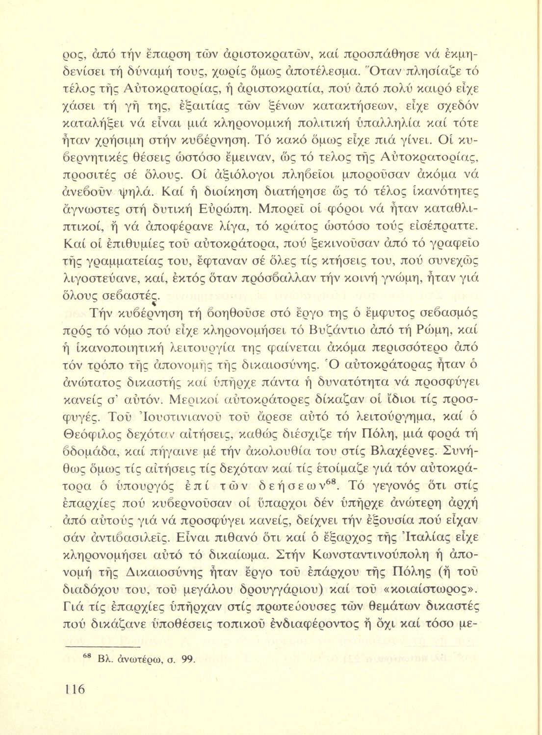 Σχολικό εγχειρίδιο Ιστορίας Β΄ Λυκείου που εστιάζει στην περίοδο της Βυζαντινής Αυτοκρατορίας και πραγματεύεται τη διοίκηση, τη θρησκεία, το στρατό, την οικονομική ζωή, την εκπαίδευση και την πνευματική κίνηση.