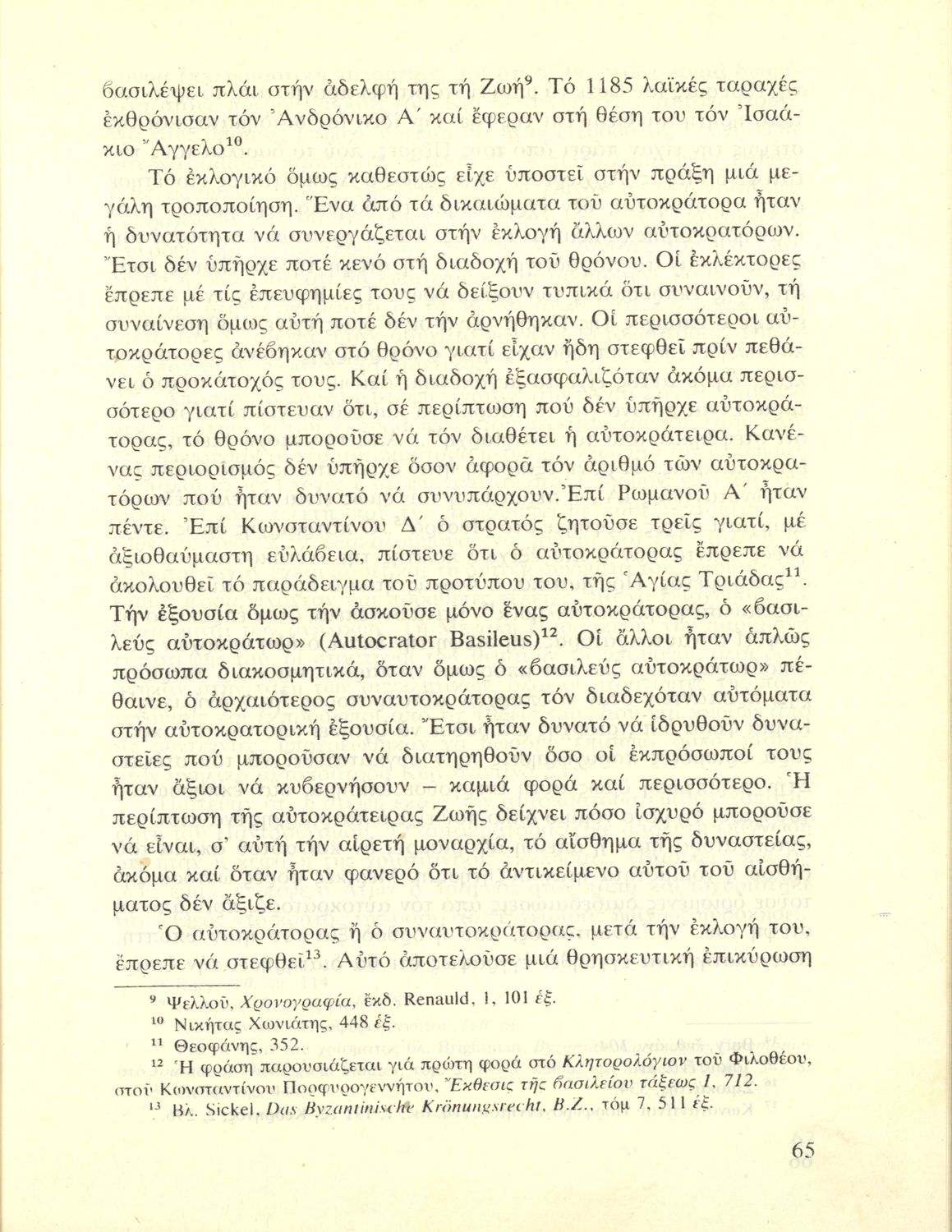 Σχολικό εγχειρίδιο Ιστορίας Β΄ Λυκείου που εστιάζει στην περίοδο της Βυζαντινής Αυτοκρατορίας και πραγματεύεται τη διοίκηση, τη θρησκεία, το στρατό, την οικονομική ζωή, την εκπαίδευση και την πνευματική κίνηση.