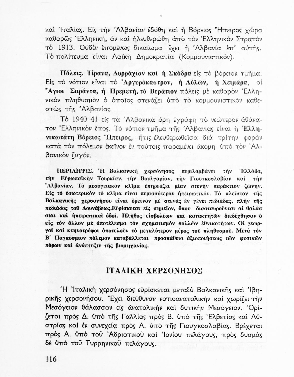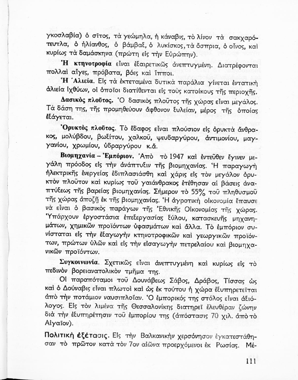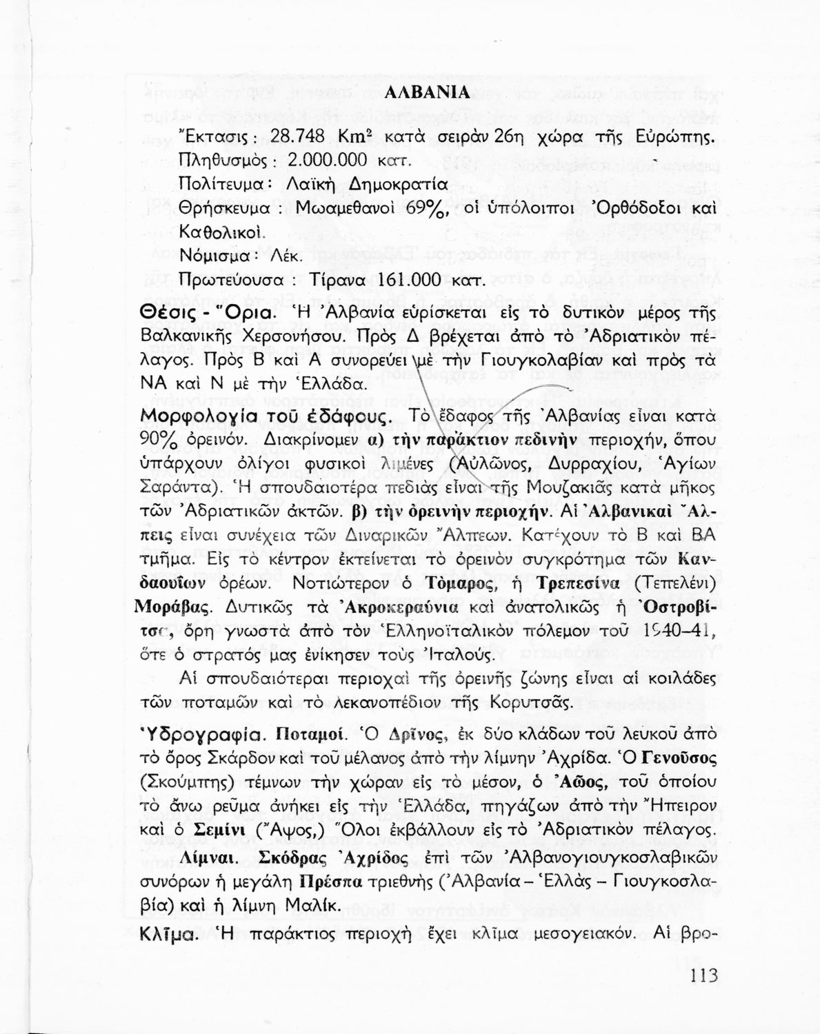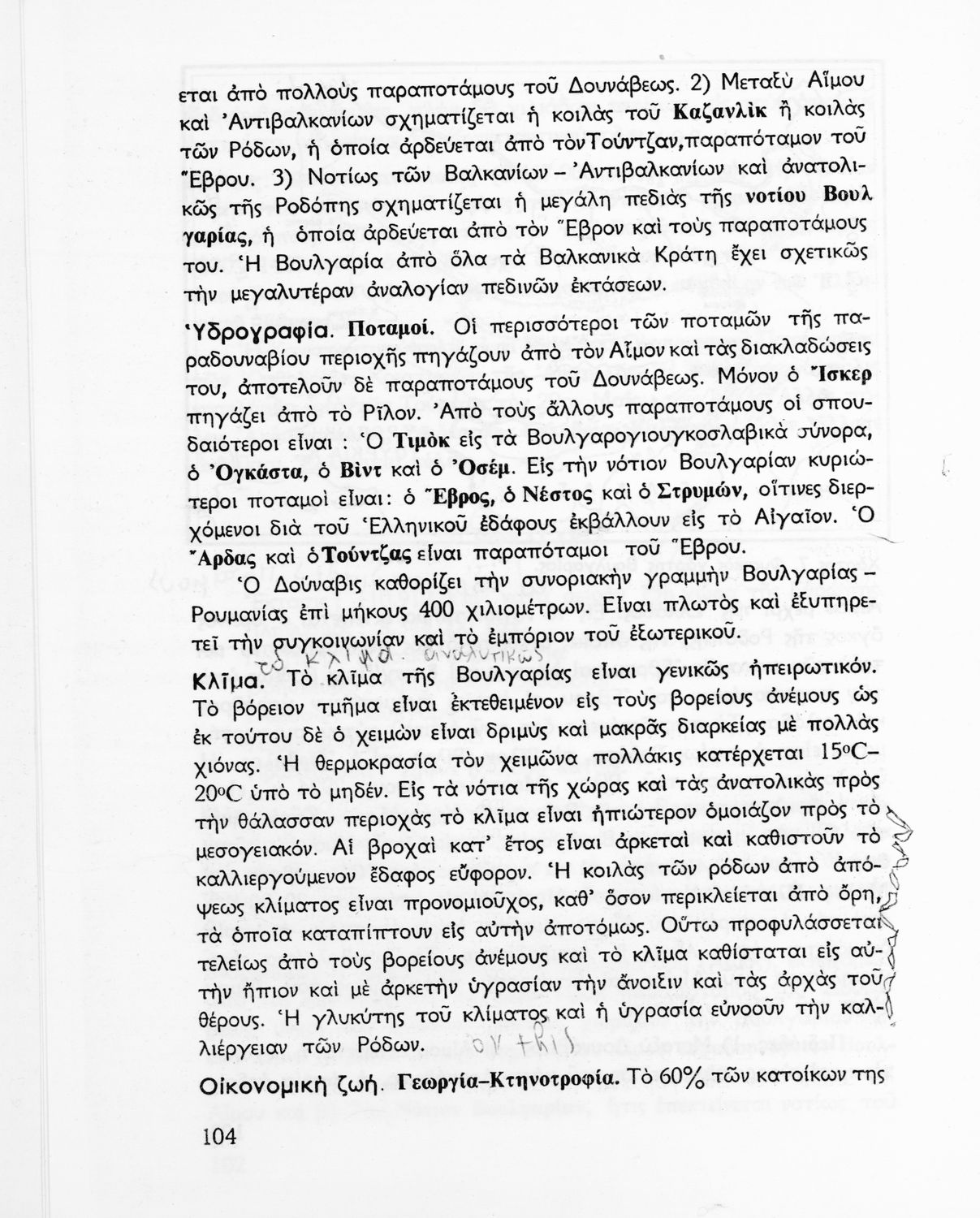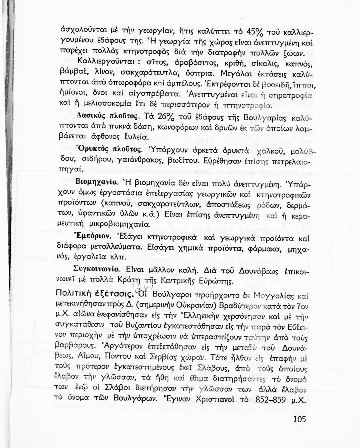 Βαθμίδα εκπαίδευσης: Δευτεροβάθμια Τάξη: Β' Γυμνασίου Μάθημα: Γεωγραφία Γλώσσα: Καθαρεύουσα Παρουσίαση περιεχομένου: Σχολικό εγχειρίδιο Γεωγραφίας Β' Γυμνασίου που περιλαμβάνει εισαγωγή στη φυσική και μαθηματική γεωγραφία και παρουσιάζει τις χώρες της Ευρώπης από γεωμορφολογική, πολιτική, πολιτισμική και οικονομική άποψη. Περιέχει και αναφορά στις οικονομικές σχέσεις της Ελλάδας με τα ευρωπαϊκά κράτη. Φέρει το σύμβολο της δικτατορίας. |