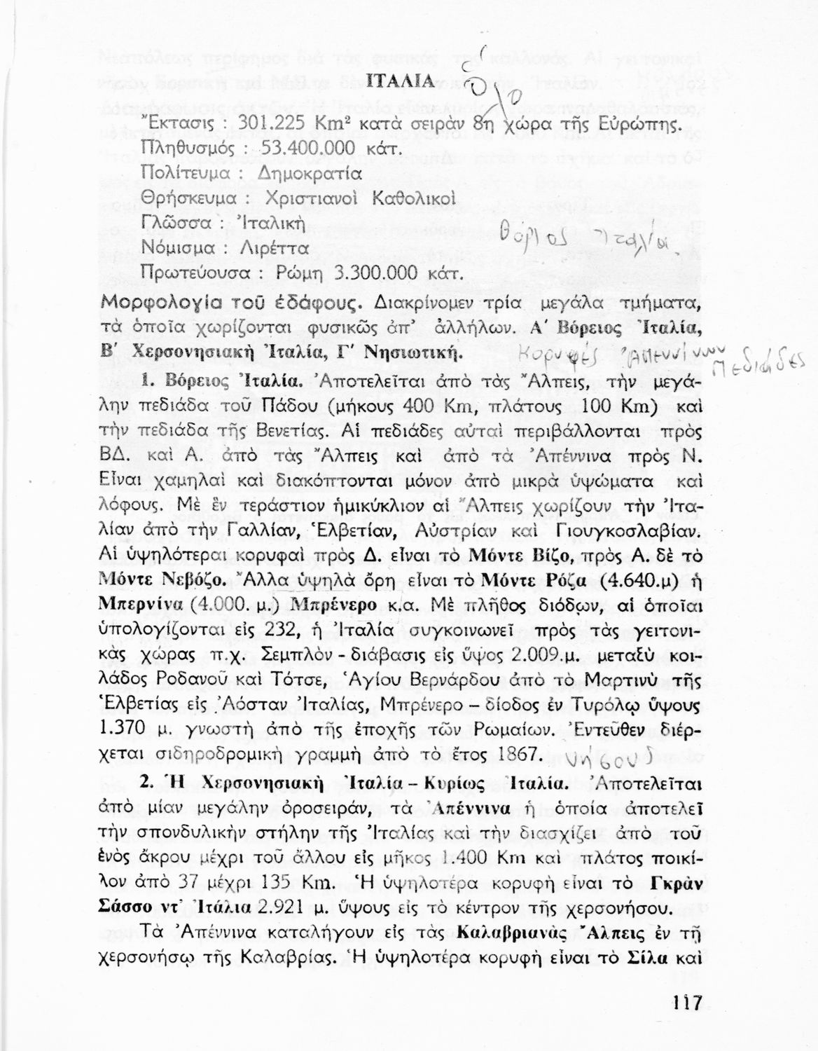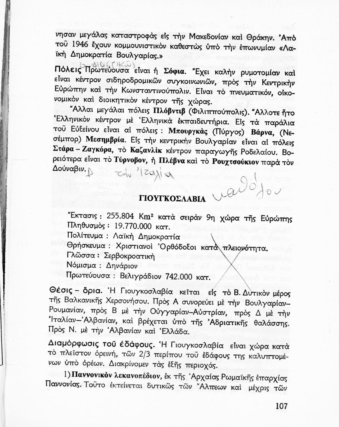 Σχολικό εγχειρίδιο Γεωγραφίας Β' Γυμνασίου που περιλαμβάνει εισαγωγή στη φυσική και μαθηματική γεωγραφία και παρουσιάζει τις χώρες της Ευρώπης από γεωμορφολογική, πολιτική, πολιτισμική και οικονομική άποψη. Περιέχει και αναφορά στις οικονομικές σχέσεις της Ελλάδας με τα ευρωπαϊκά κράτη. Φέρει το σύμβολο της δικτατορίας.