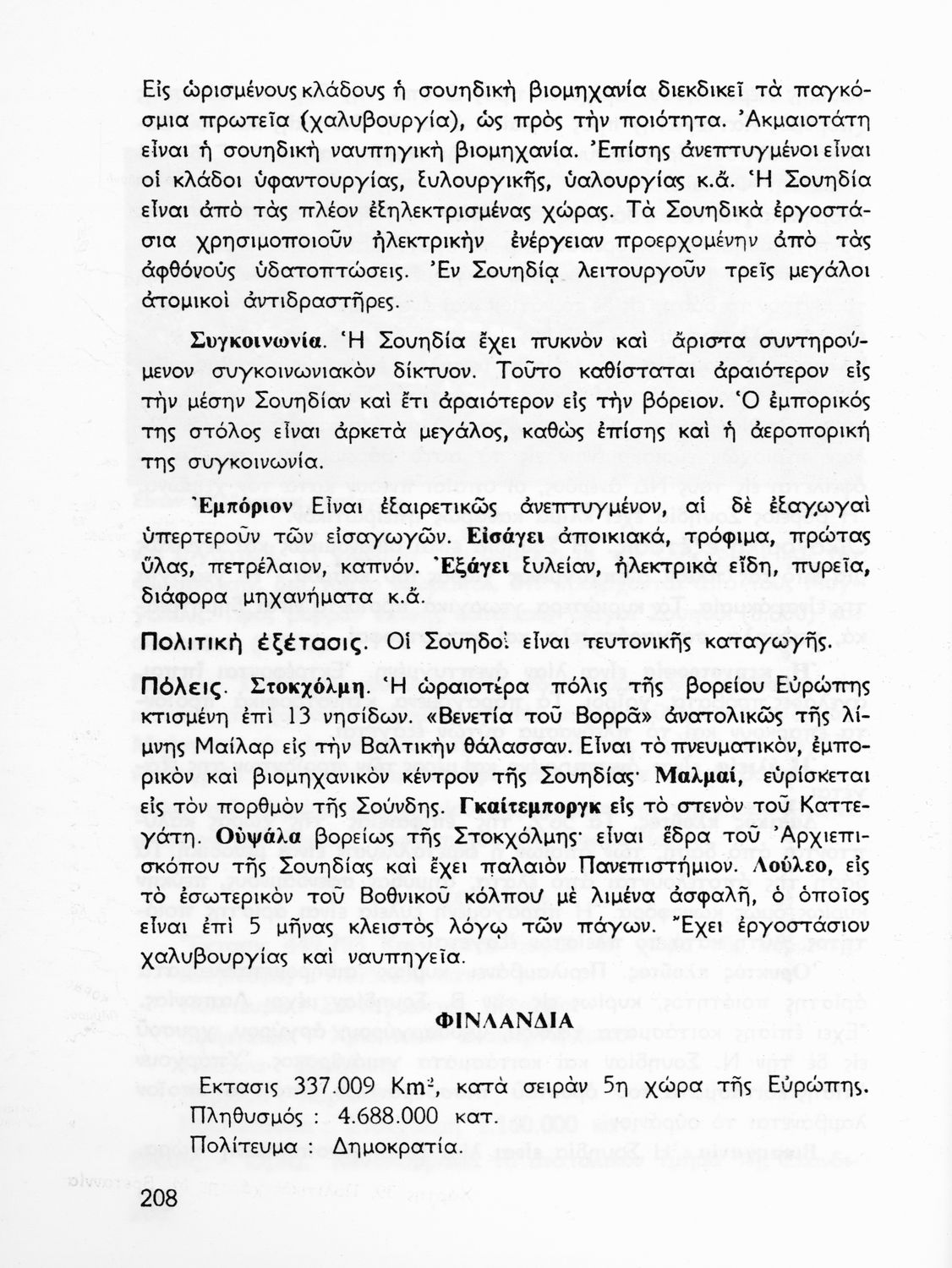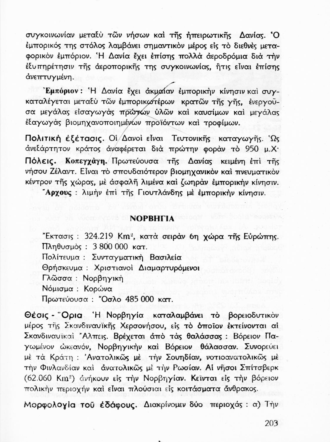 Σχολικό εγχειρίδιο Γεωγραφίας Β' Γυμνασίου που περιλαμβάνει εισαγωγή στη φυσική και μαθηματική γεωγραφία και παρουσιάζει τις χώρες της Ευρώπης από γεωμορφολογική, πολιτική, πολιτισμική και οικονομική άποψη. Περιέχει και αναφορά στις οικονομικές σχέσεις της Ελλάδας με τα ευρωπαϊκά κράτη. Φέρει το σύμβολο της δικτατορίας.