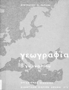 Σχολικό εγχειρίδιο Γεωγραφίας Β' Γυμνασίου που περιλαμβάνει εισαγωγή στη φυσική και μαθηματική γεωγραφία και παρουσιάζει τις χώρες της Ευρώπης από γεωμορφολογική, πολιτική, πολιτισμική και οικονομική άποψη. Περιέχει και αναφορά στις οικονομικές σχέσεις της Ελλάδας με τα ευρωπαϊκά κράτη. Φέρει το σύμβολο της δικτατορίας.