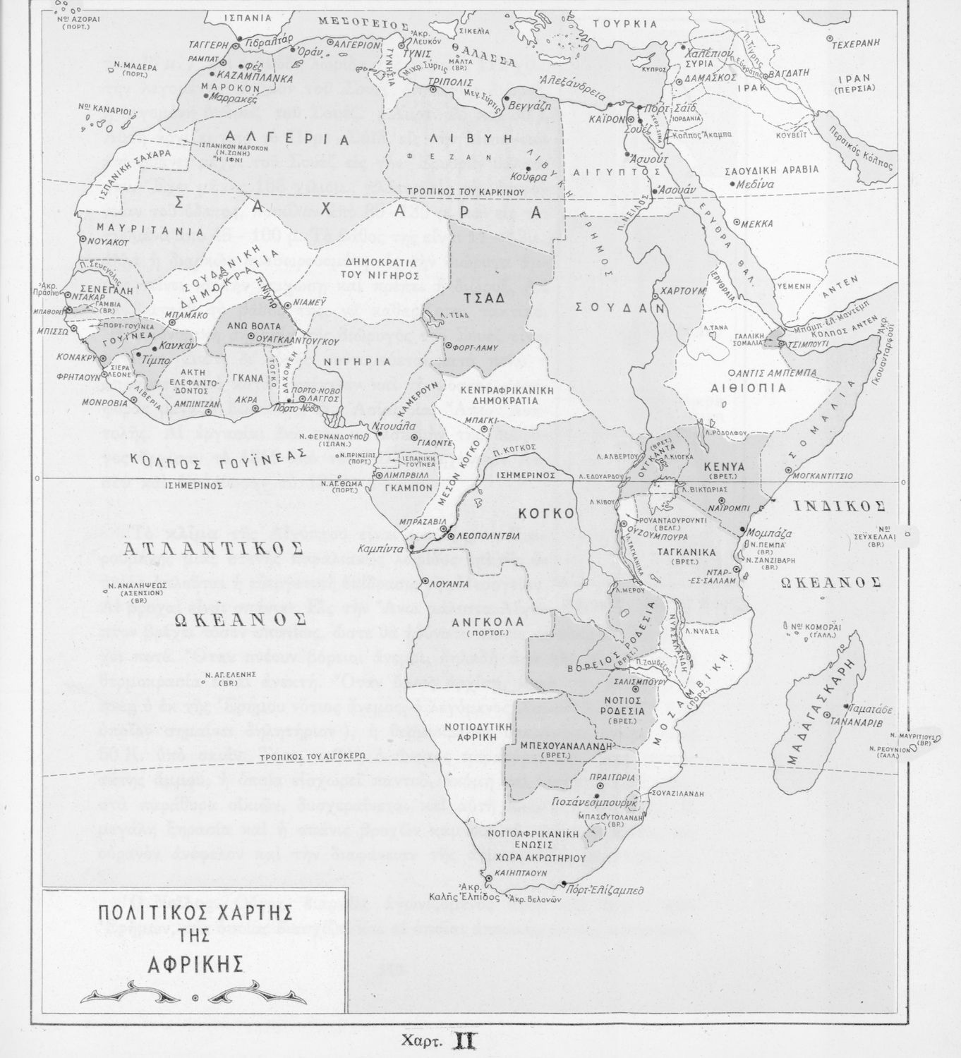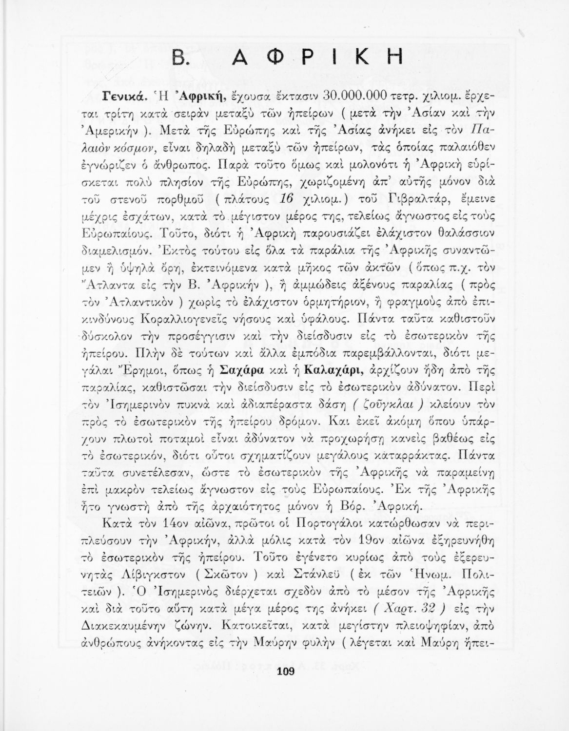 Σχολικό εγχειρίδιο Γεωγραφίας που εξετάζει ενδεικτικές χώρες και περιοχές από τις πέντε ηπείρους εκτός της Ευρώπης από γεωφυσική και οικονομική πλευρά. Φέρει το σύμβολο της δικτατορίας.