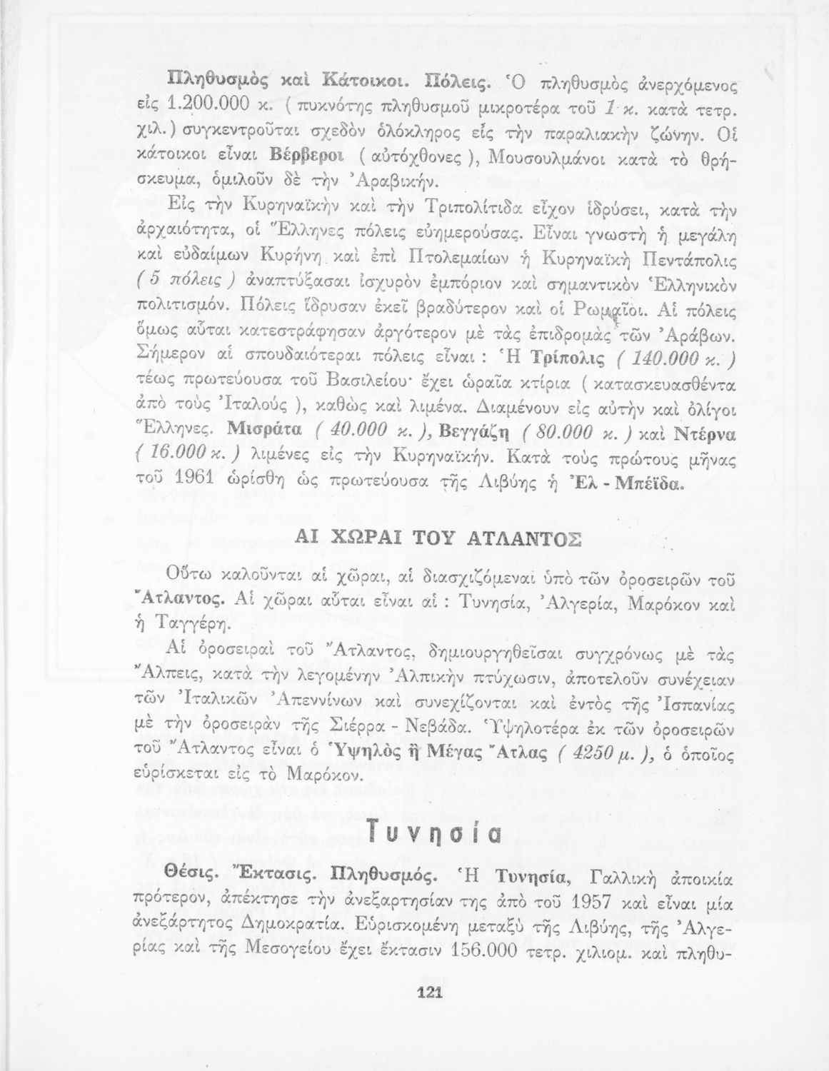 Σχολικό εγχειρίδιο Γεωγραφίας που εξετάζει ενδεικτικές χώρες και περιοχές από τις πέντε ηπείρους εκτός της Ευρώπης από γεωφυσική και οικονομική πλευρά. Φέρει το σύμβολο της δικτατορίας.