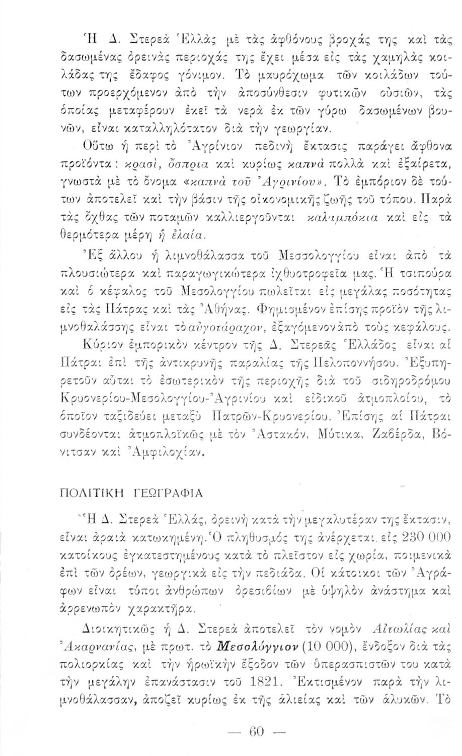 Σχολικό εγχειρίδιο Γεωγραφίας Α' Γυμνασίου που εξετάζει την Ελλάδα ανά διαμέρισμα και νομό από γεωφυσική, οικονομική και πολιτική άποψη.