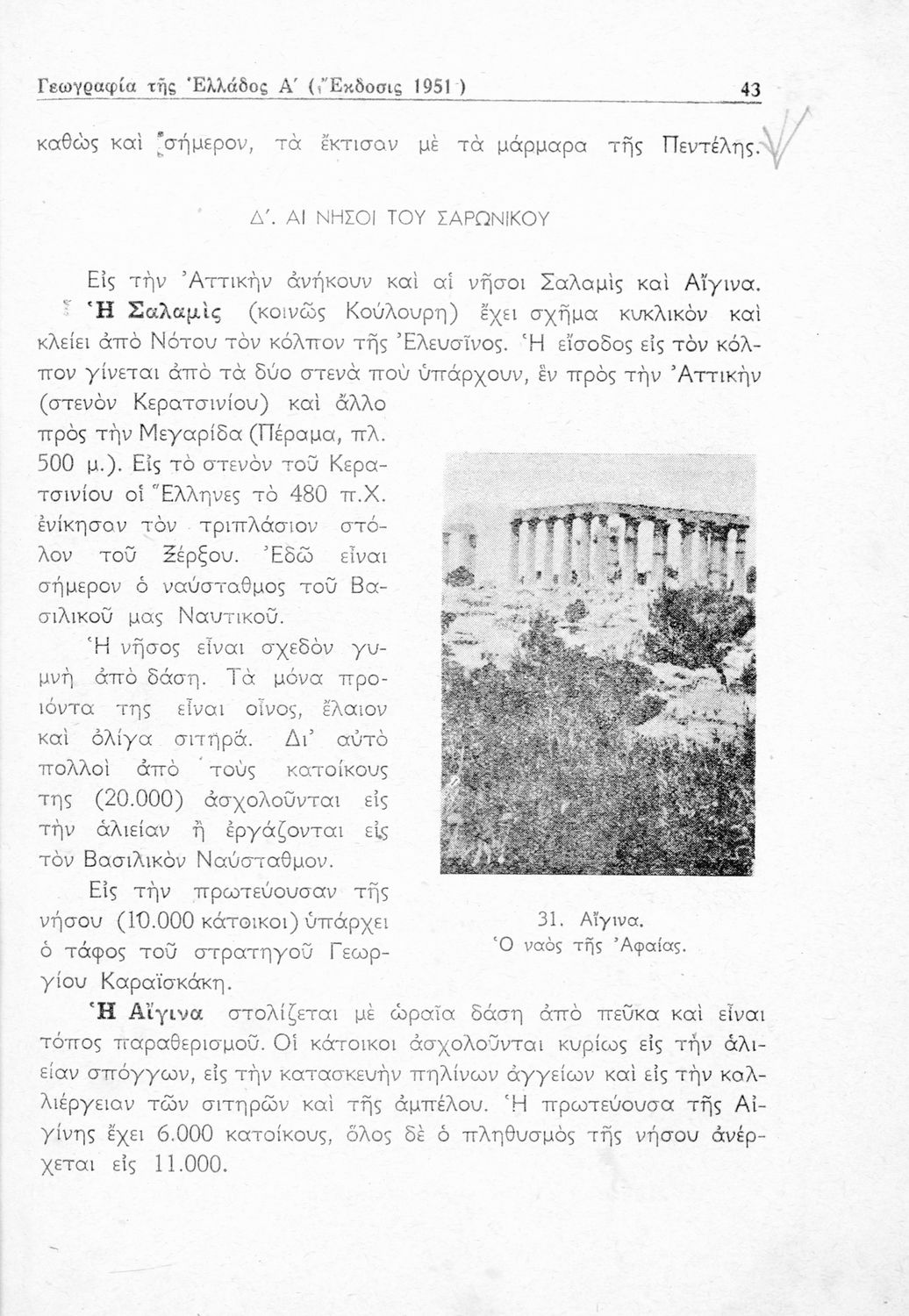 Σχολικό εγχειρίδιο Γεωγραφίας Α' Γυμνασίου που εξετάζει την Ελλάδα ανά διαμέρισμα και νομό από γεωφυσική, οικονομική και πολιτική άποψη.