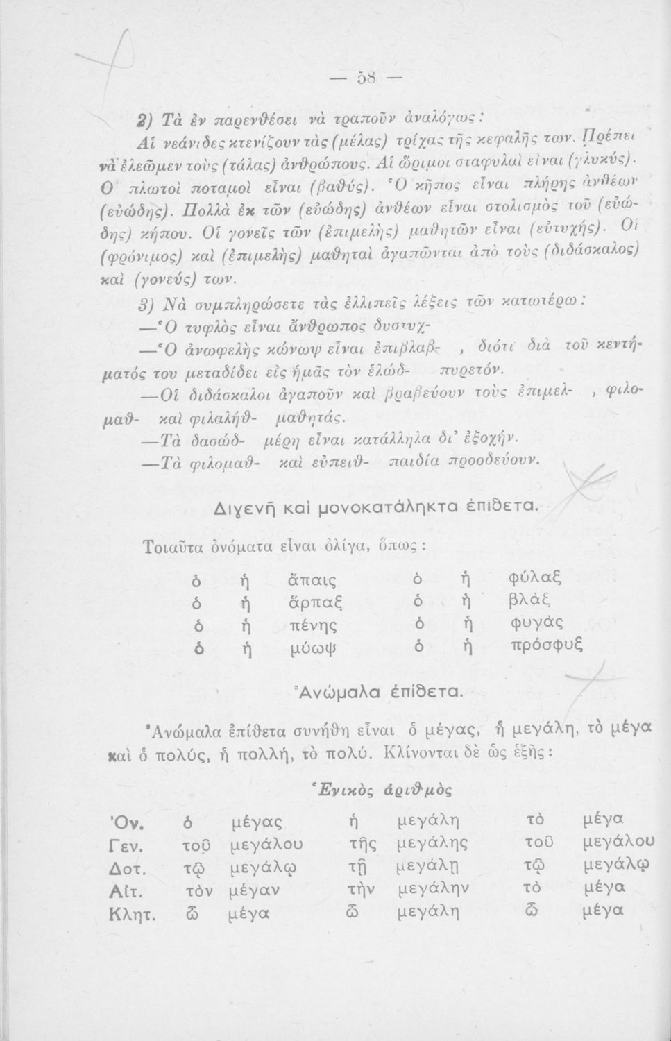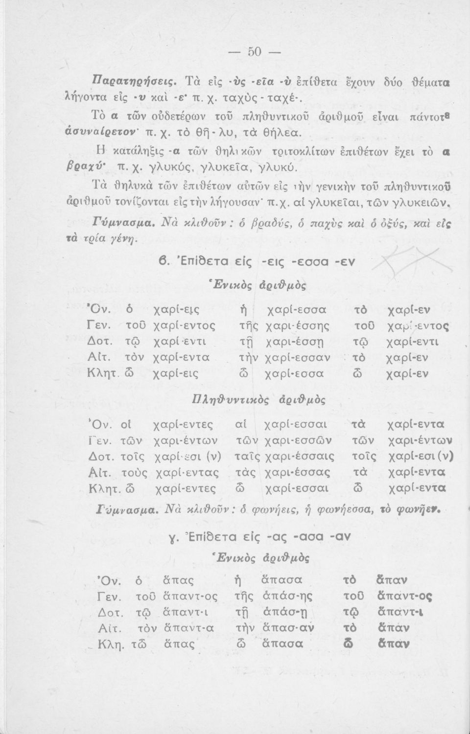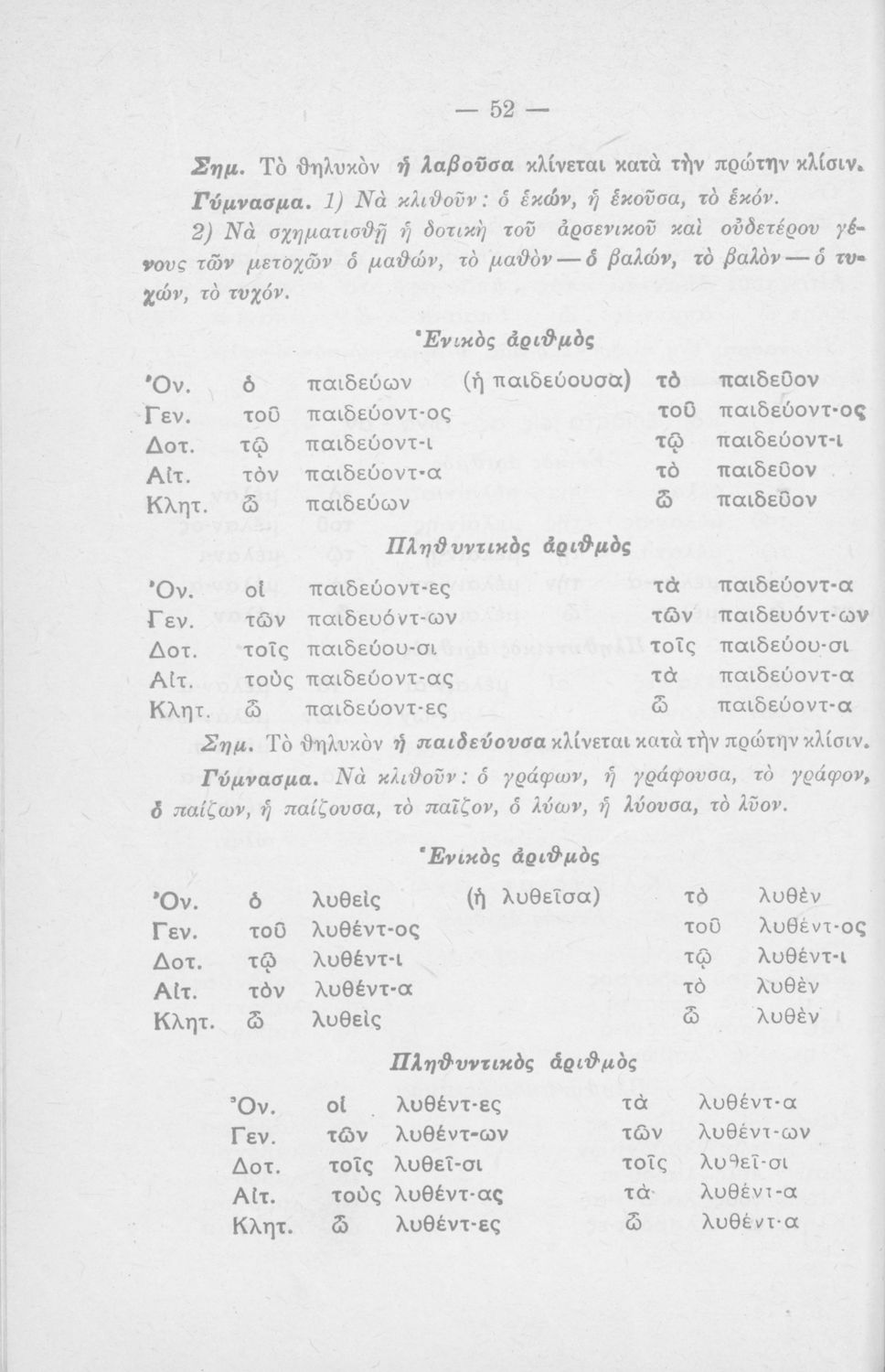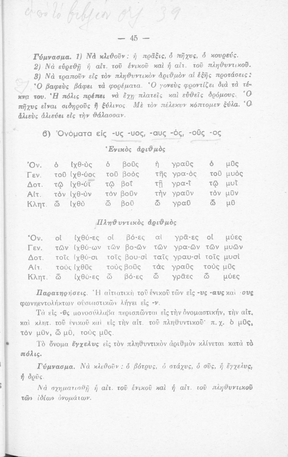 Μαθητικό βοήθημα που περιέχει τη γραμματική της απλής καθαρεύουσας για τα Δημοτικά Σχολεία.