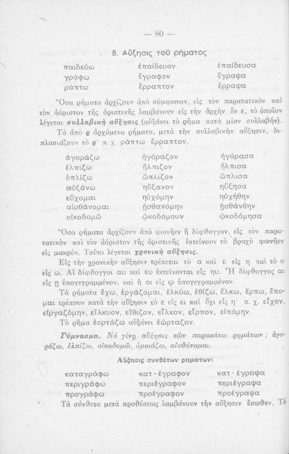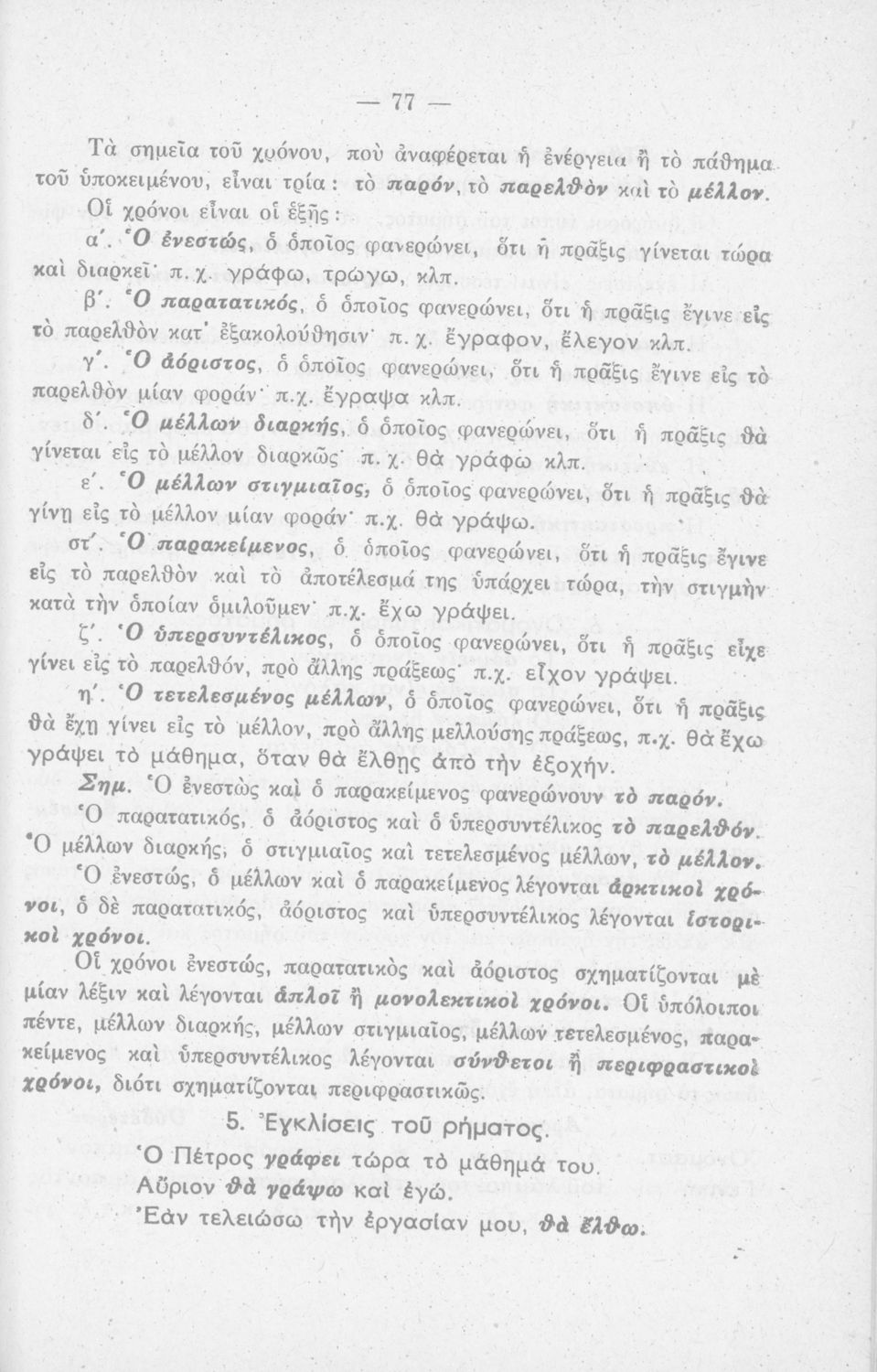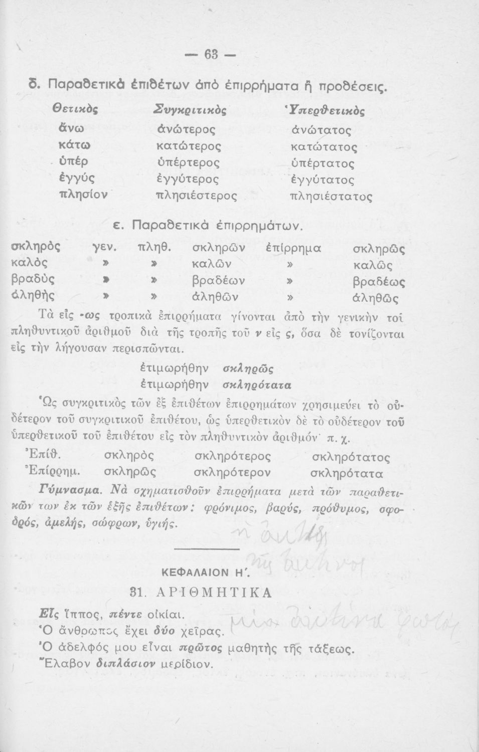 Μαθητικό βοήθημα Ε΄ και ΣΤ΄ Δημοτικού που περιέχει τη γραμματικής της απλής Καθαρεύουσας.