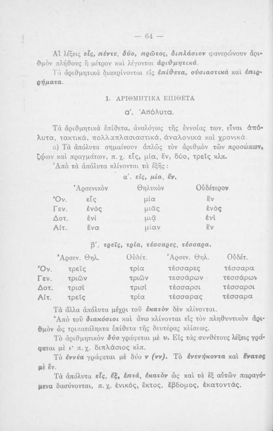 Σχολικό εγχειρίδιο Γραμματικής για τους μαθητές του Δημοτικού. Περιέχει την διδασκαλία της Γραμματικής της Καθαρεύουσας για τα Δημοτικά σχολεία.