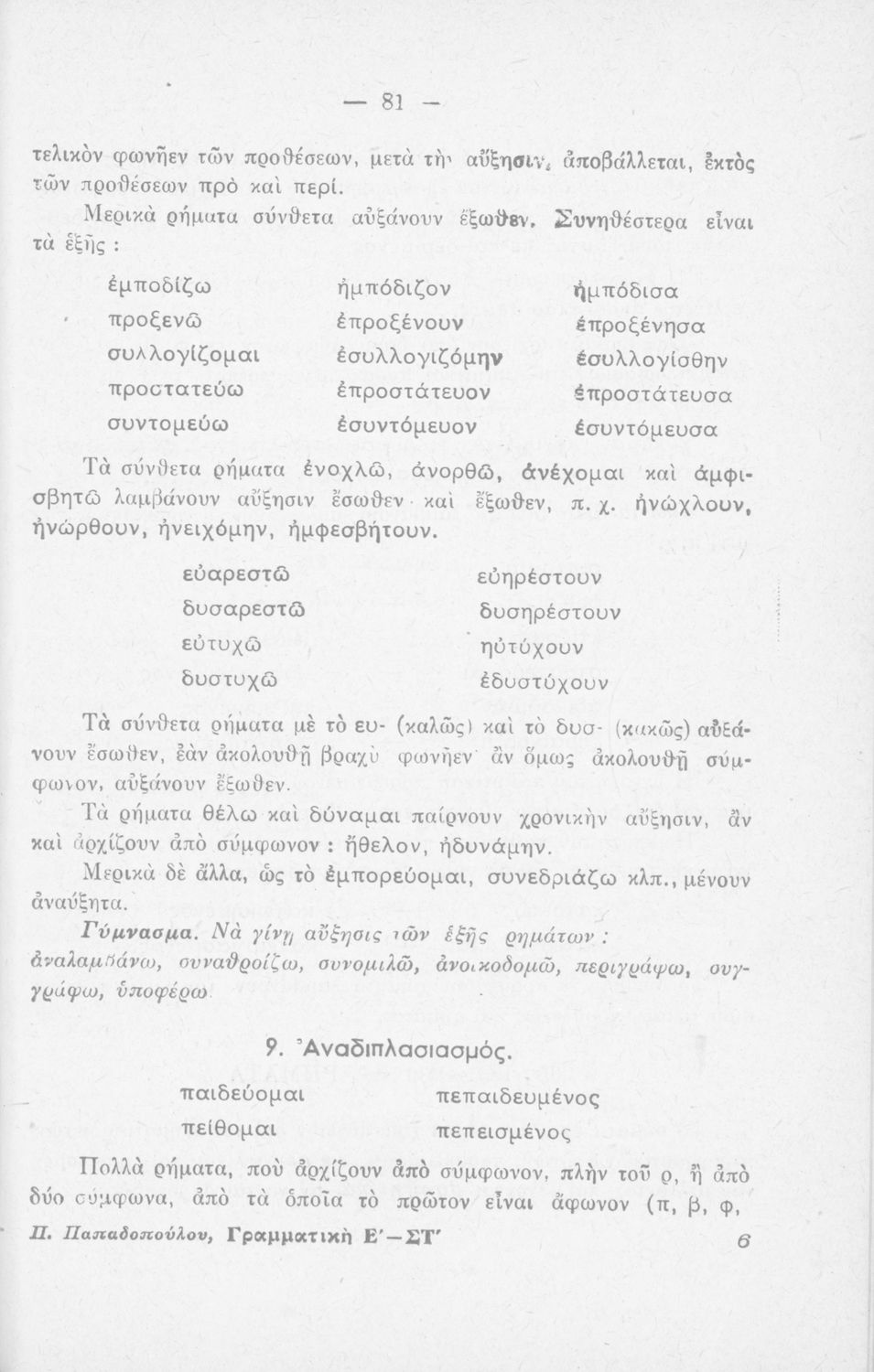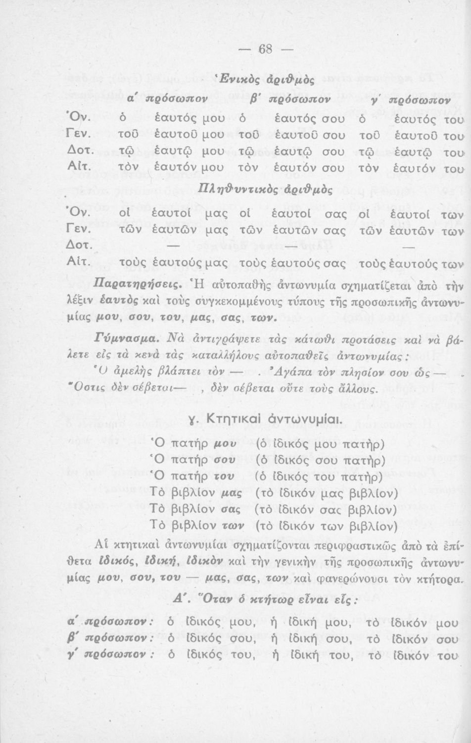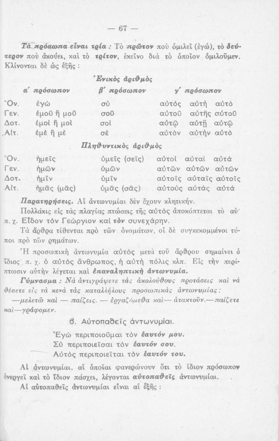 Μαθητικό βοήθημα Γραμματικής για τους μαθητές της Ε΄ και ΣΤ΄ τάξης του Δημοτικού. Περιέχει τη διδασκαλία της γραμματικής της καθαρεύουσας.