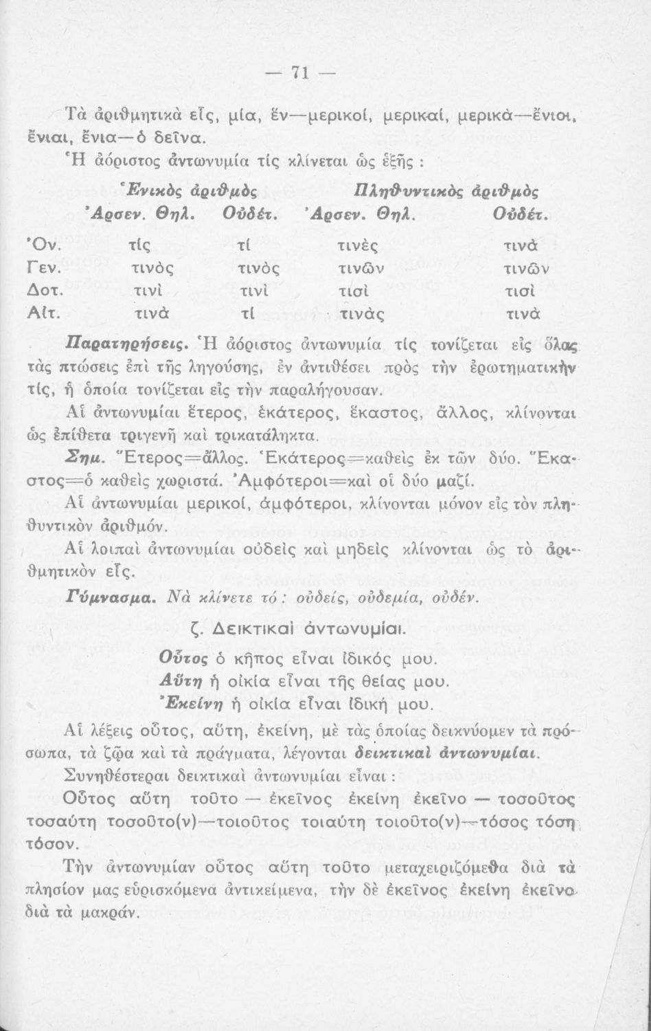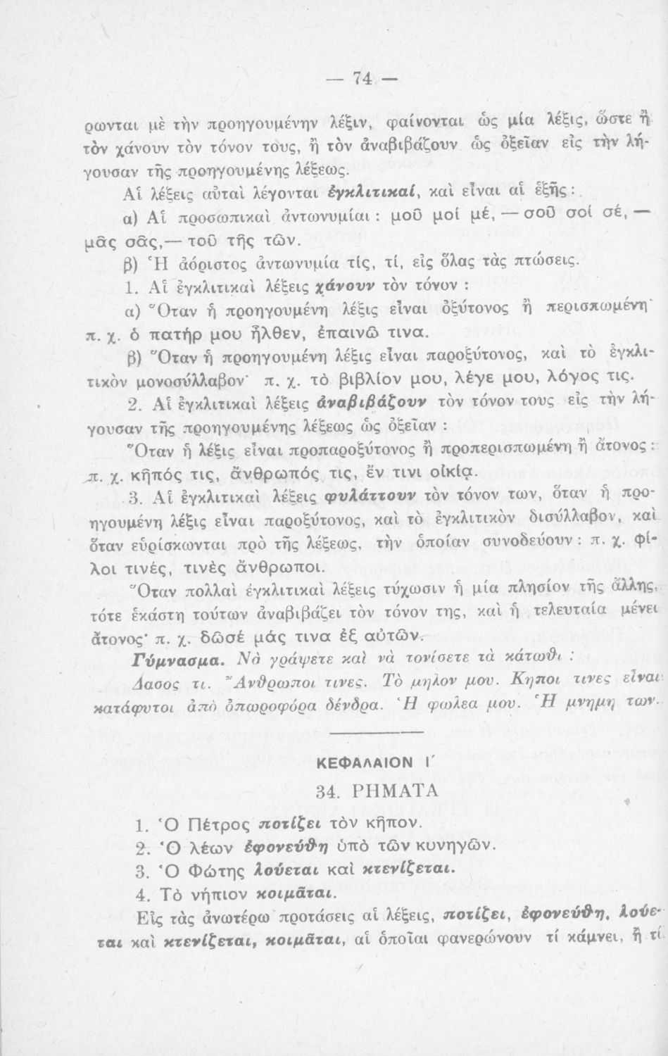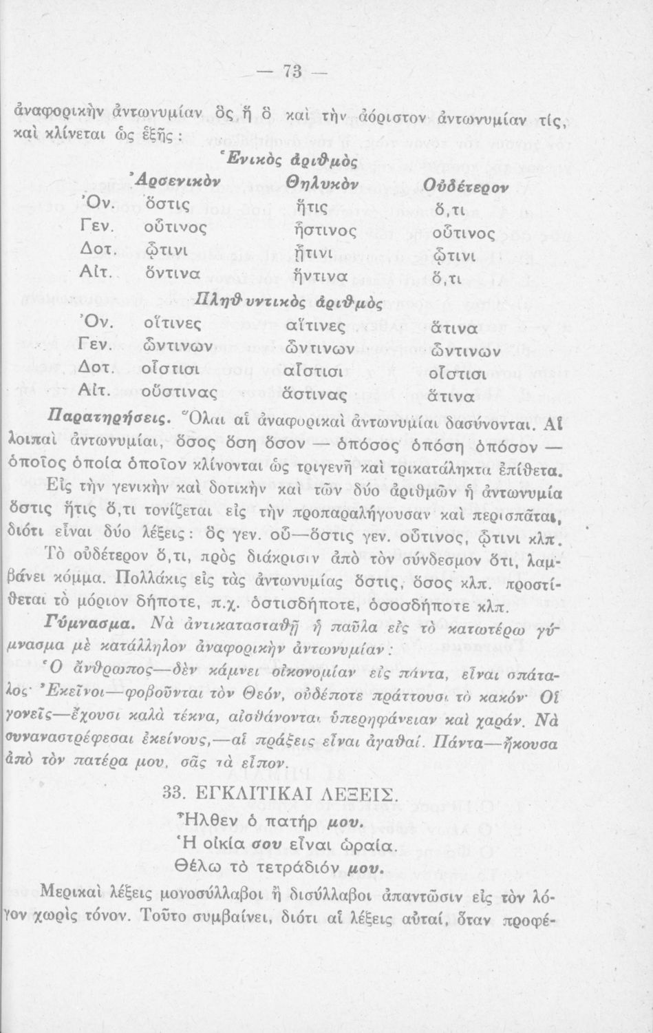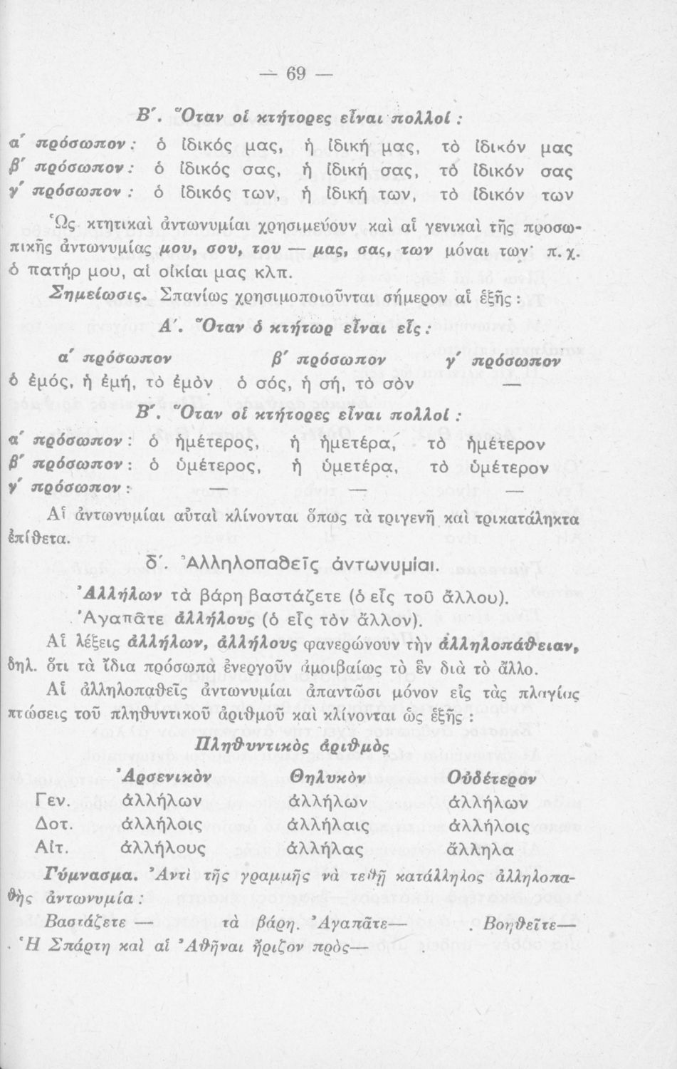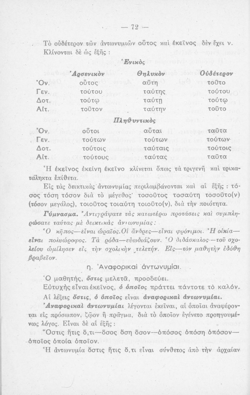 Σχολικό εγχειρίδιο Νέων Ελληνικών που περιλαμβάνει τους γραμματικούς κανόνες της καθαρεύουσας.